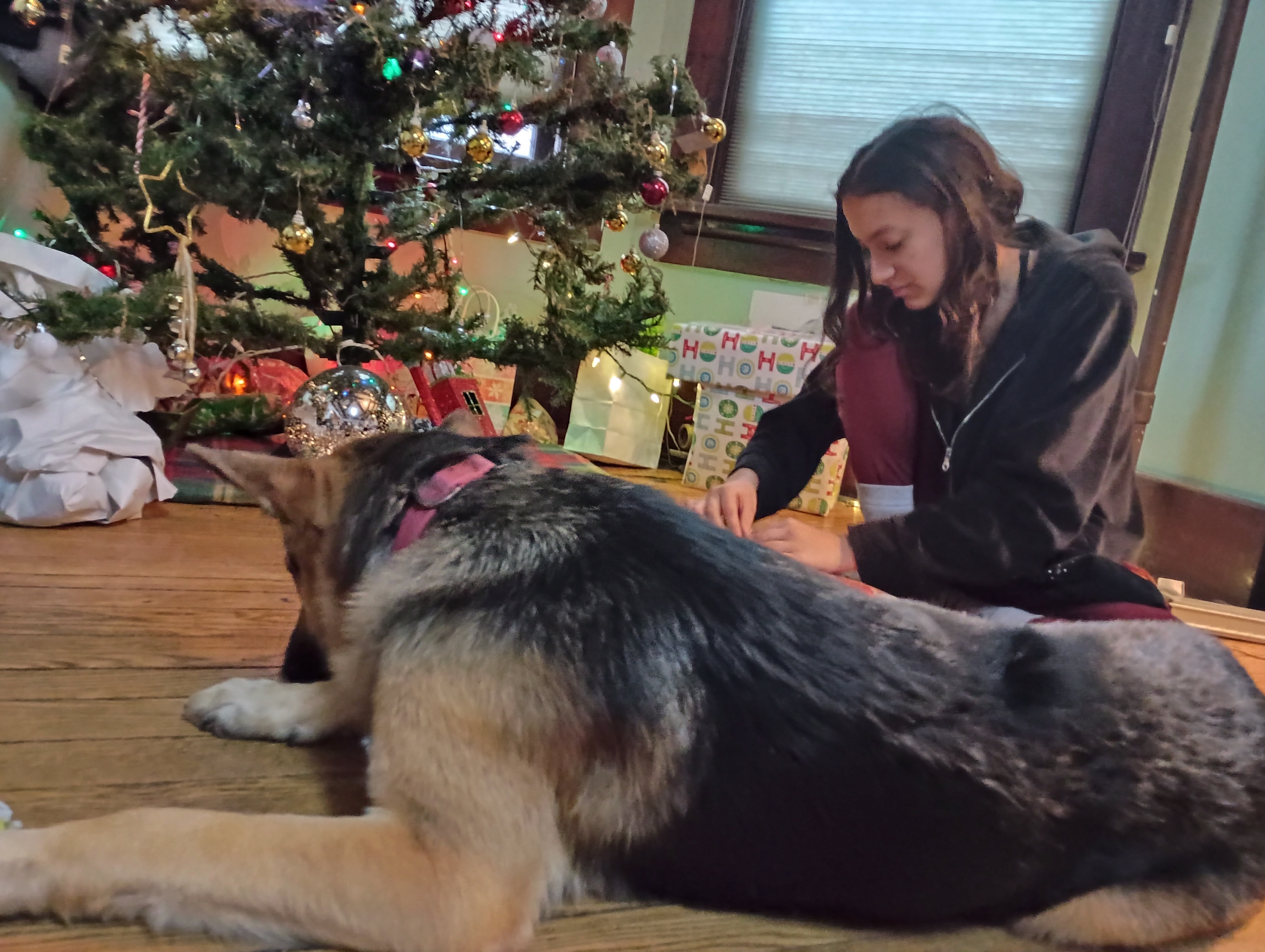 Christmas with us, behind the crate.”