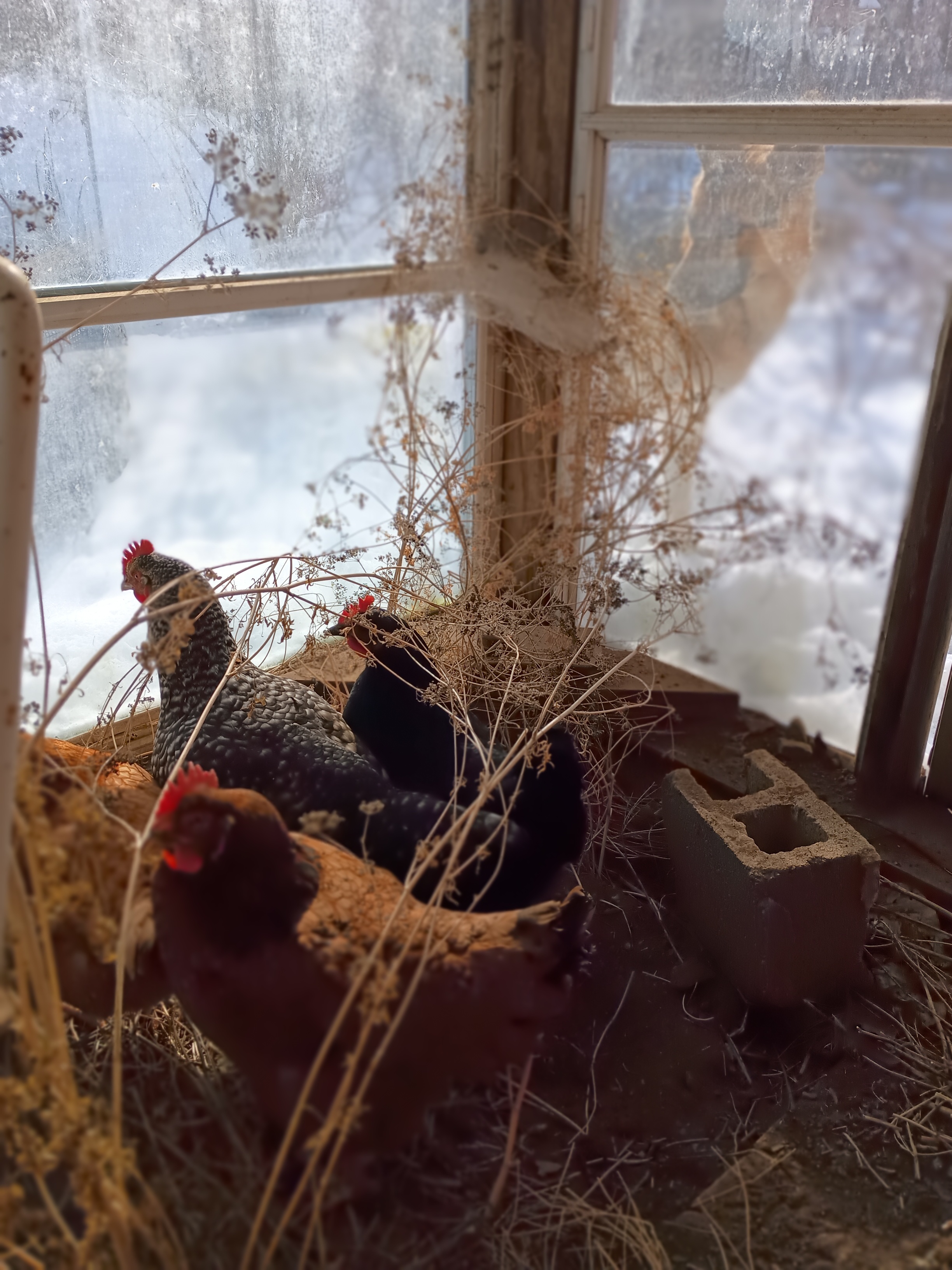 They decorate their coop with stuff from the yard