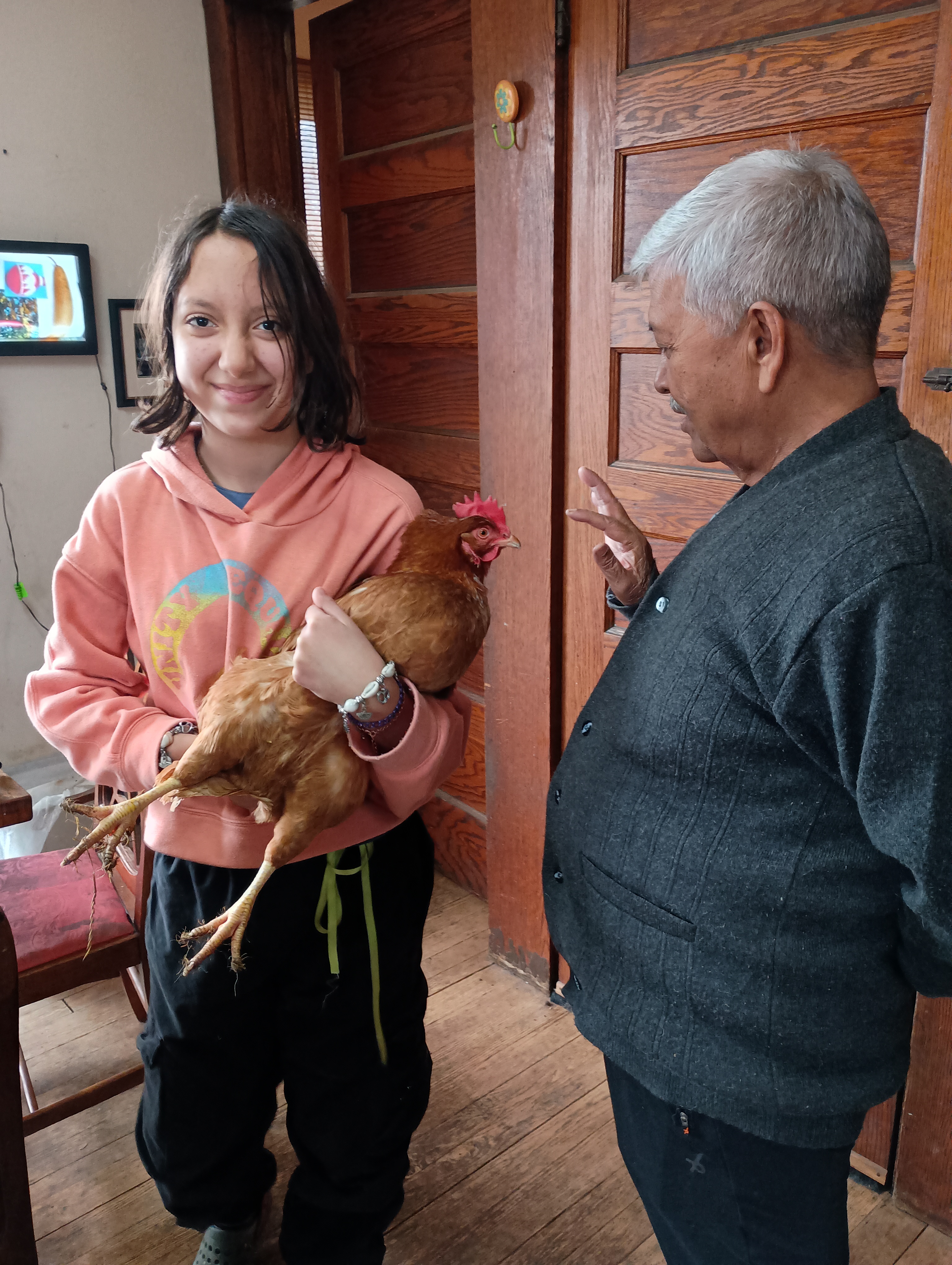 We chickens stare, together we thank