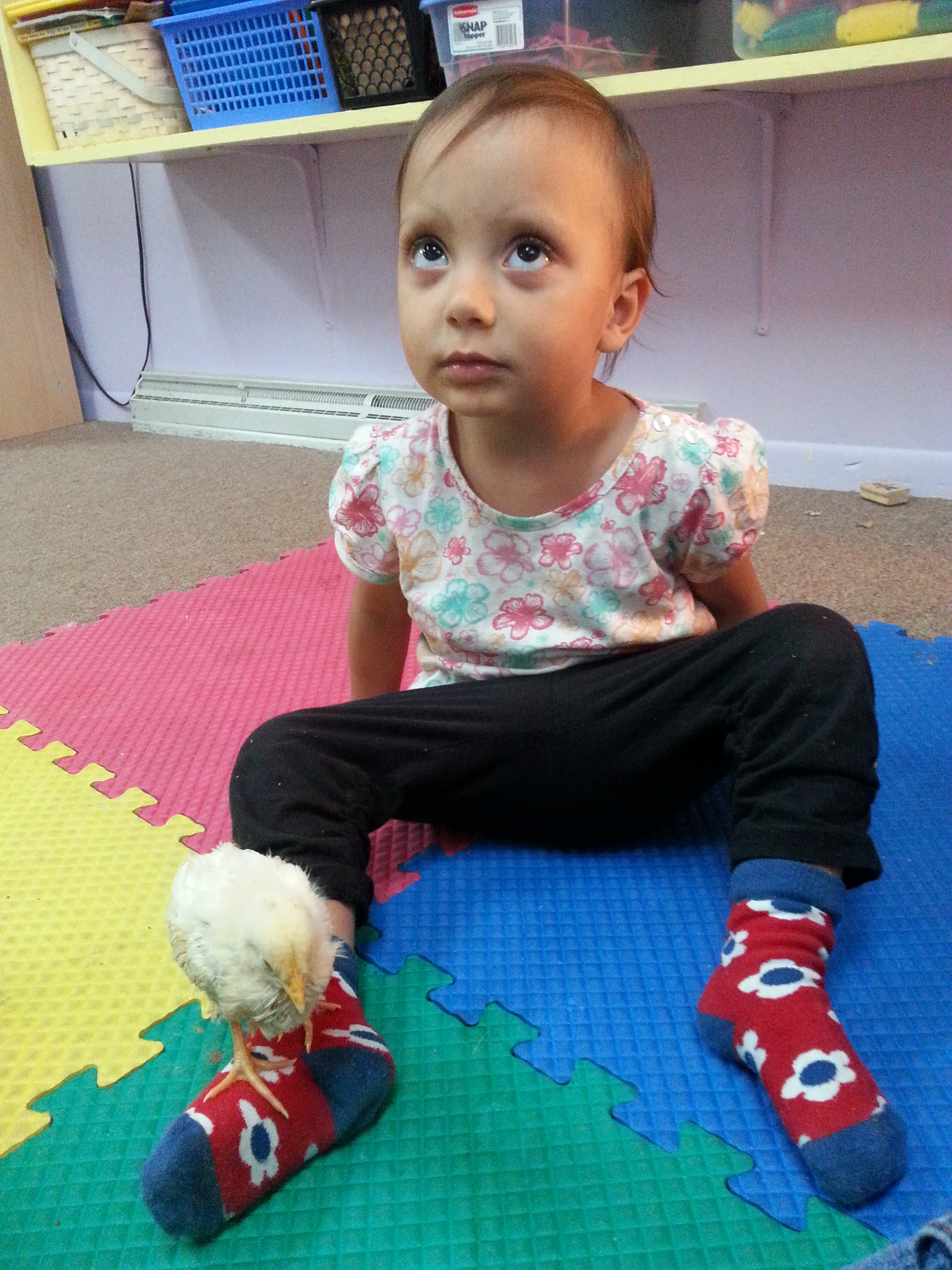 Leena got to play with Tanya’s school chicks. She went quite crazy. I think the chick liked her!