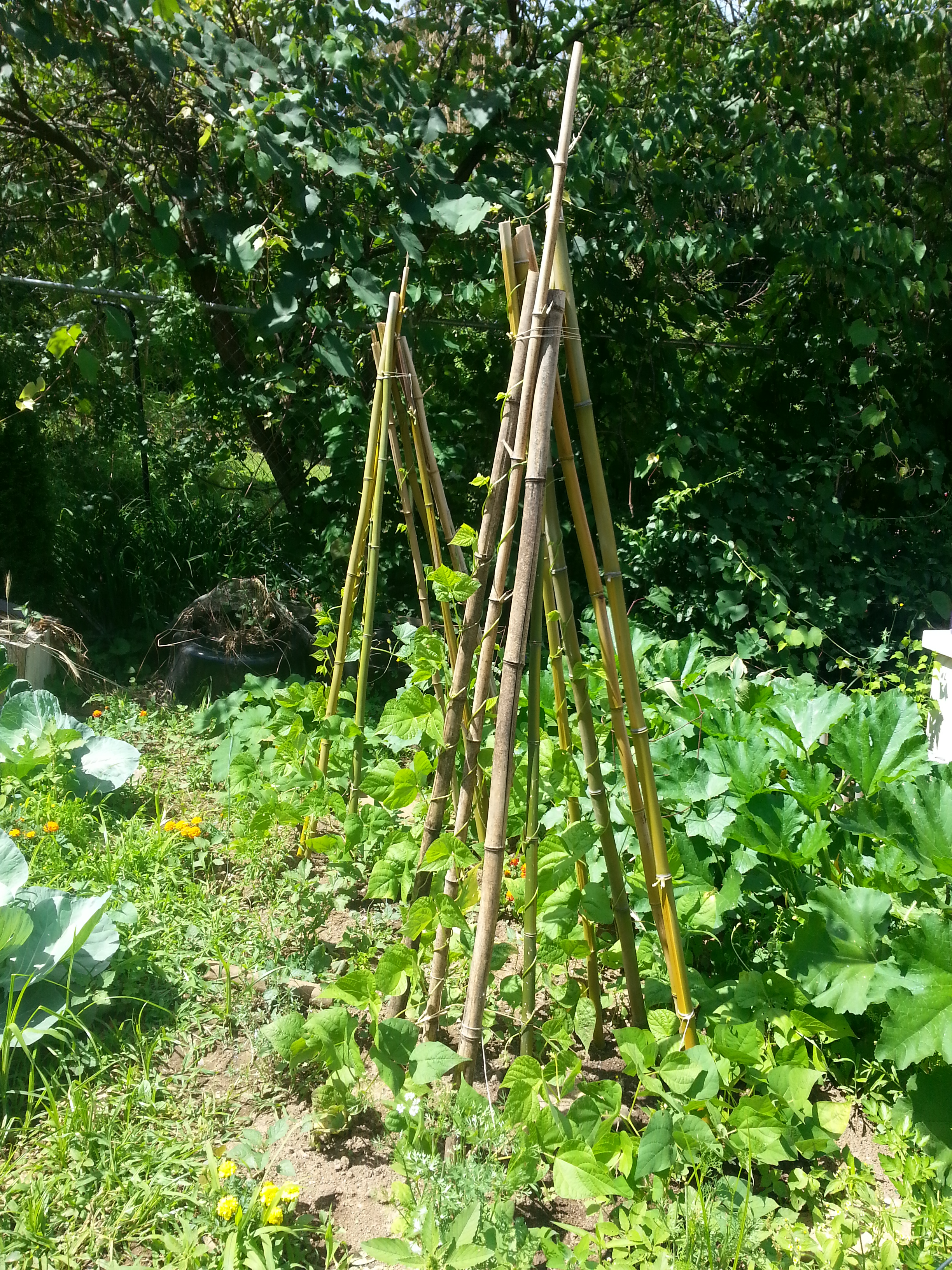 … and bamboo climbers for pole beans.