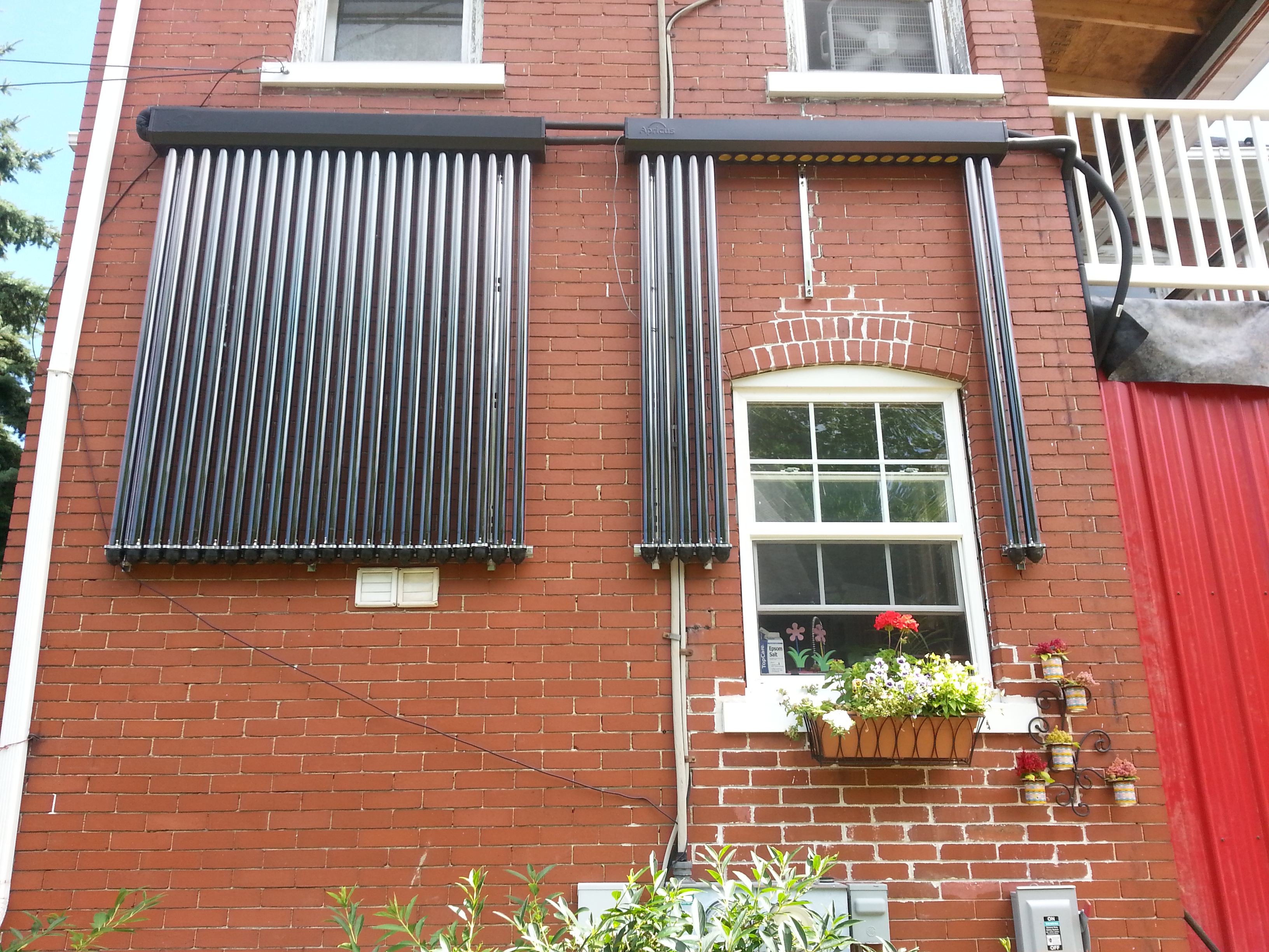 Johan has recently installed an evacuated tube solar hot water collectors. This is our primary source of hot water. It is along a sun facing outer wall and makes quite a statement.