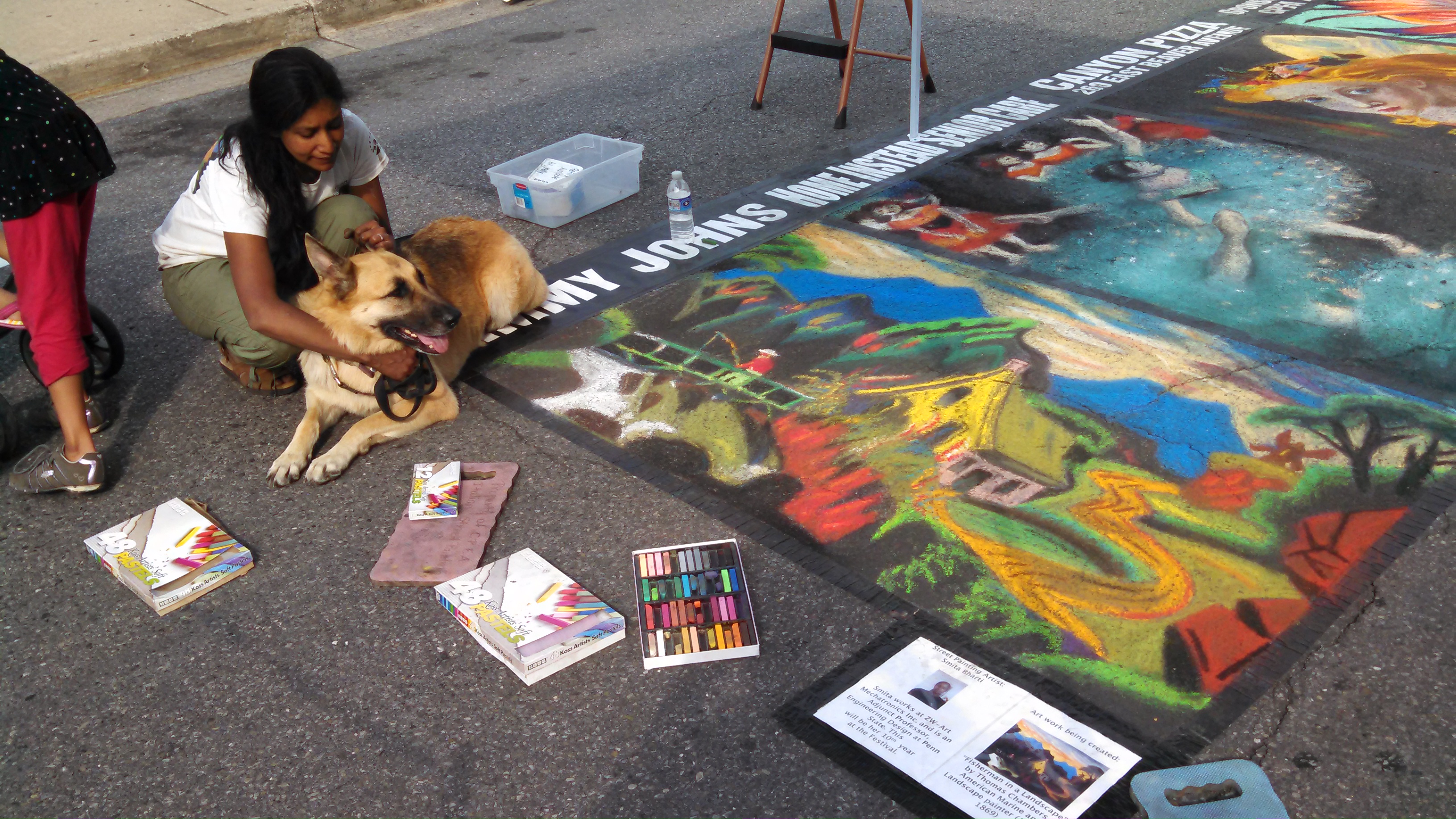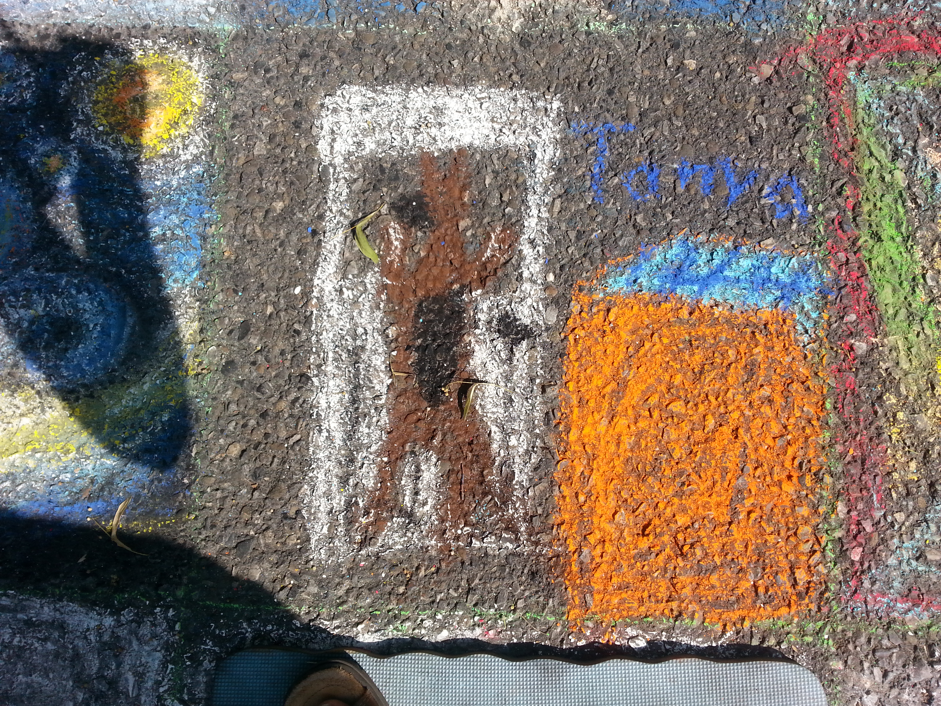 Tanya had her own street painting work to do. She made Rosie trying to escape by opening the kitchen door. Here’s a picture of her in action.
