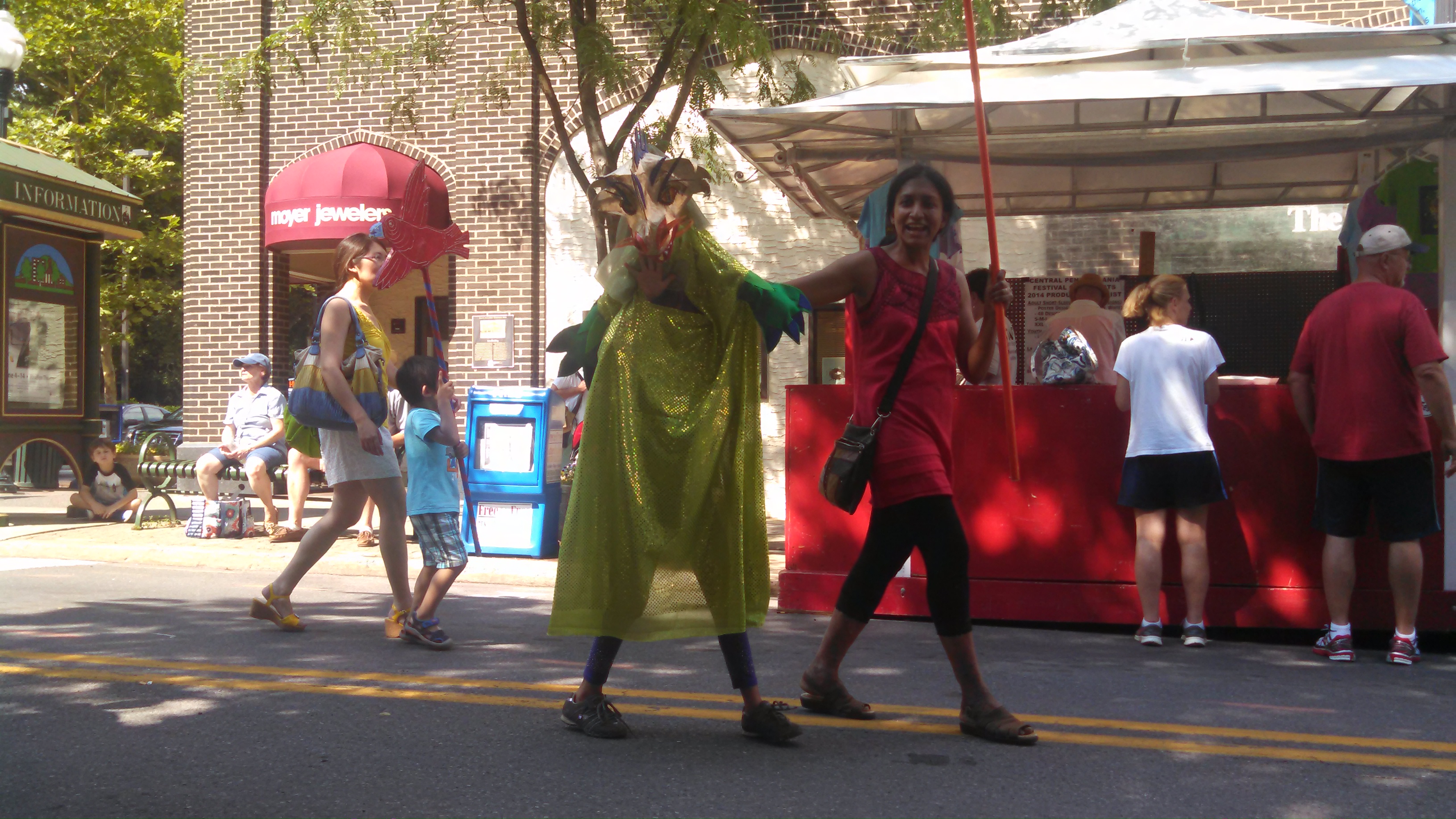 In the evening, Tanya and I went for the kids parade. It is pretty amazing. We could pick any character and carry it in the parade. Each piece is an exquisite work of art, since it is made with paper mache. Here’s a picture.