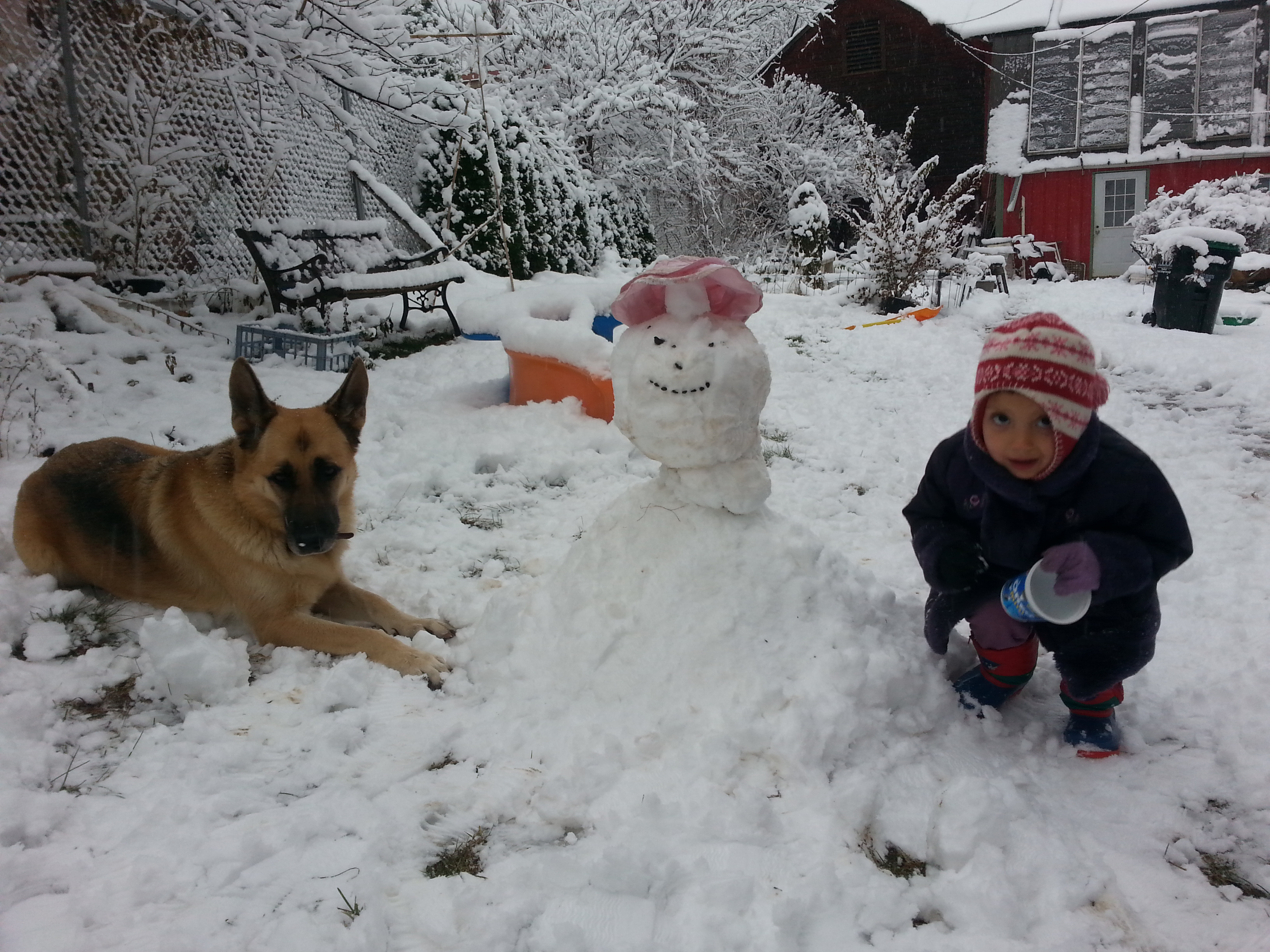 In the meantime we have been lonesome, but not without adventures. On the wednesday they left, we had a lot of snow. The first snow is always fun. Leena and Rosie went crazy. We also made a small snow man. Here’s a pic.