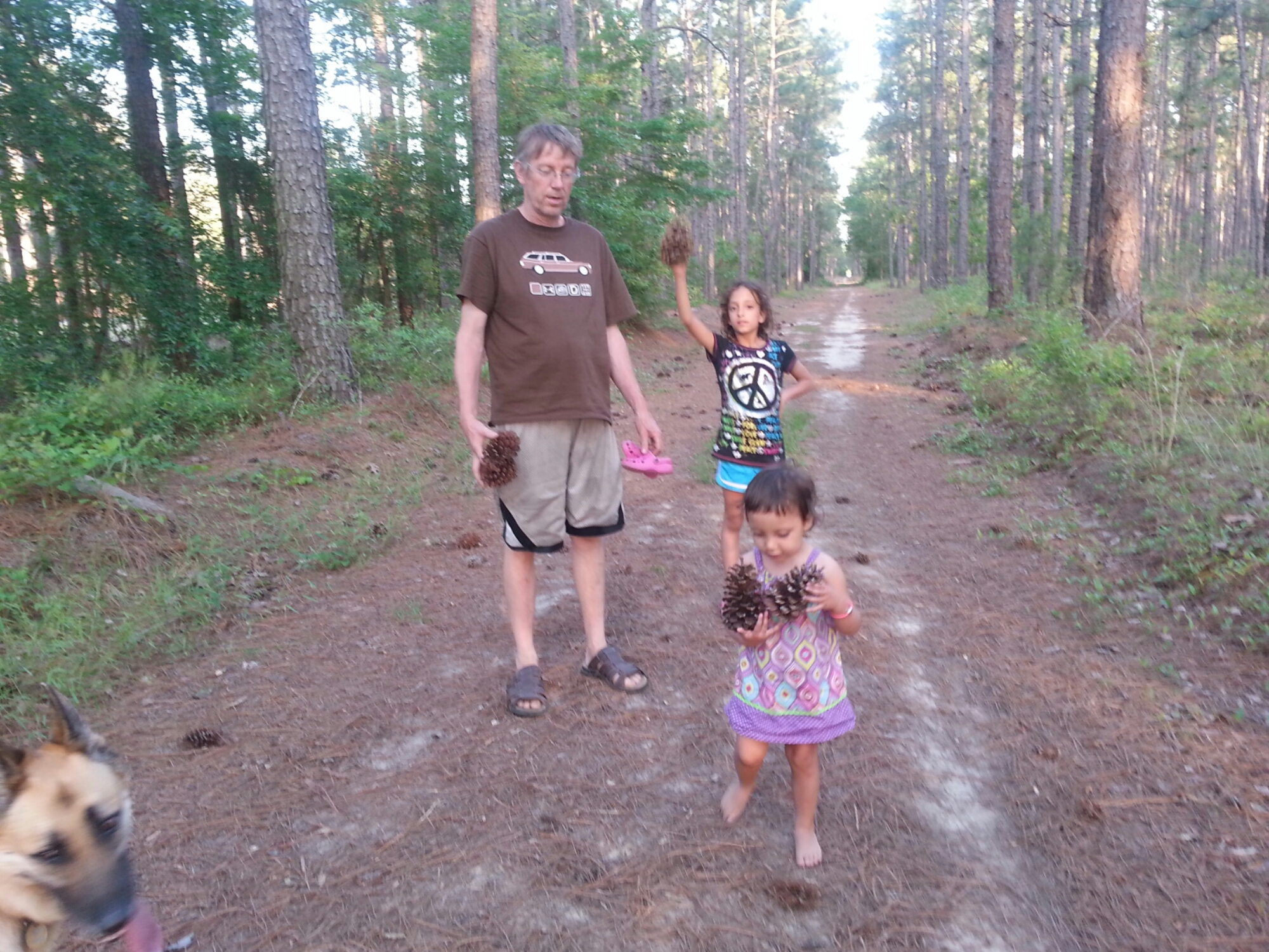 Walk in North Carolina. We found huge pine cones.
