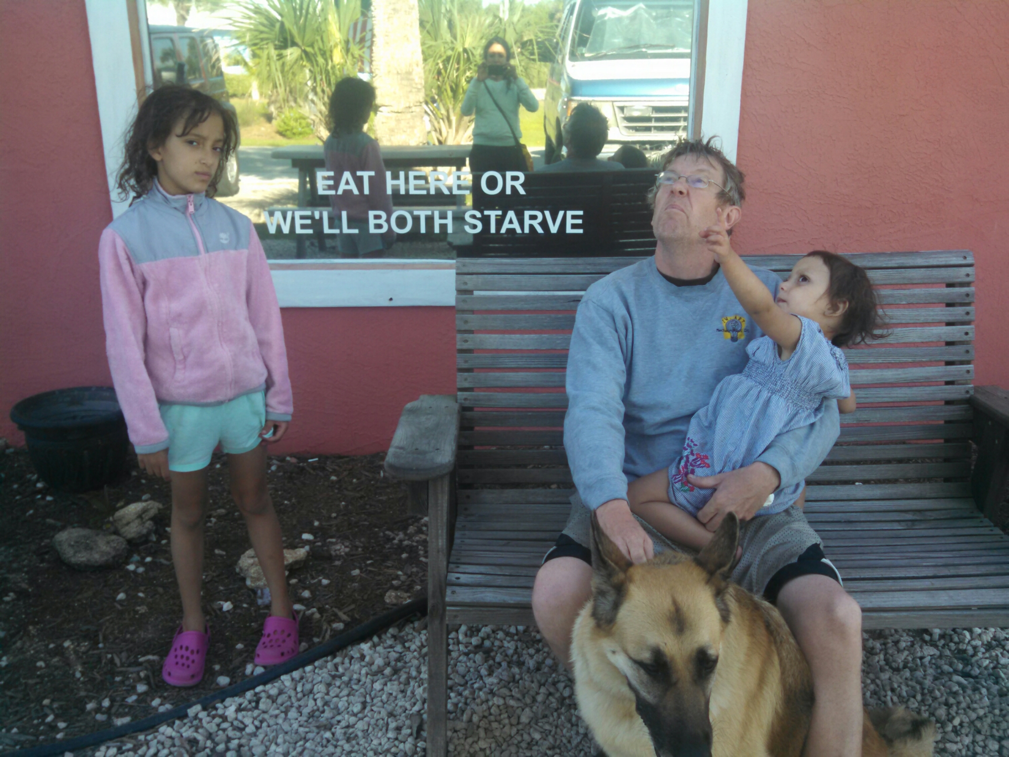So our future meals were simple. We ate breakfast out at restaurants. We took honey along. The girls could enjoy pancakes with honey. We would then map out a health food store and get dairy products and produce for the day. The ice packs in the freezer kept the fridge cold enough through the night! Our fridge used energy from solar panels. Wait…. What?! Here’s a pic!