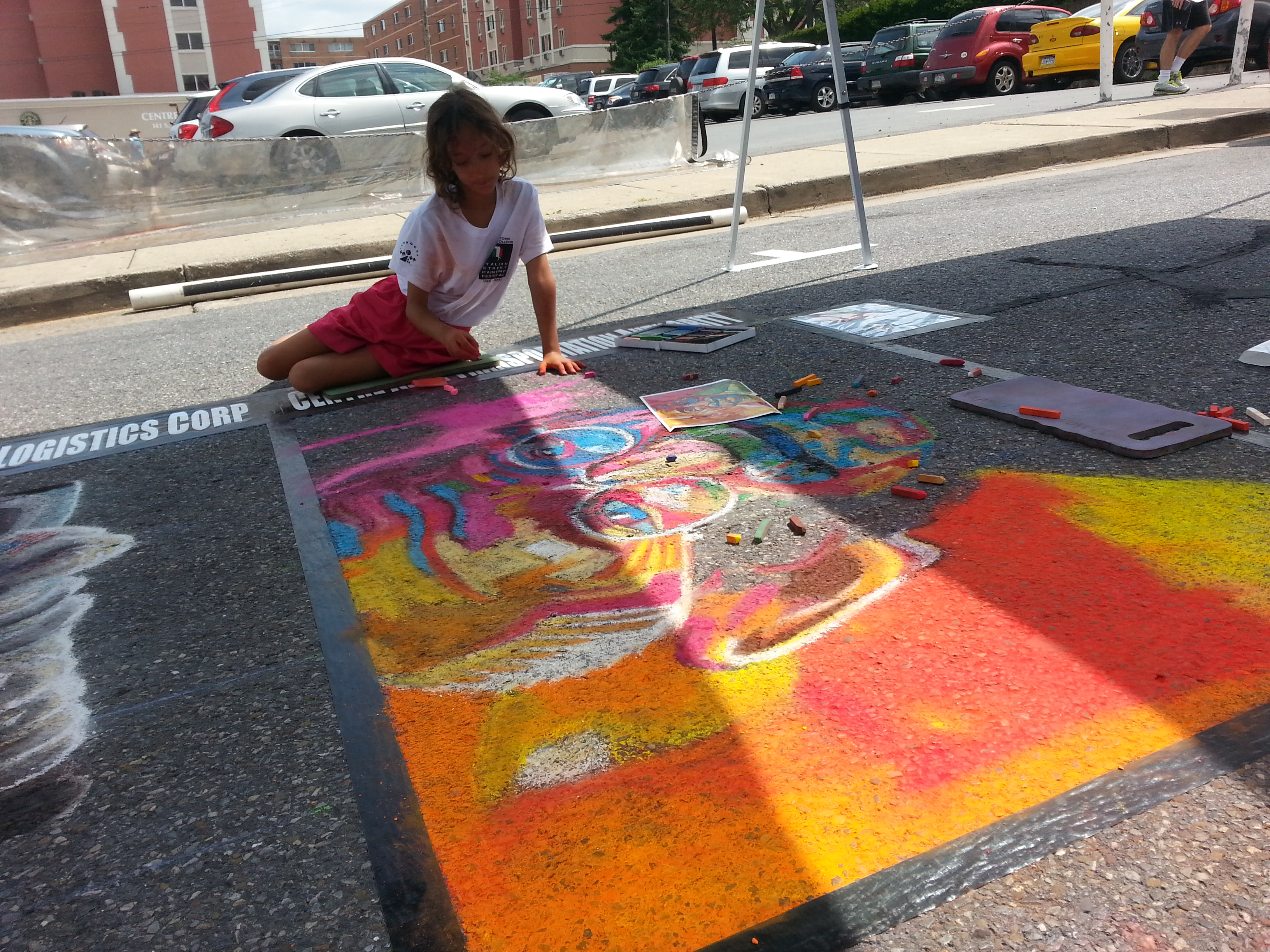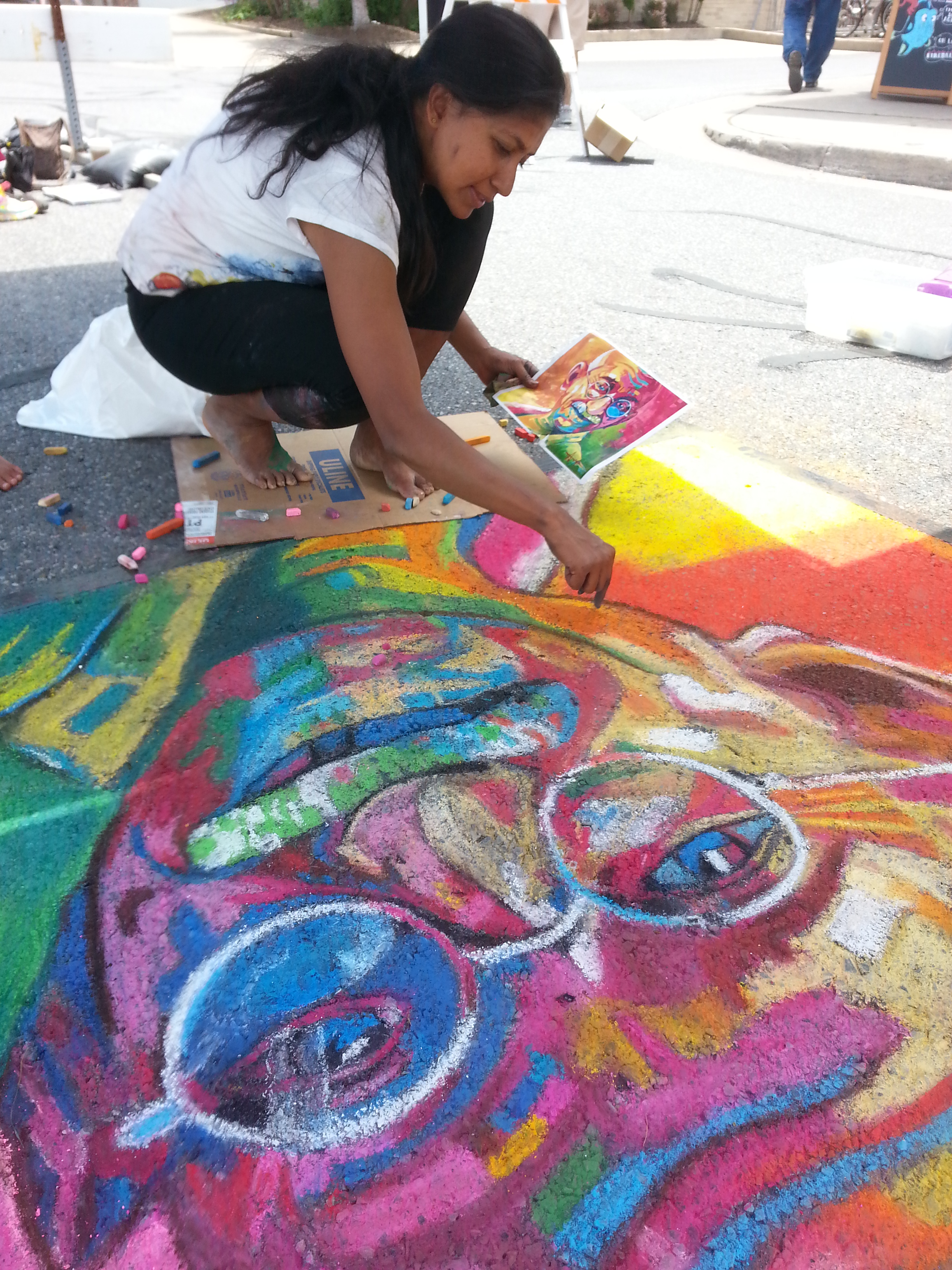 We had a blast last weekend with the arts fest. Tanya helped me with my street painting for the first time, and I am excited to report that it was a super success! We did Gandhi (original artist: Ange Hillz) and Tanya did the entire background! It definitely took the monotony out of the street painting.