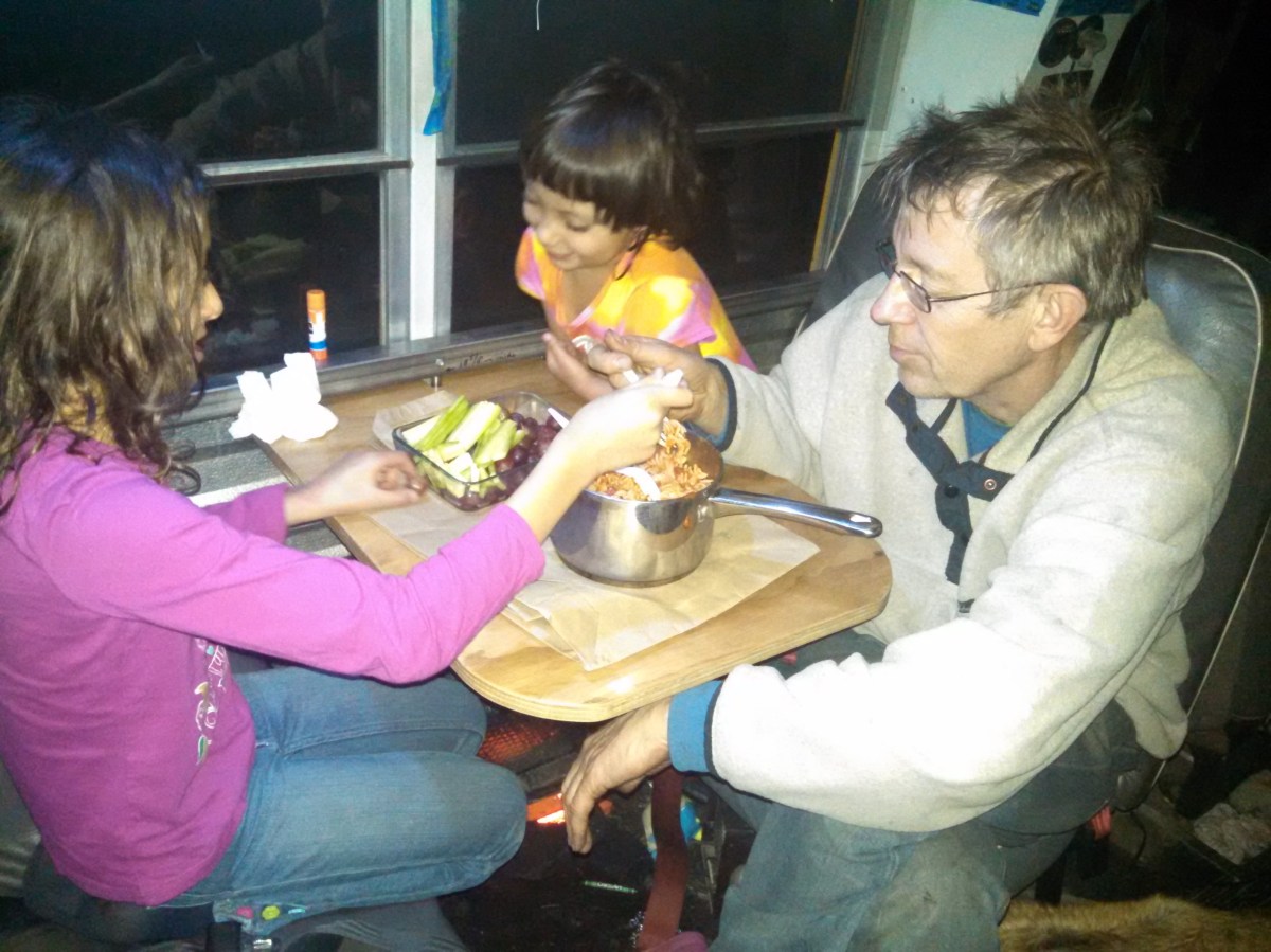 IMG_20170308_194545_010 Pasta – we forgot plates in our first trip. The girls loved eating out of the pan!