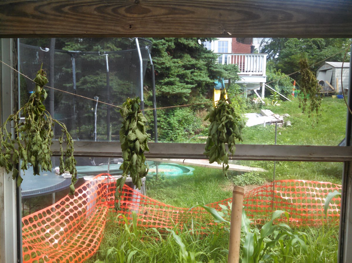 Harvested herbs dry out for 2 weeks in the greenhouse