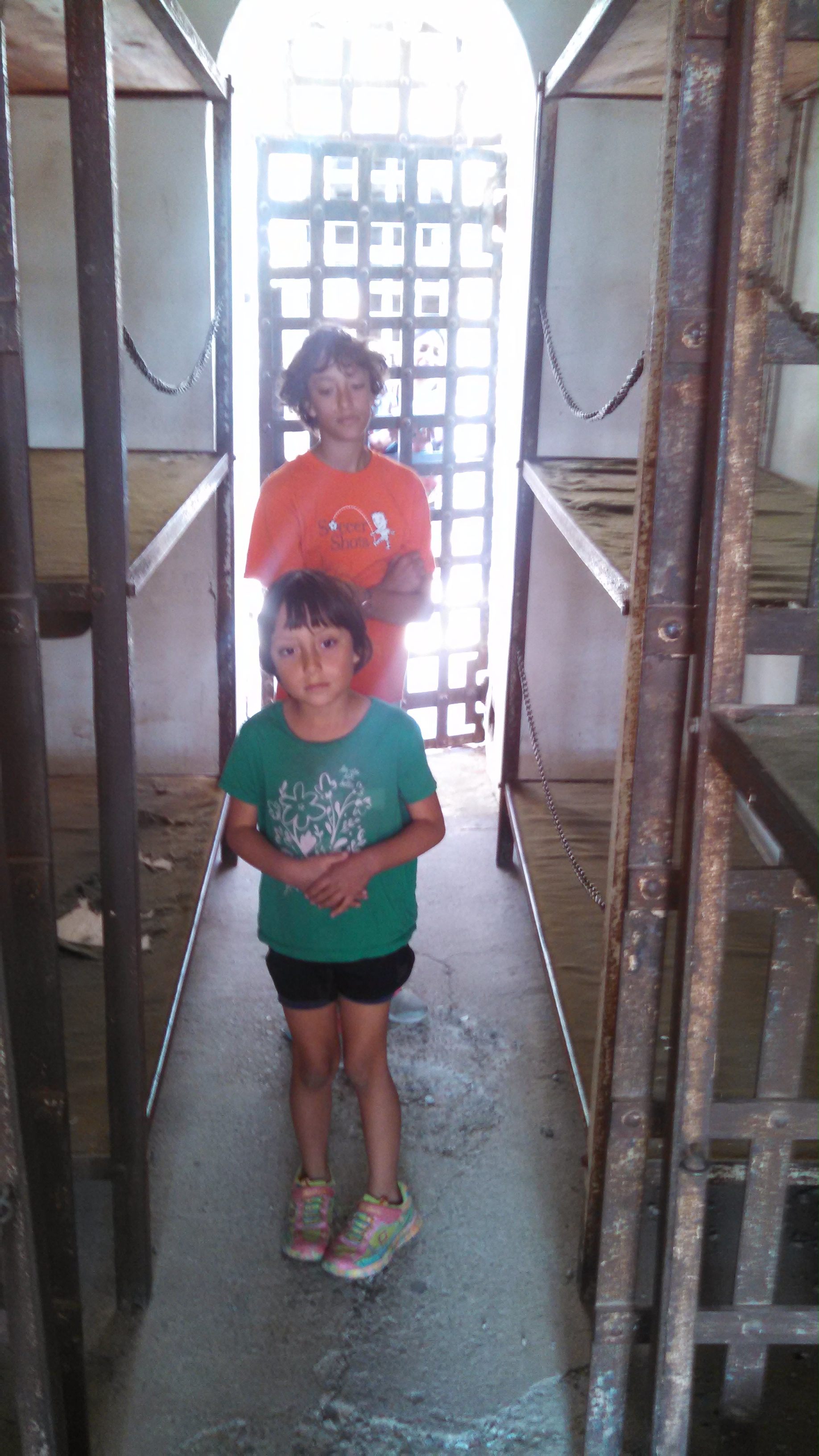 In a jail cell. They look like jailbirds, don’t they?