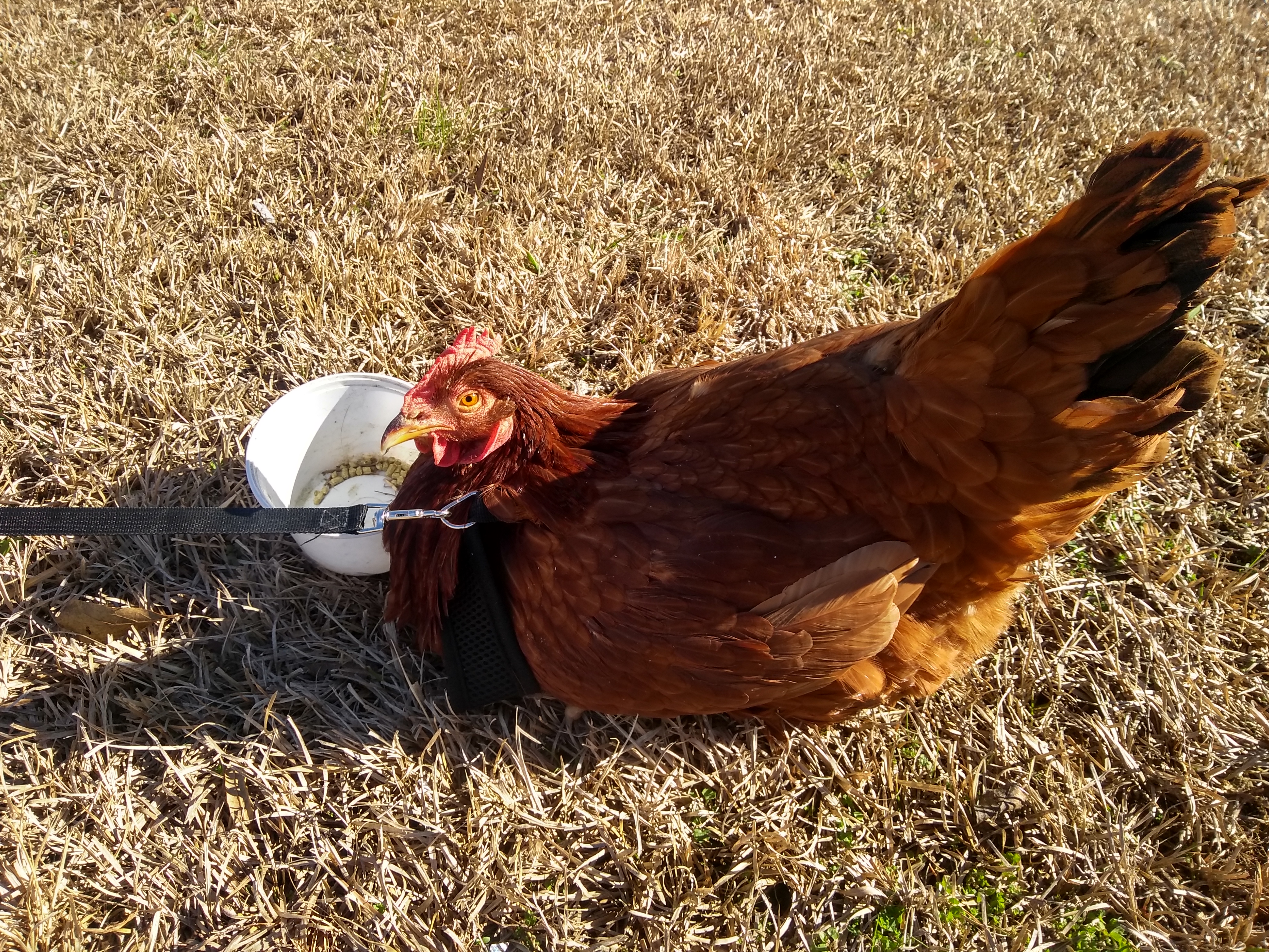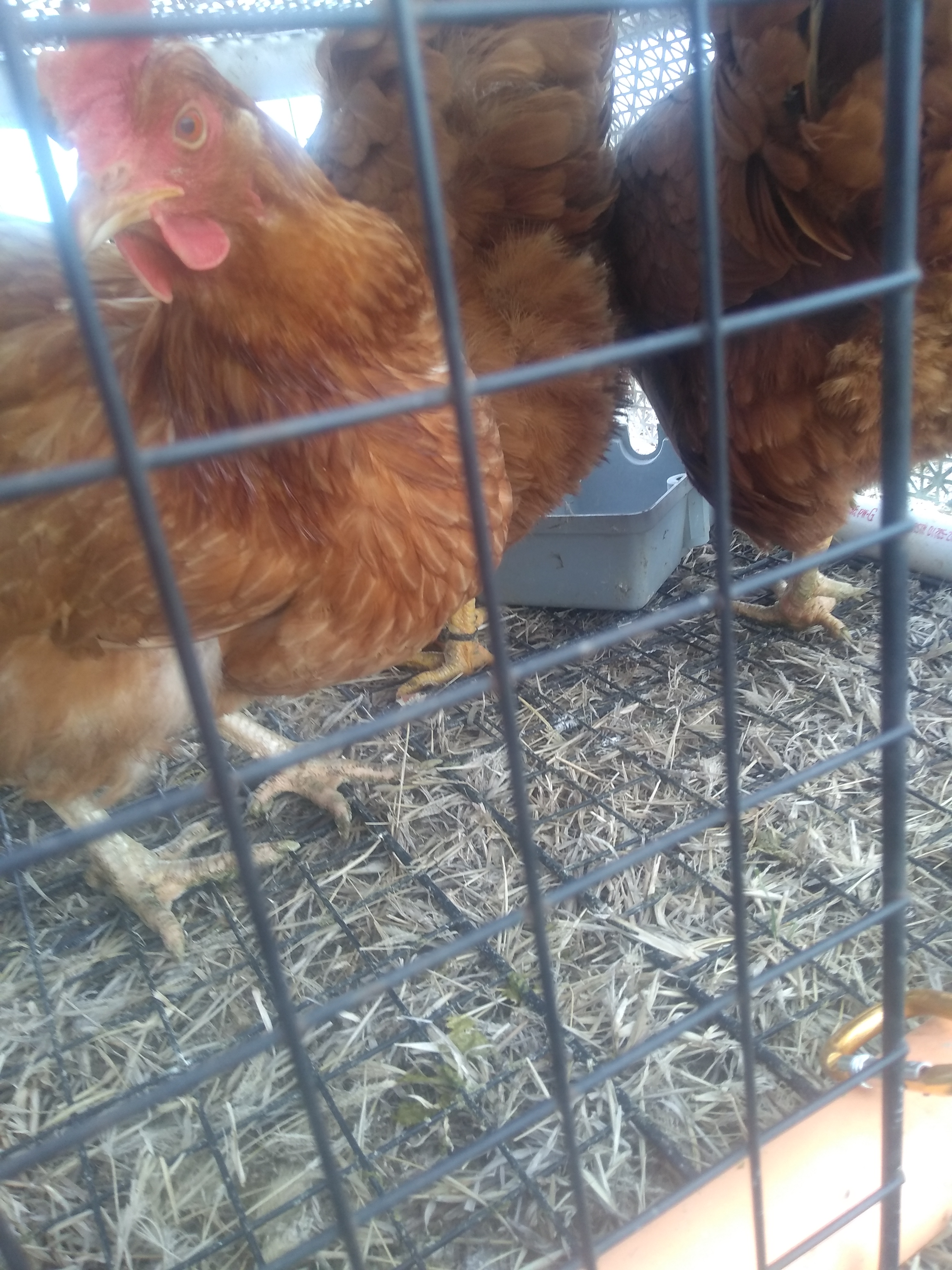 Crazy Cookie: It was a fine January day. I got up thinking about which chicken I needed to bully in order to remain on top of the pecking order. Guess what! My big roosters (people) from the house have lost it totally. They put us in this box (I do like the box, its shiny!). The box was put in a big yellow box that has wheels and we have been unceremoniously carted around throughout the country. I didn’t even get to say goodbye to that crumb I hid behind the tire. I am sure the blue jay got it (sigh). Anyhoo. Every morning and evening, they pull shiny box out, tip it and remove the cardboard under us. Then we get to free range. Then they put a new cardboard in. But the worst is when the young girls called Tanya and Leena put us on leash like their four legged monsters and let us walk around in that. Ohhh. I have to recover from my ordeal. More later.