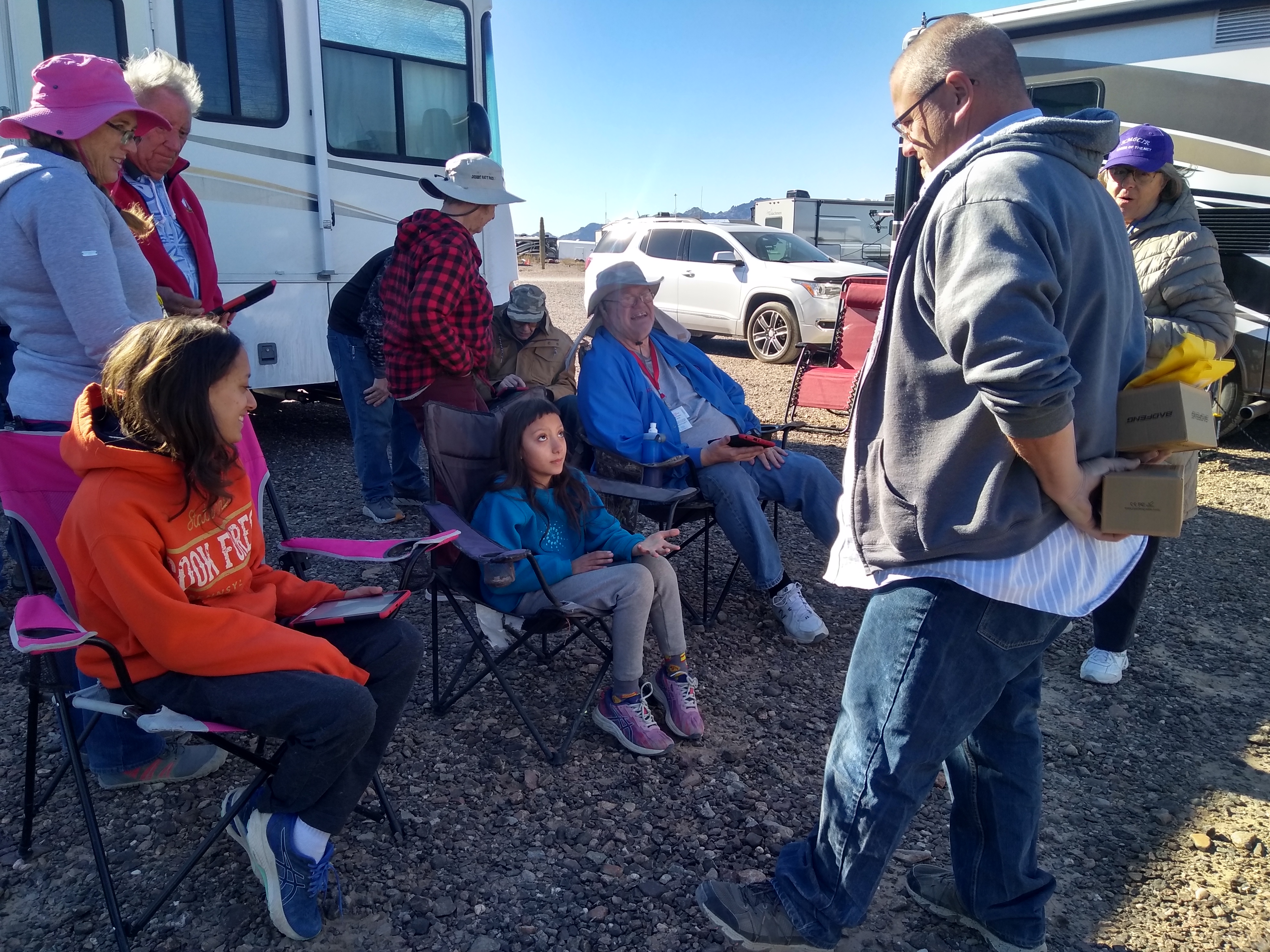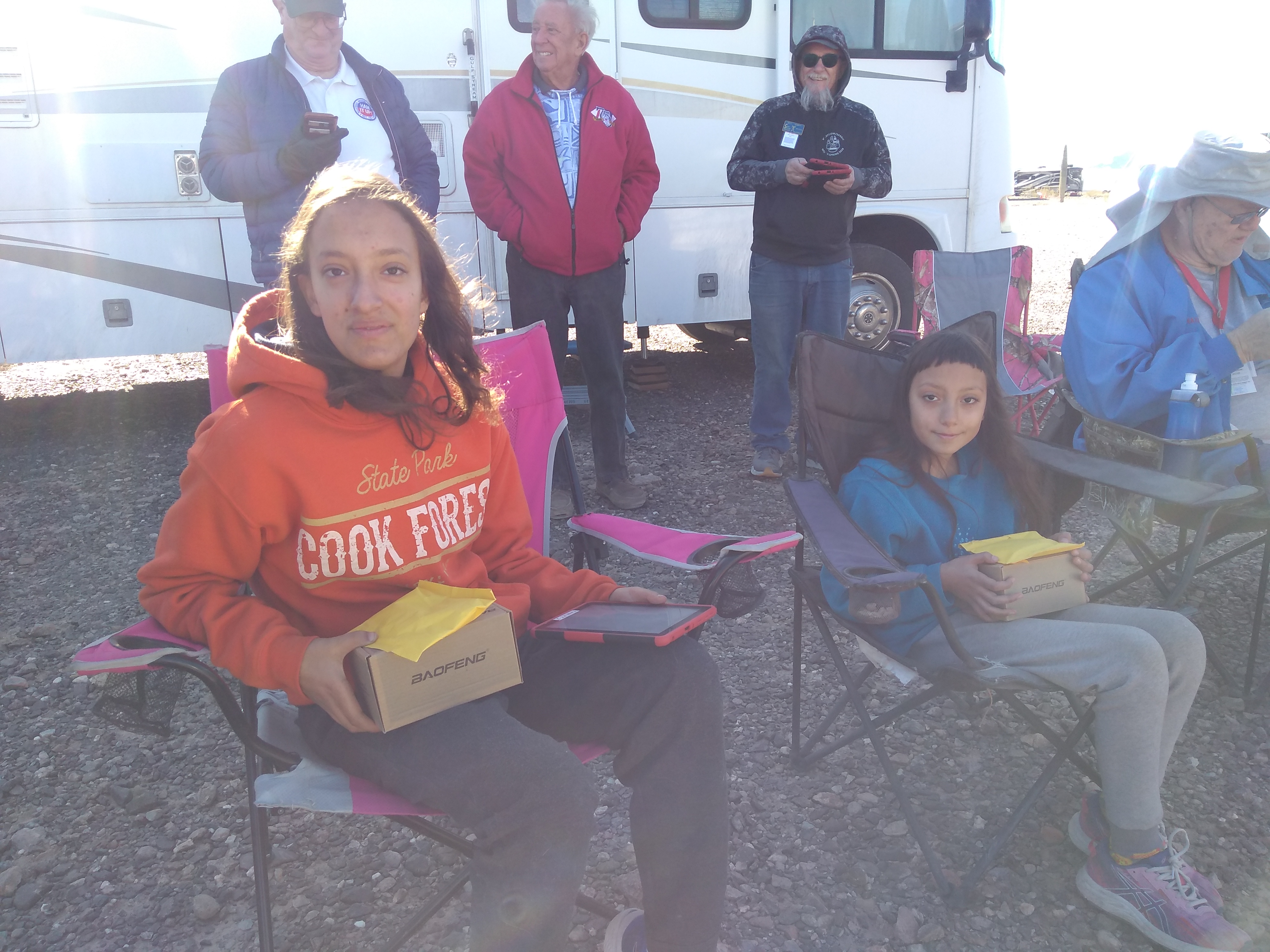 We have been in Arizona for a little over a week, and a lot happened! As mentioned in my previous blog, our kids started studying for their ham radio technician license while we were travelling to Arizona. The goal was that they take their ham radio test at the ham fest in Quartzsite AZ. With many grumbles, our 10 year old studied for the test (but mom, I am only 10!! Yeah, yeah whatever!). We reached Quartzsite AZ on the first day of the ham fest. We found the testing site and went to speak with the test coordinator, Steve. He listened wide eyed to our daughters’ plan and was super excited to hear that he would be testing a 10 year old. He told her that if she passed the ham license test, she would get a free ham radio from him!! Now Leena was excited!