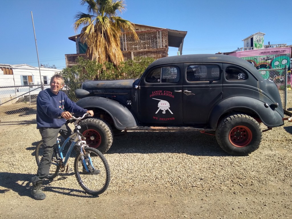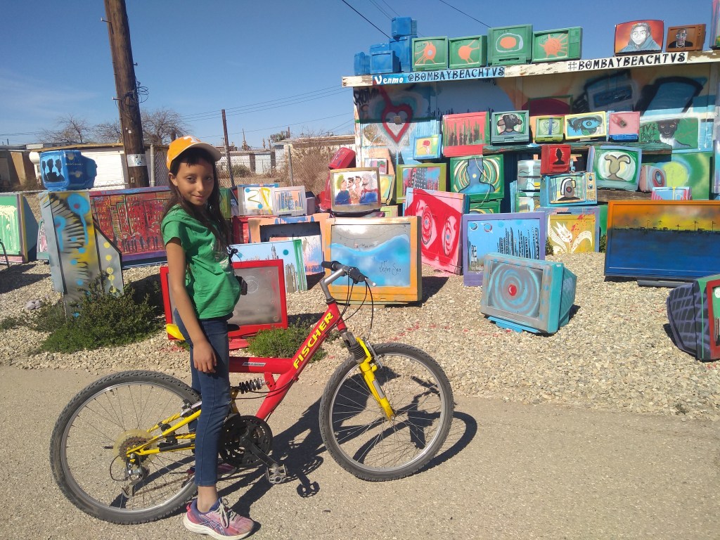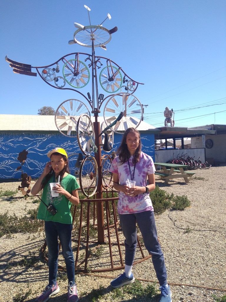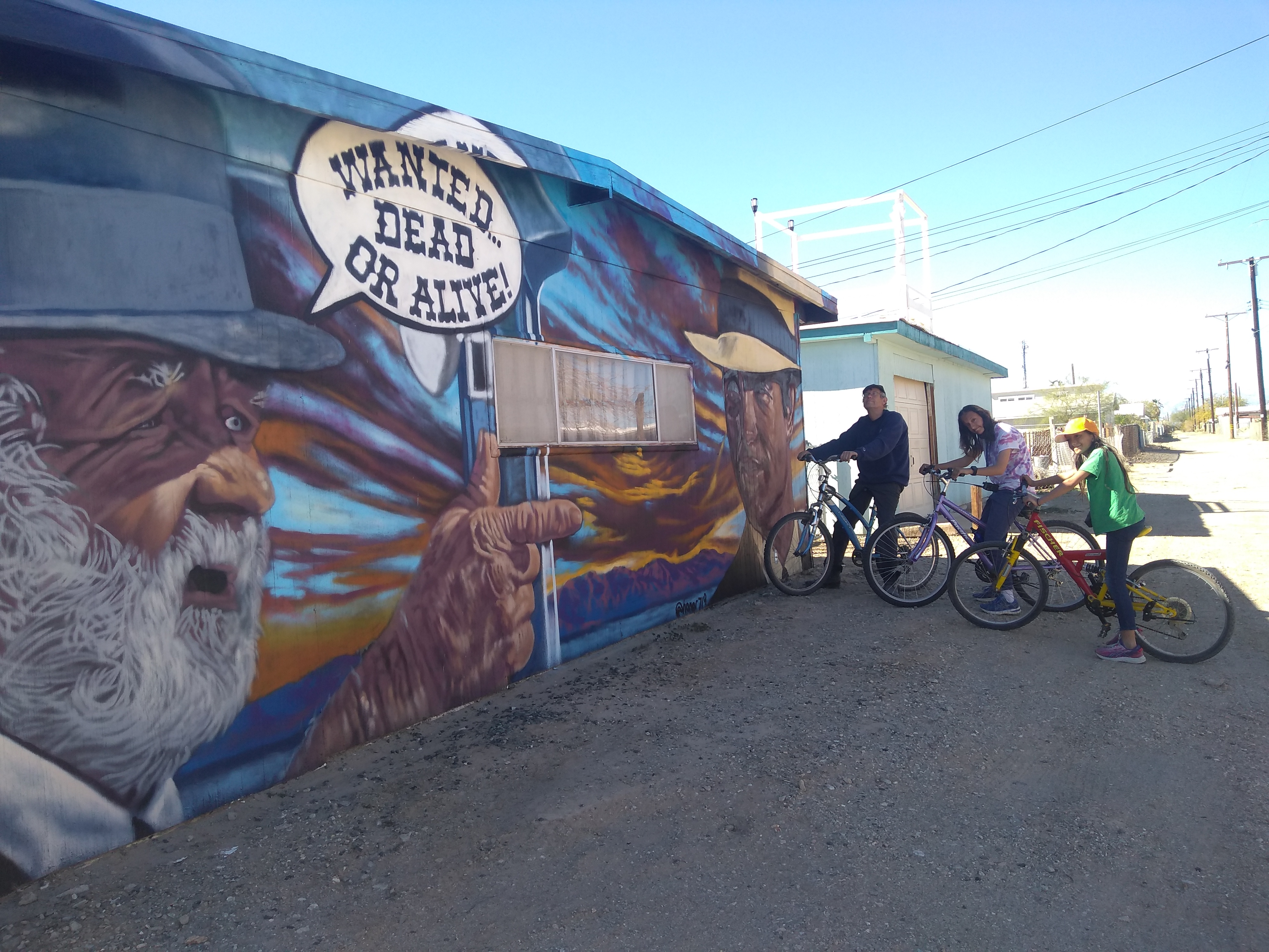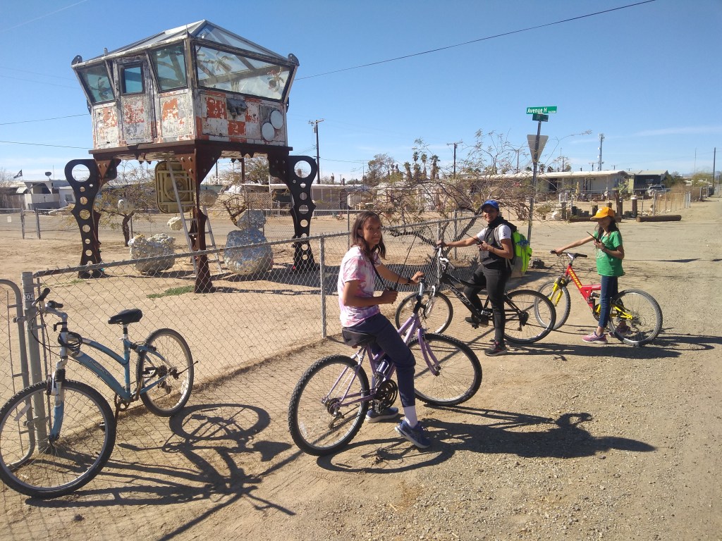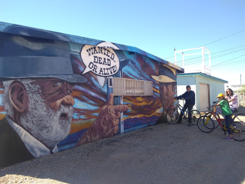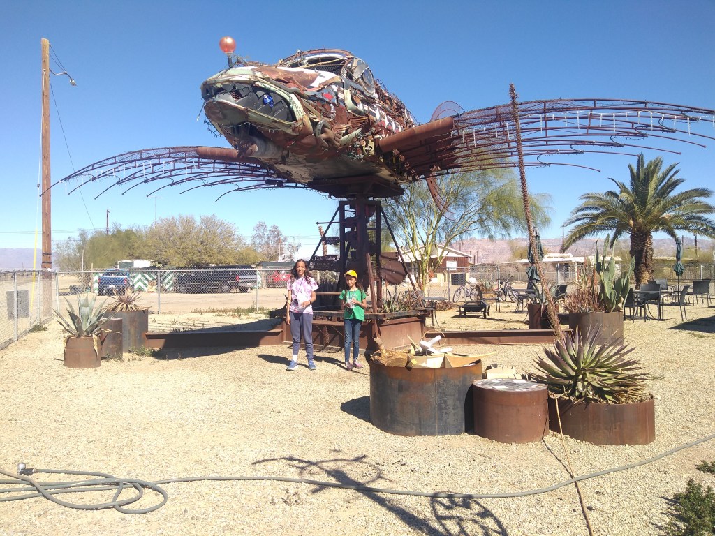 We enjoyed the sunset at Salton sea, and got up early to catch the sunrise. Both were beautiful. Salton sea itself is heavily polluted and smells bad. There’s crud if you step in the water. But it looked beautiful nevertheless. After breakfast we got on our bikes and decided to tour the town. The town is square with 5 or 6 blocks each way. We checked out the lovely art and took many pictures. Yeah, my blog is going to look stunning today!