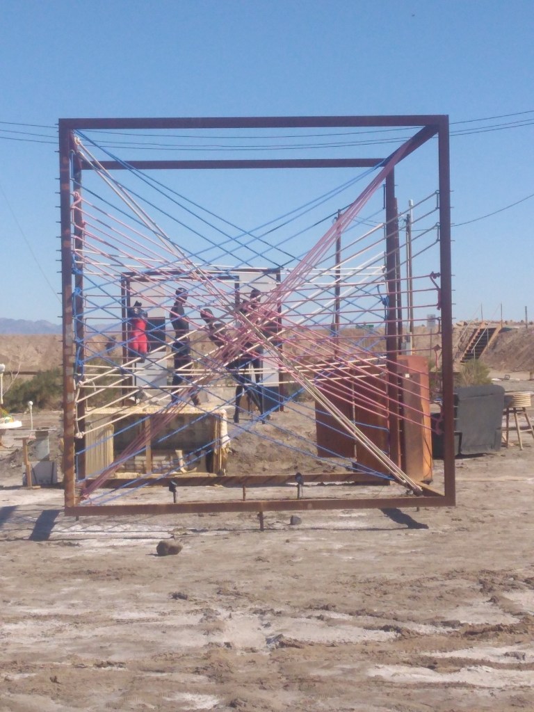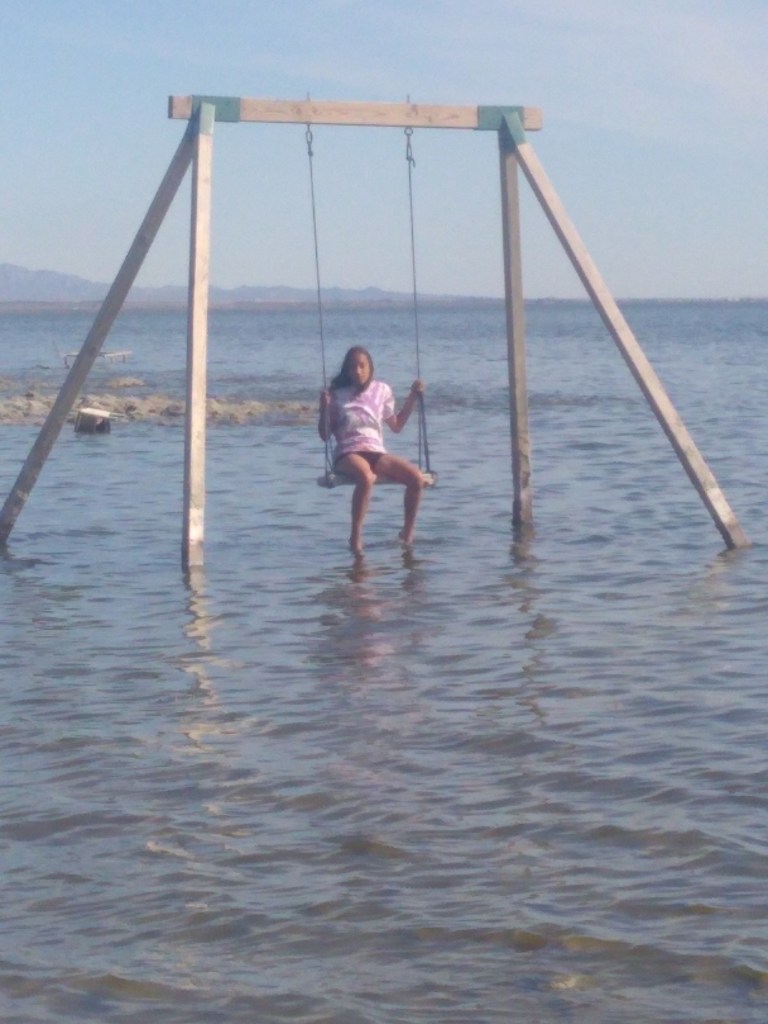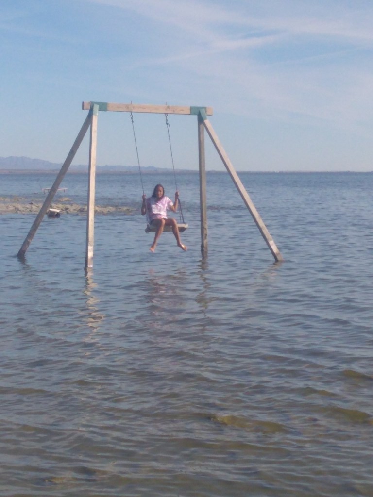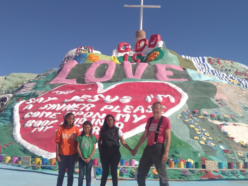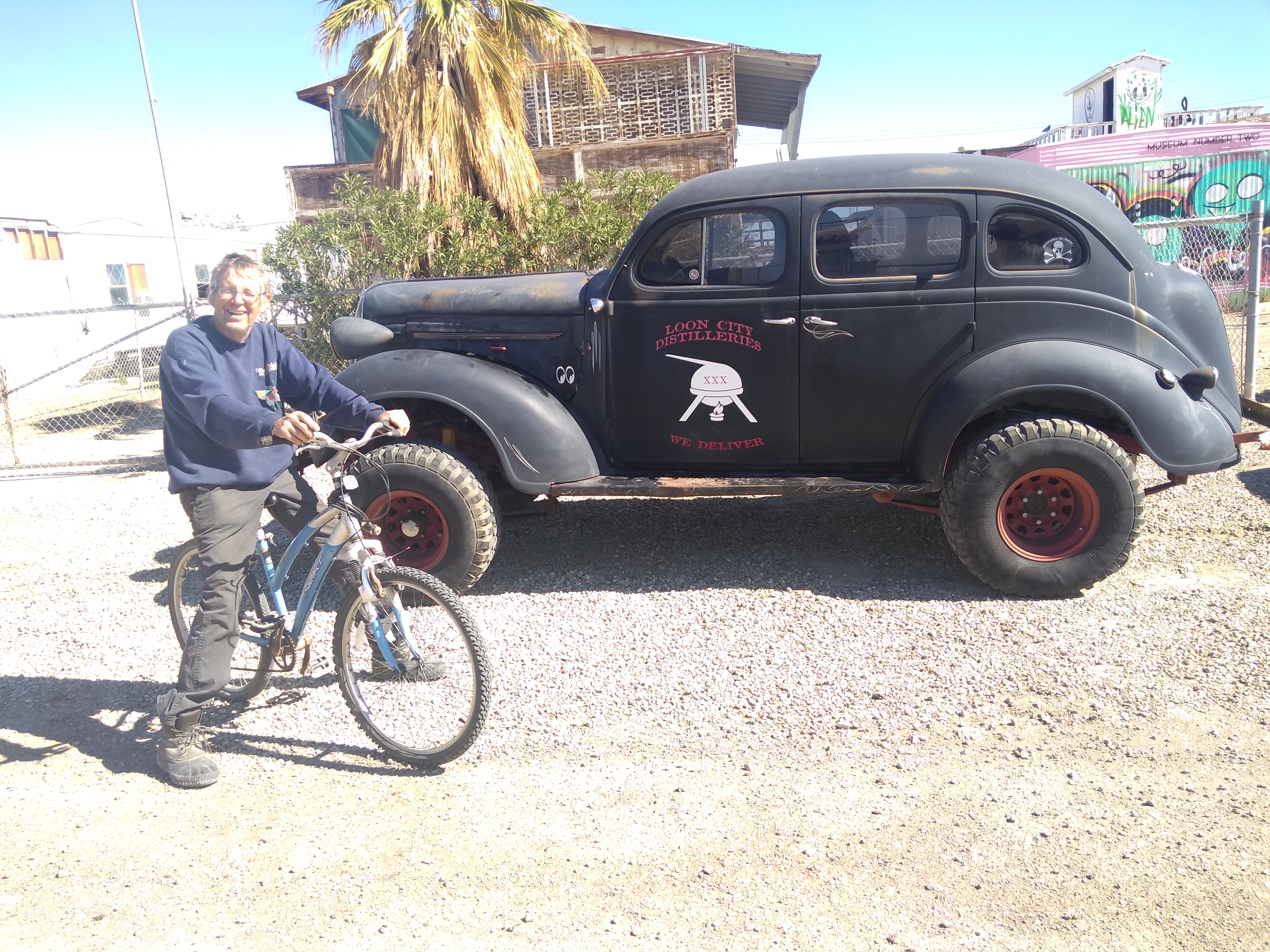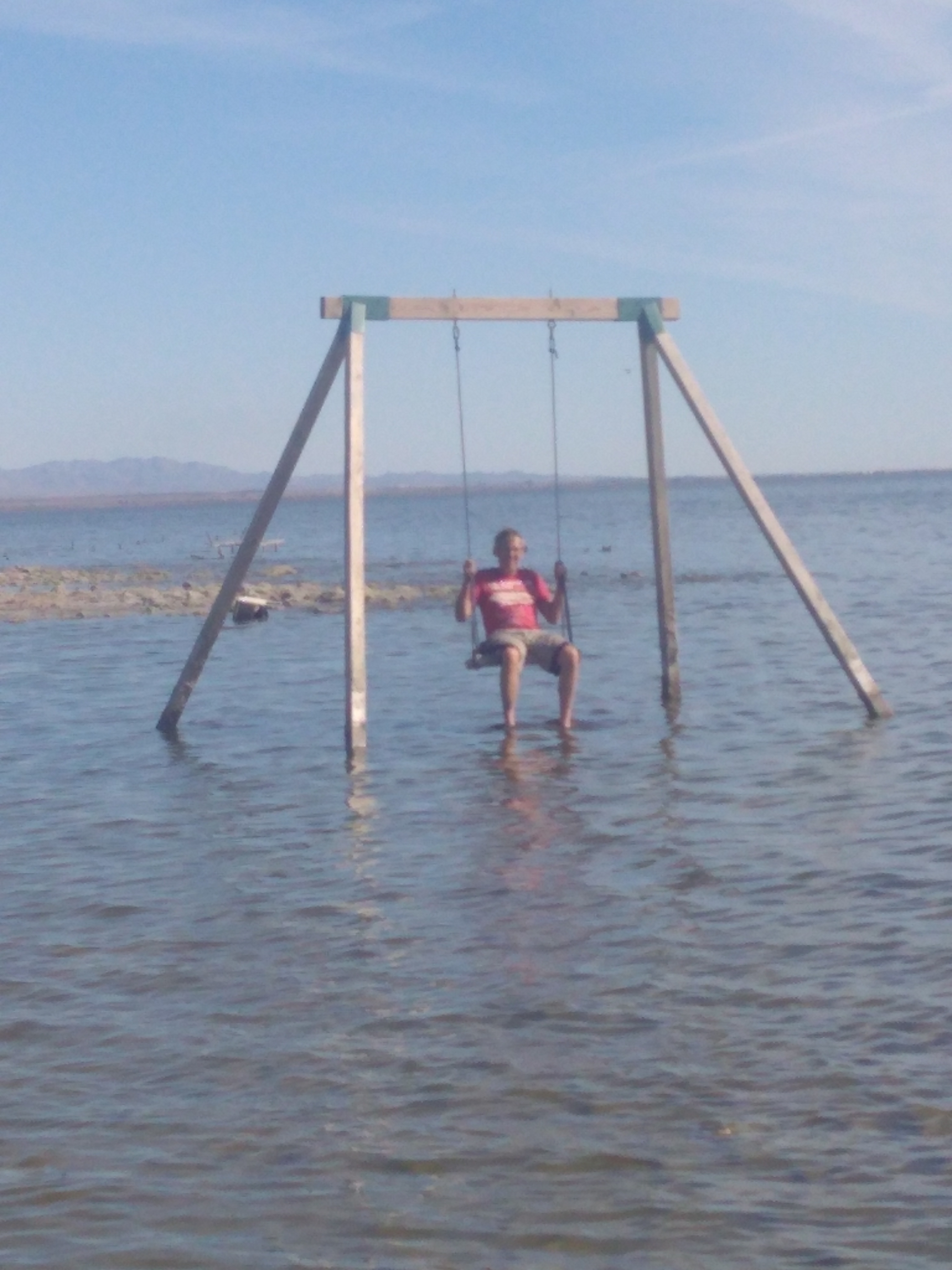 We enjoyed the sunset at Salton sea, and got up early to catch the sunrise. Both were beautiful. Salton sea itself is heavily polluted and smells bad. There’s crud if you step in the water. But it looked beautiful nevertheless. After breakfast we got on our bikes and decided to tour the town. The town is square with 5 or 6 blocks each way. We checked out the lovely art and took many pictures. Yeah, my blog is going to look stunning today!