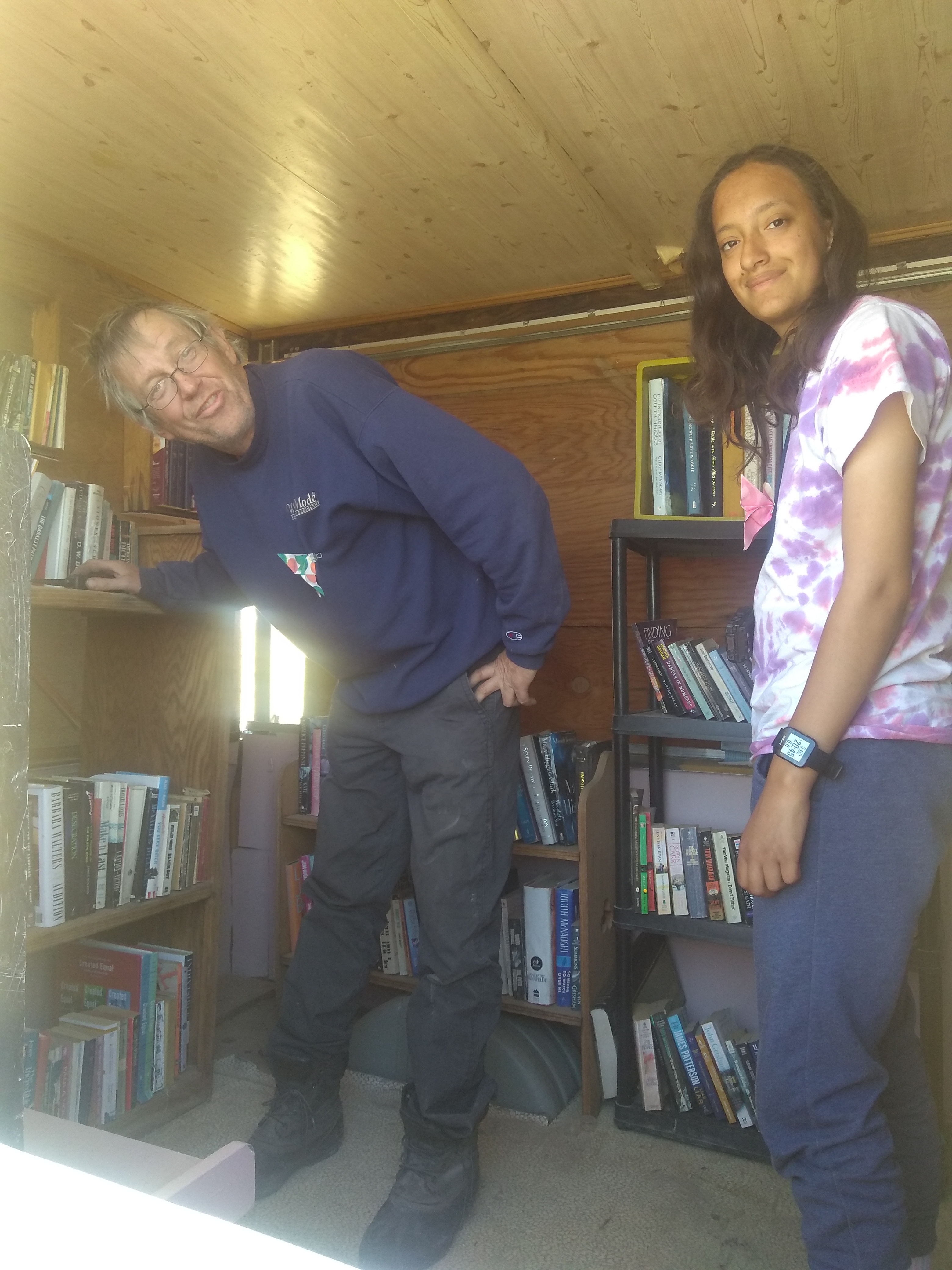 We were very surprised when we found a community cafe in the town, open Friday through Sunday. Luckily for us, it was Friday. We went in and got our drinks. The barista was a lady who was originally from Pennsylvania. She was very friendly and gave us little bits of information about the town. We were surprised to hear that the town was not actually empty. Each house was occupied. Also, real estate there was expensive! Well, well! Another person named John walked in and we talked to him about how we were slightly concerned that our bus would get stuck on the beach. He offered help if necessary, and told us about a nice restaurant/bar in town that had a karaoke night. We biked along further and found a free book library where you could take books as you pleased. There was a house with butterfly origami. We stood admiring the art, and the owner came out and gave us origami butterflies. Now we were impressed and decided to stay another night.