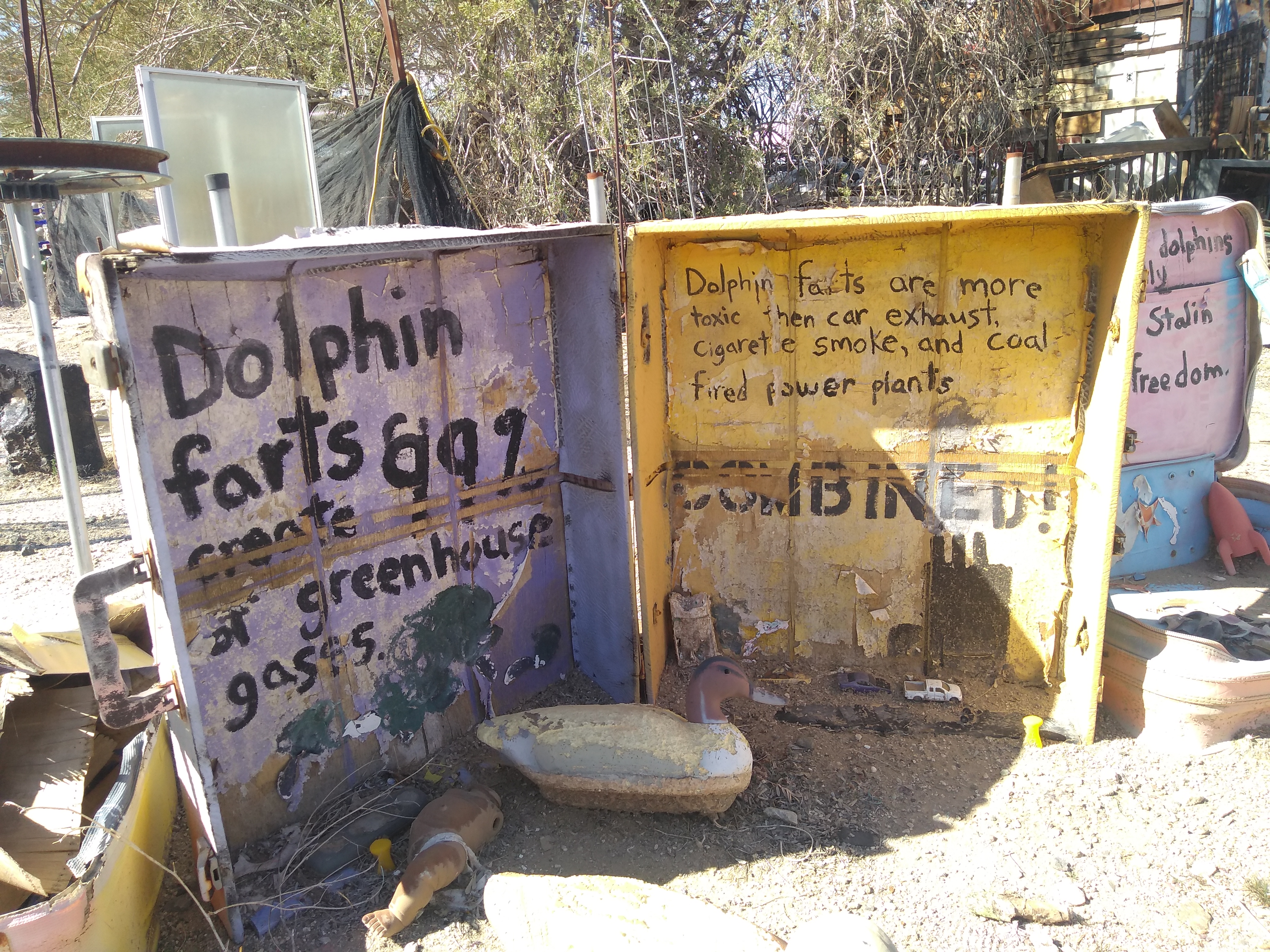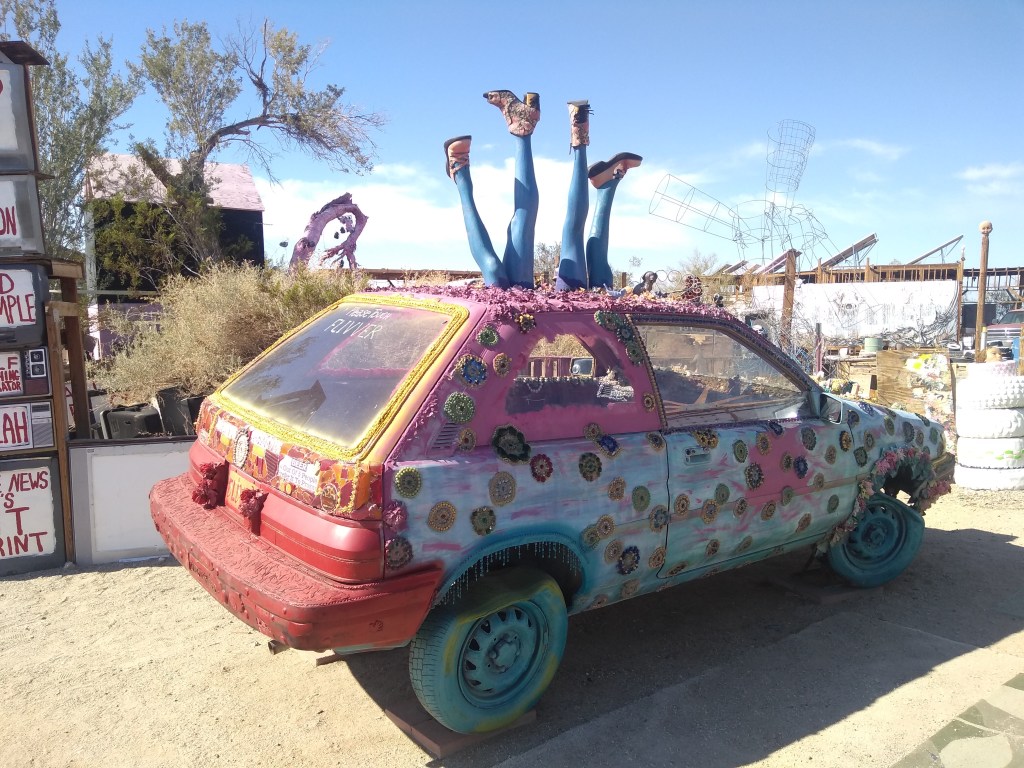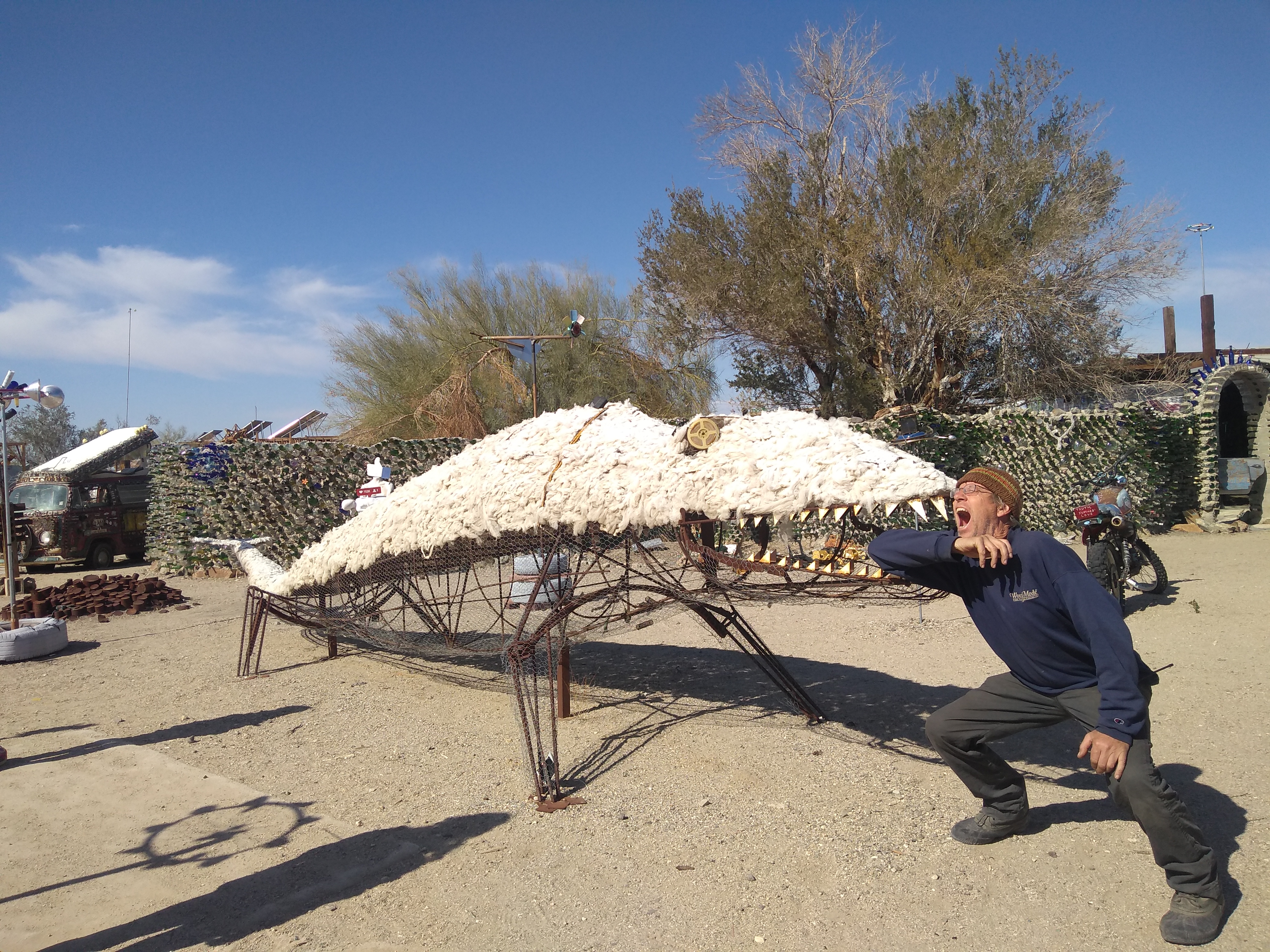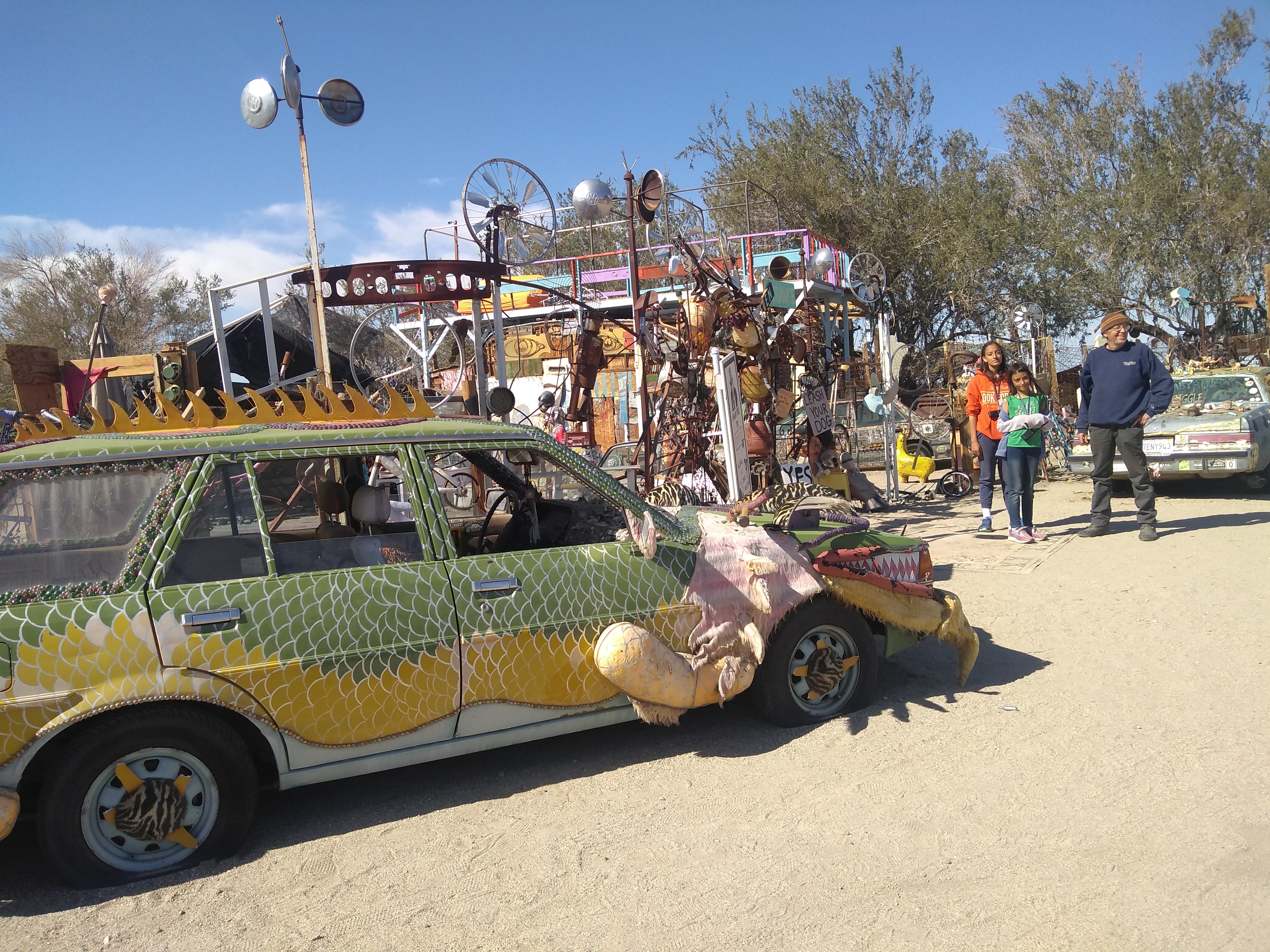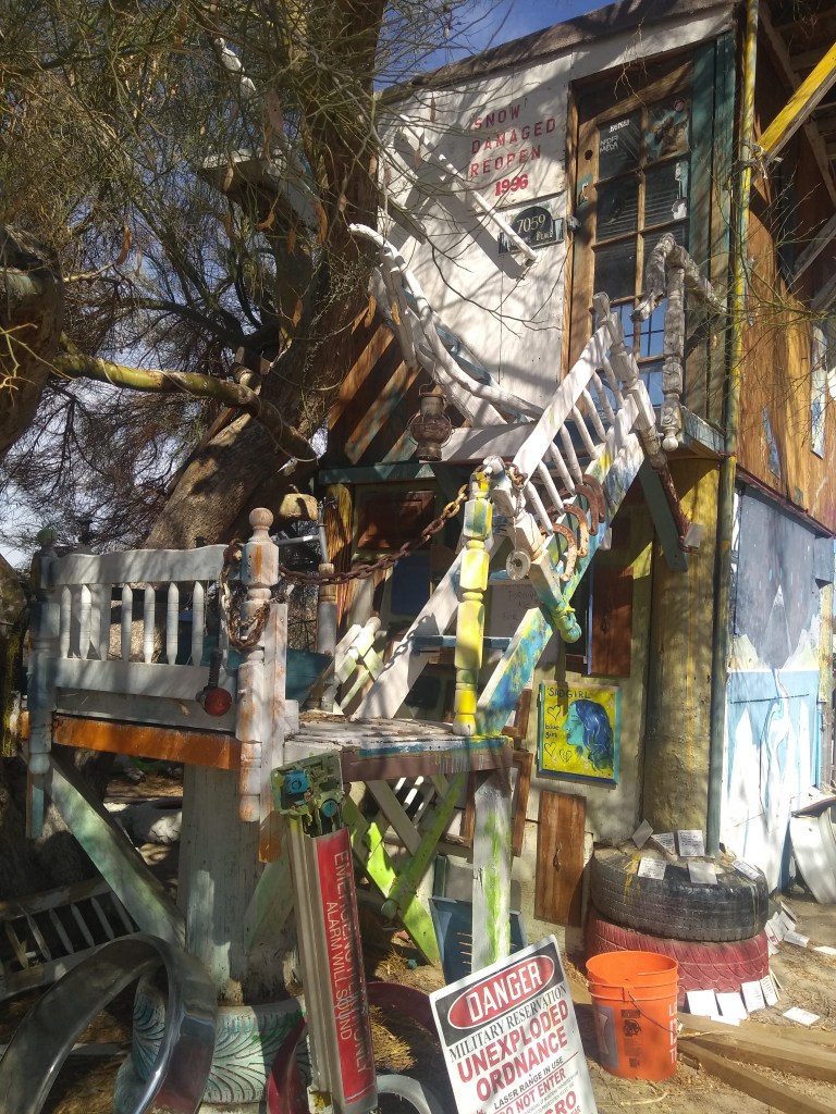 I spoke a lot about Slab City so there’s not much to add, except for one important point. They have art too, and a whole lot of it! We visited their art museum at East Jesus with spectacular art made from people with little to no means. The results were breathtaking and touching. You can see it for yourself in the attached pictures. Oh, the dog and chicken are looking bored. Over to them.