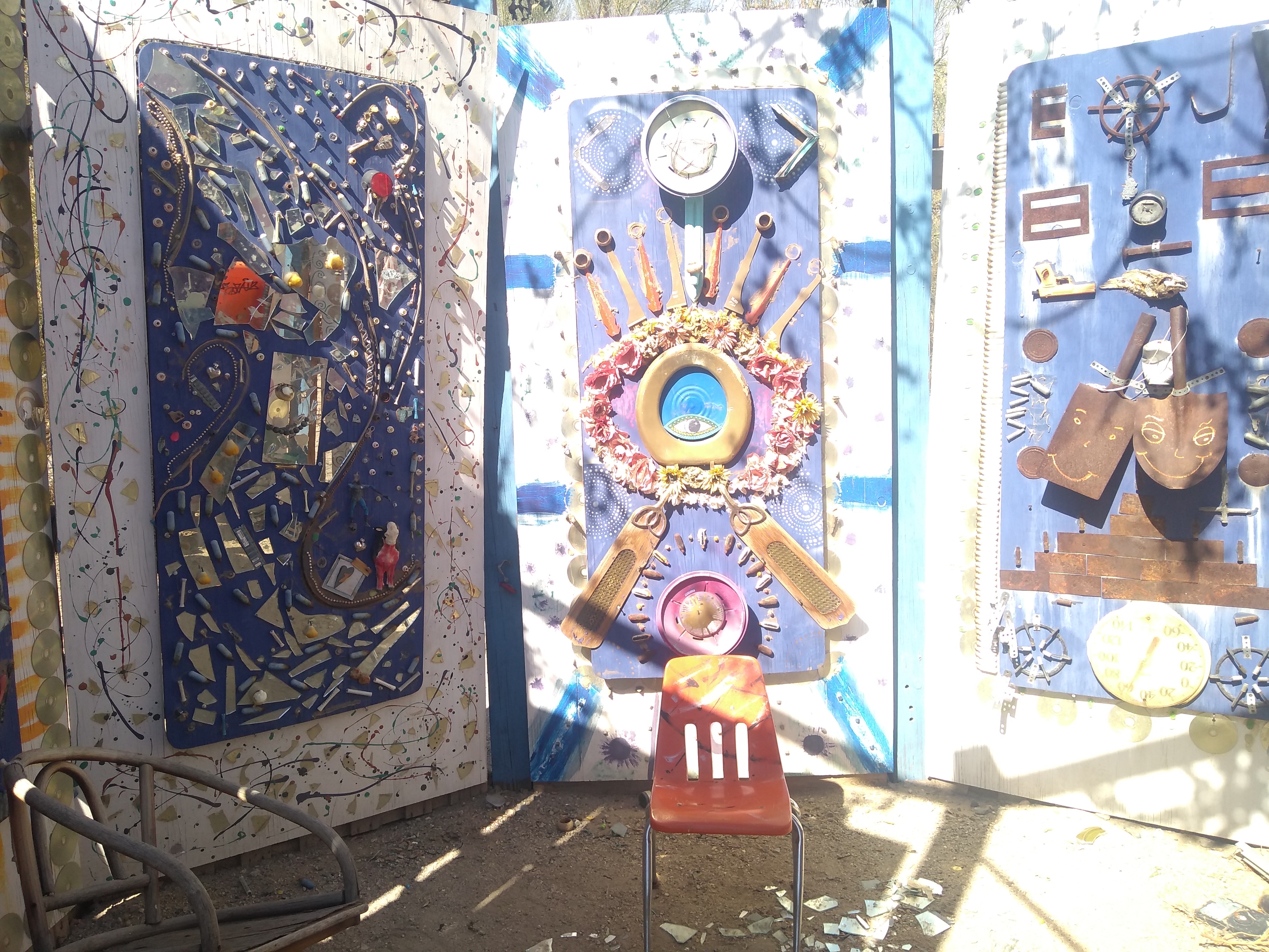 Backtracking a bit, we left Joshua tree national park and arrived at Bombay beach, Salton sea, CA. When we came in, Bombay beach looked like a run down ghost town to us. We parked at the beach to overnight with plans of leaving in the morning. The beach had odd art all over. I mentioned that previously. But although odd, the art was not random or thoughtless. It took effort and serious skills to put them together.