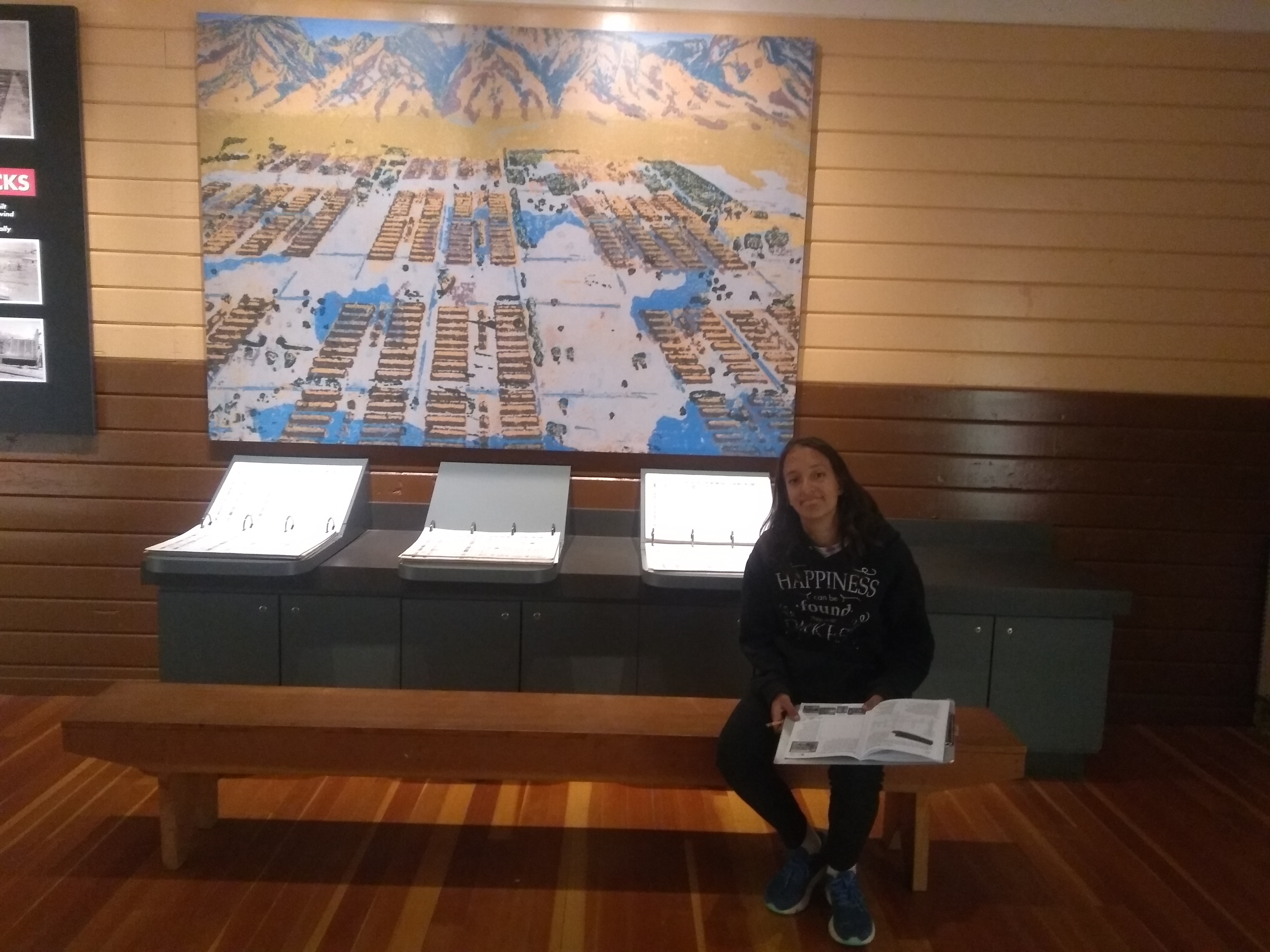 We reached the Inyo National forest ranger station right outside Lone Pine. On the other side of Lone Pine begin the great Sierra Nevada mountains. It is a sight to behold. I felt caught up in the beauty and mystery of these great mountains. There’s a peak called Mt. Whitney peak right by Lone Pine. We had camped in that area last time. But it was all snowed in so we didn’t have any such possibilities. We drove past Lone Pine and visited the Manzanar museum.