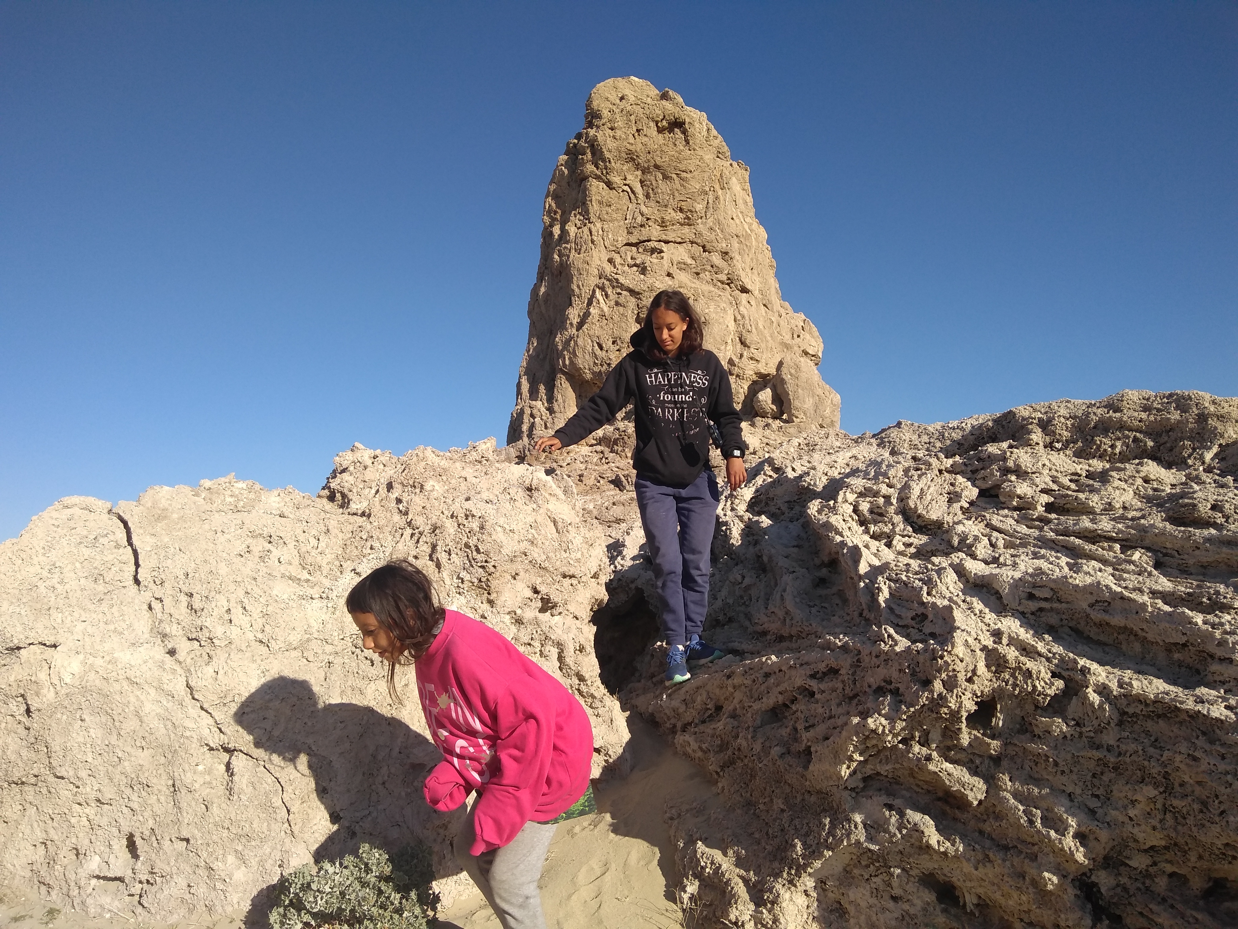 After Manzanar, we had had enough of being in the cold. We drove to Ridgecrest, CA. However, it was also super windy and unpleasant there. So we continued on to Trona Pinnacles. Trona Pinnacles has rock formations that look straight out of Star Wars or other science fiction movies! Trona pinnacles, also known as tufa pinnacles, formed underwater 10,000 to 100,000 years ago. This is the Searles lakebed. The pinnacles are formed of Calcium carbonate and some algae. The Searles lake was a part of a series of “Inland seas” made from the runoffs from the Sierra Nevada. The Trona pinnacles are very remote, especially if you visit during the week.