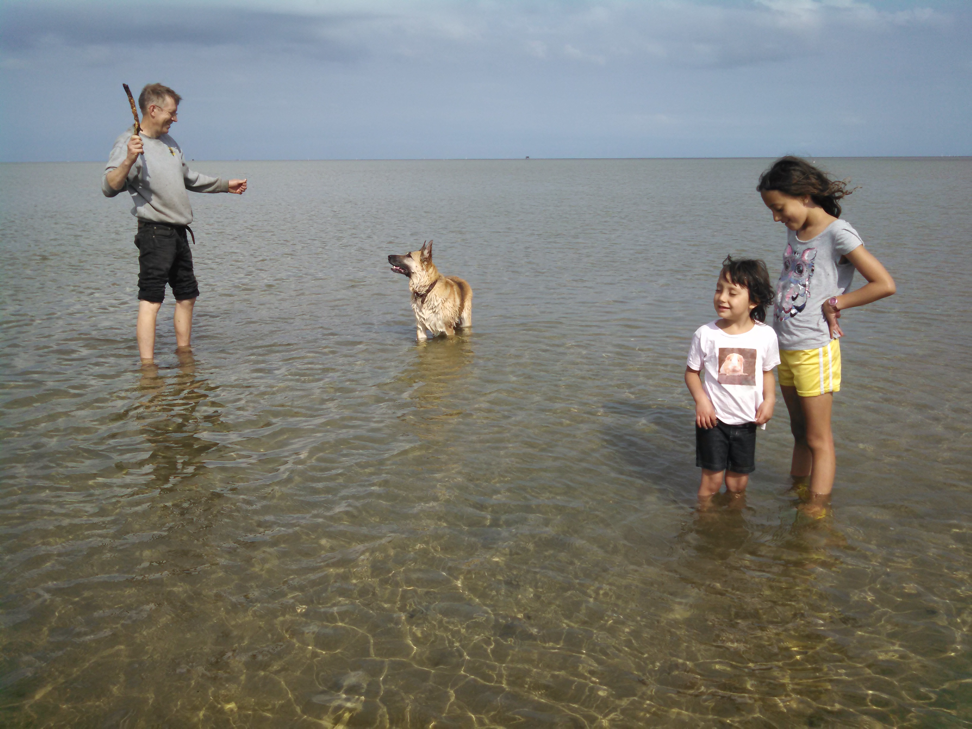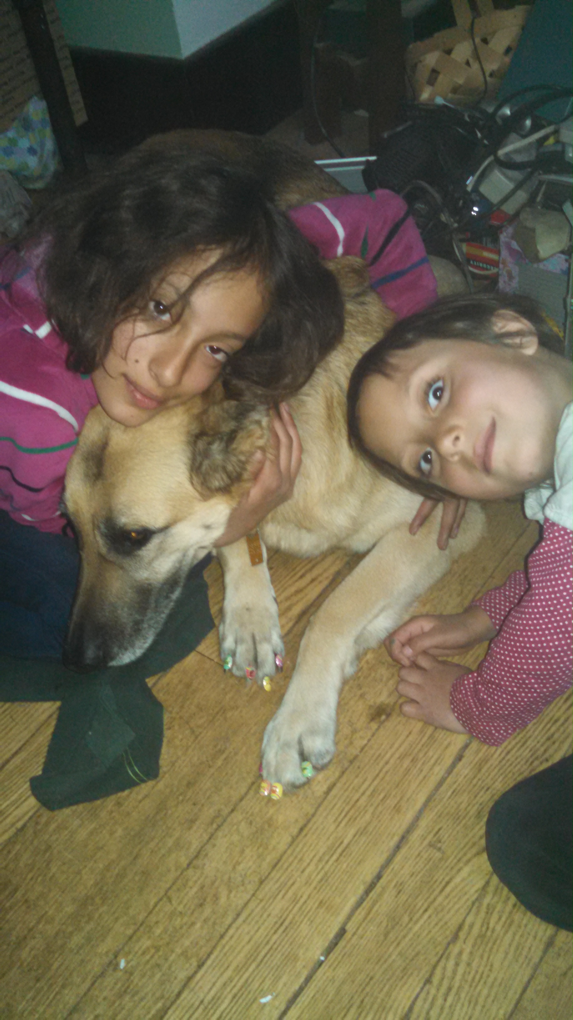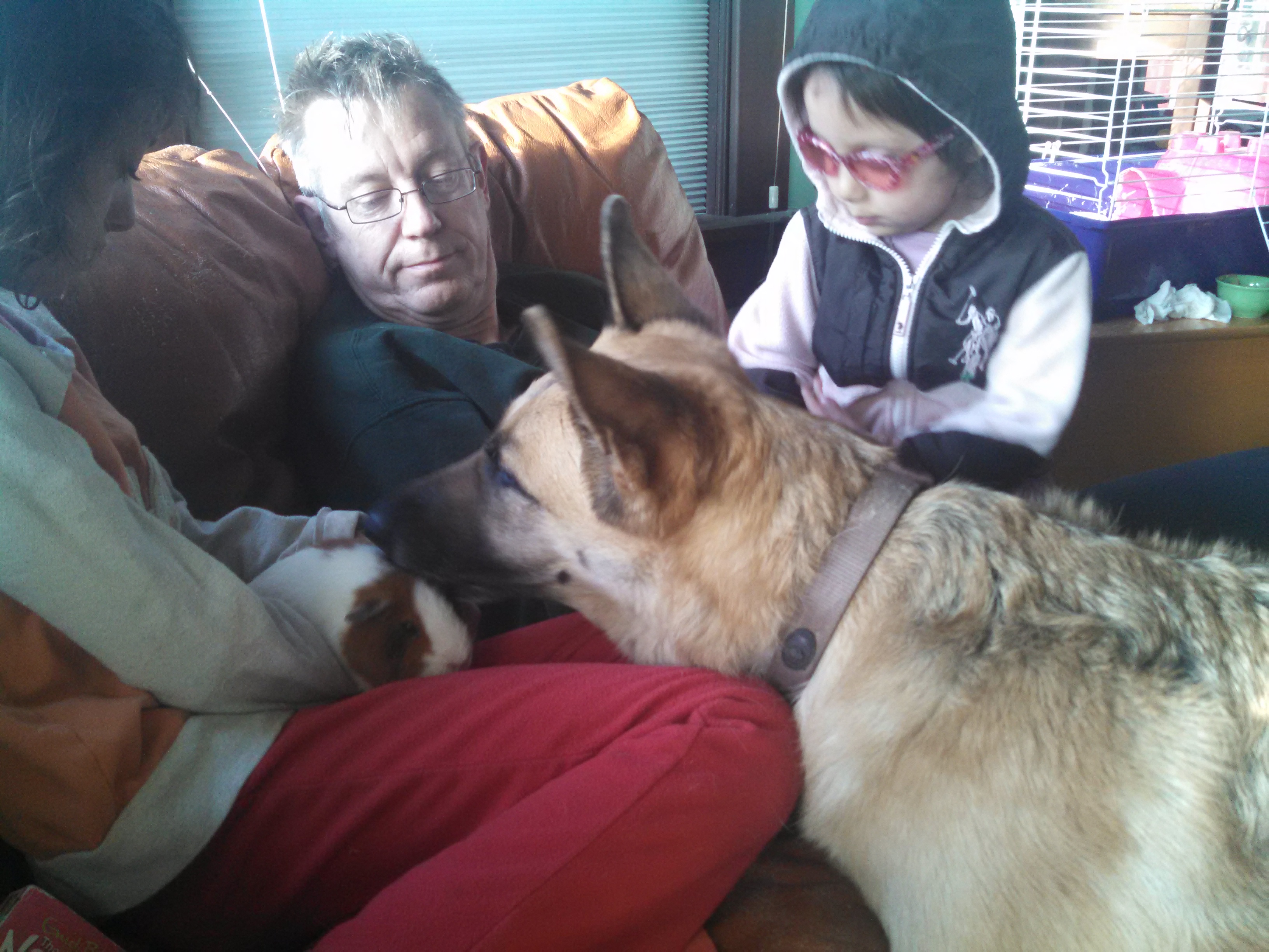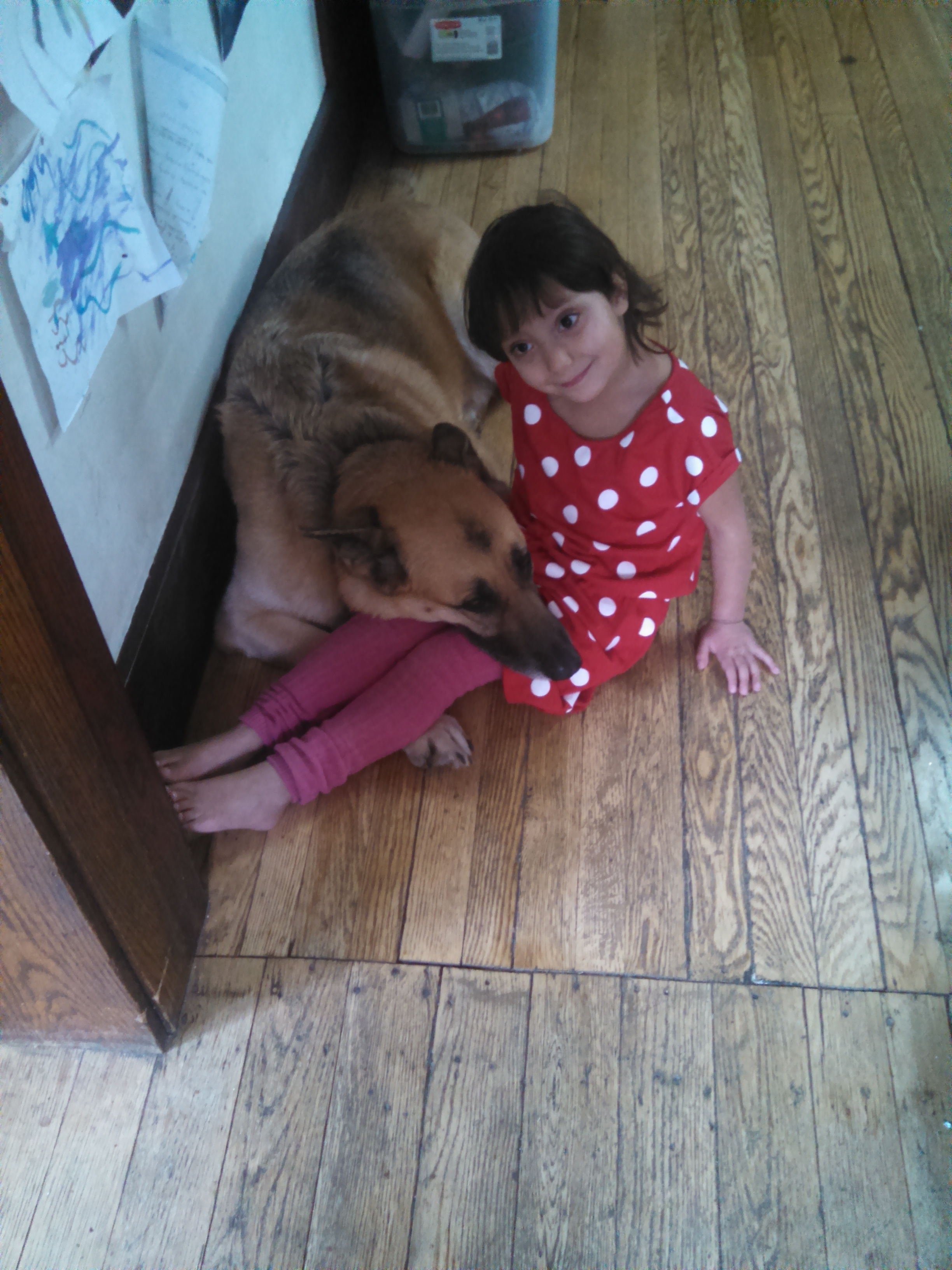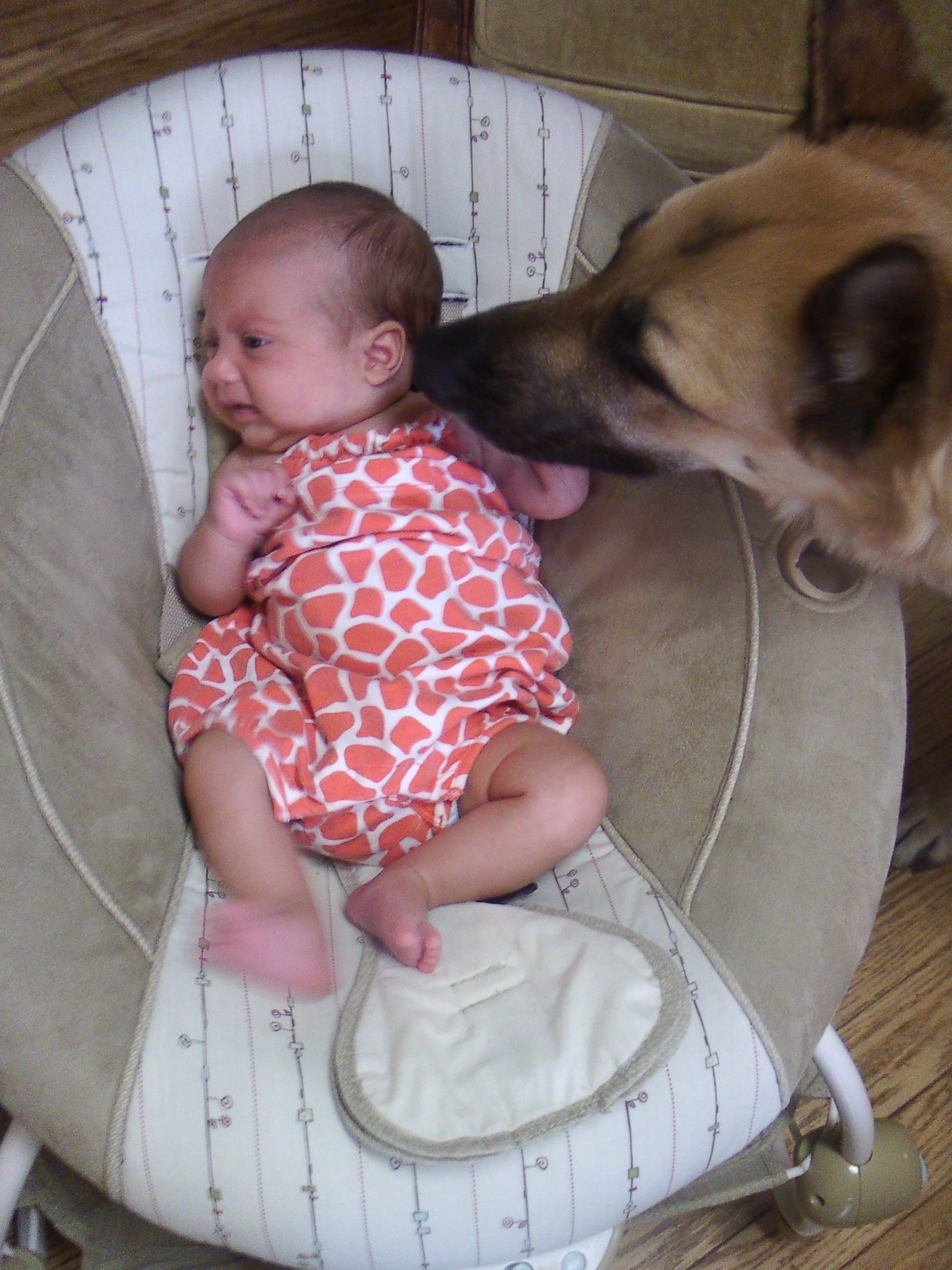 Anyway, life went blissful and peaceful with walks, road trips, visitors from India and The Netherlands and friends who would come by and pamper me. Then one fine day, something happened which changed everything! My mom was on the couch and I came bounding in as usual. But there was a basket, in which was a creature! I let out a low growl so that the cat would leave, but lo and behold! It wasn’t a cat, but a human baby! I couldn’t believe my eyes! I stared, growled but the baby was so cute, my eyes got watery and I kissed the baby’s bald head! It smelt lovely. I kept going back every 15 minutes to lick her. The baby joined our pack. Her name was Leena.