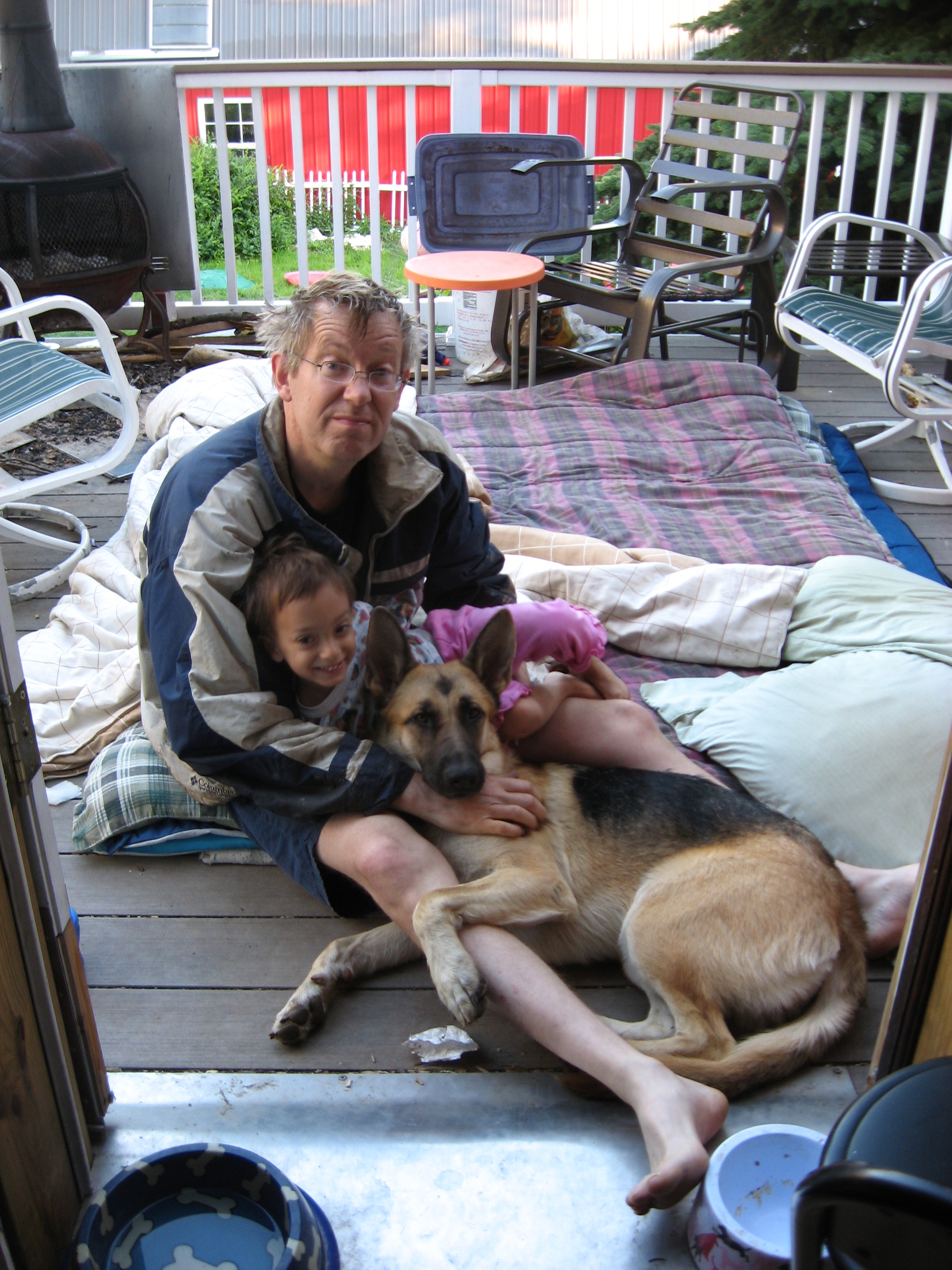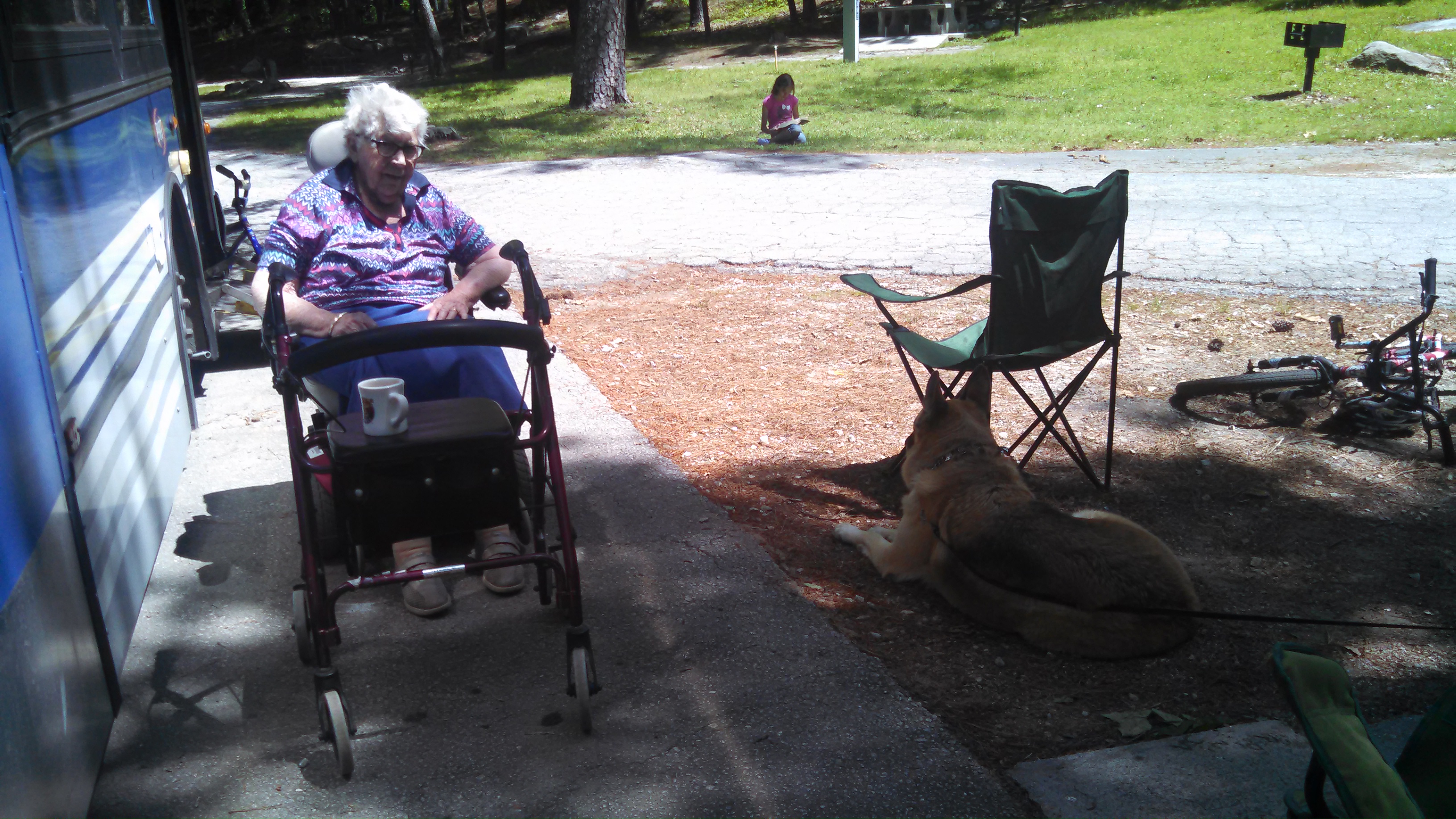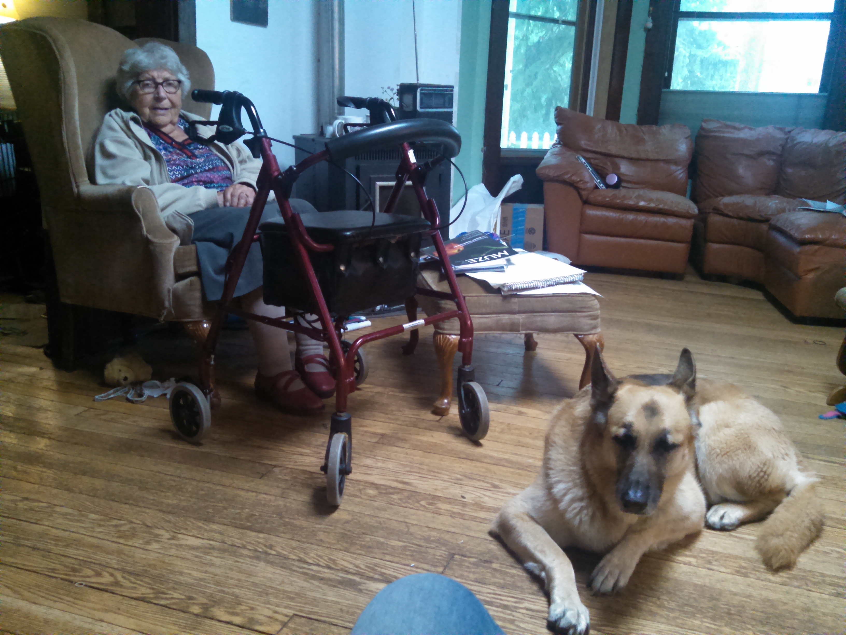 Oma was dad’s mom. She was really old. She came to live with us from The Netherlands. She moved slowly and used a walker. I really liked her slow movements. It made me feel calm. So I would always stay by her side during the day or night. Oma was cheerful and forgetful. We took some trips together and had a great time. Oma lived with us for a year and a half. Then she returned home. I was sad to have a smaller pack once again.