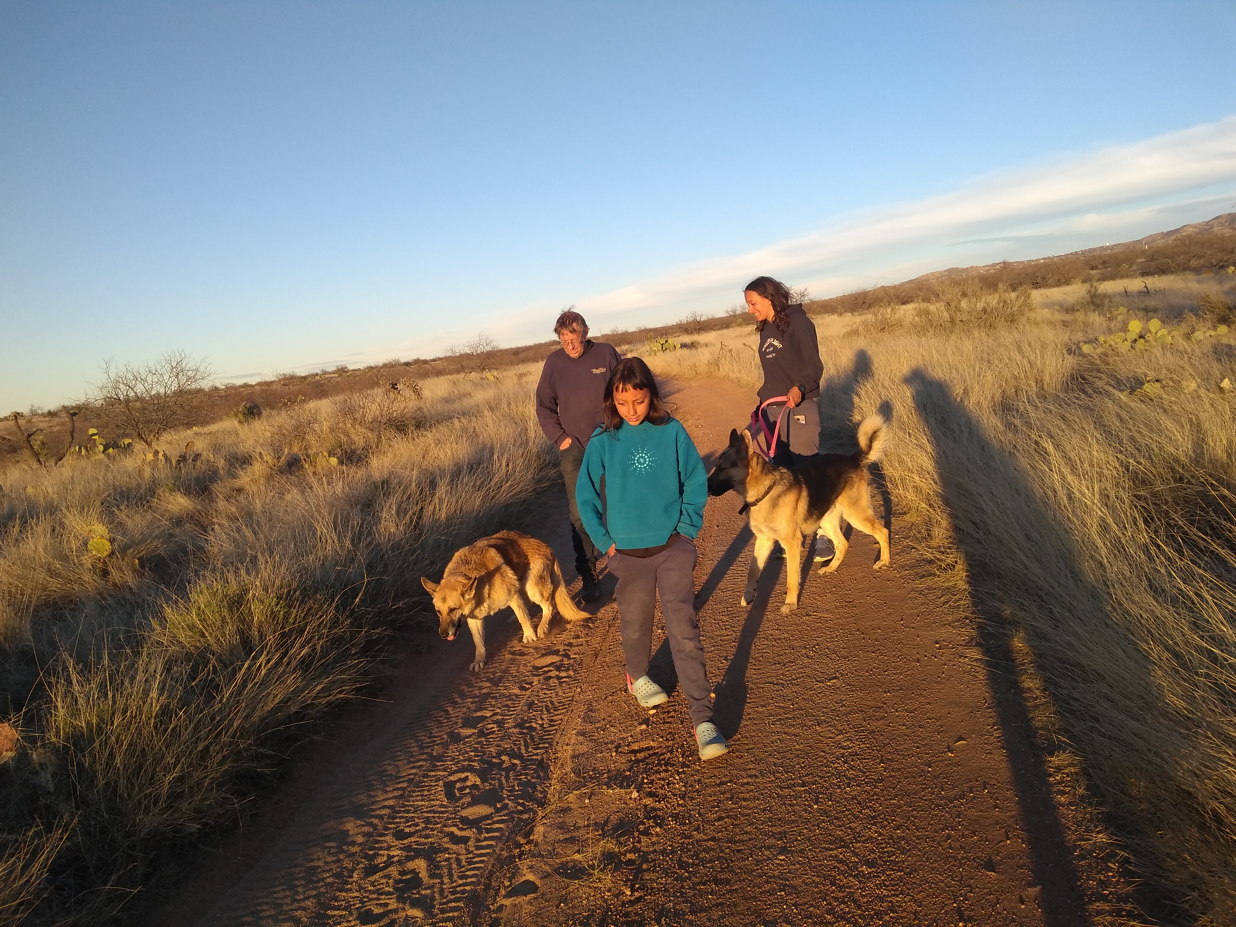 The next morning we woke up to a whole new problem. Leena was better, but Rosie’s back was totally falling over. She has Degenerative Myelopathy (DM) which is very common with older German Shepherds. She has had it for a while and we worried a bit about it during the beginning of the trip. However, that day we were truly upset. It looked like the end of Rosie. Once the back starts falling and the back paw turns over such that the dog lands on the front of the paw, rather than the paw pad, the progression of the illness would be that she would lose control over pee and poop. This would mean a big mess on her fur and skin, and an unsalvageable situation for us. We were all quite depressed and in tears that day.