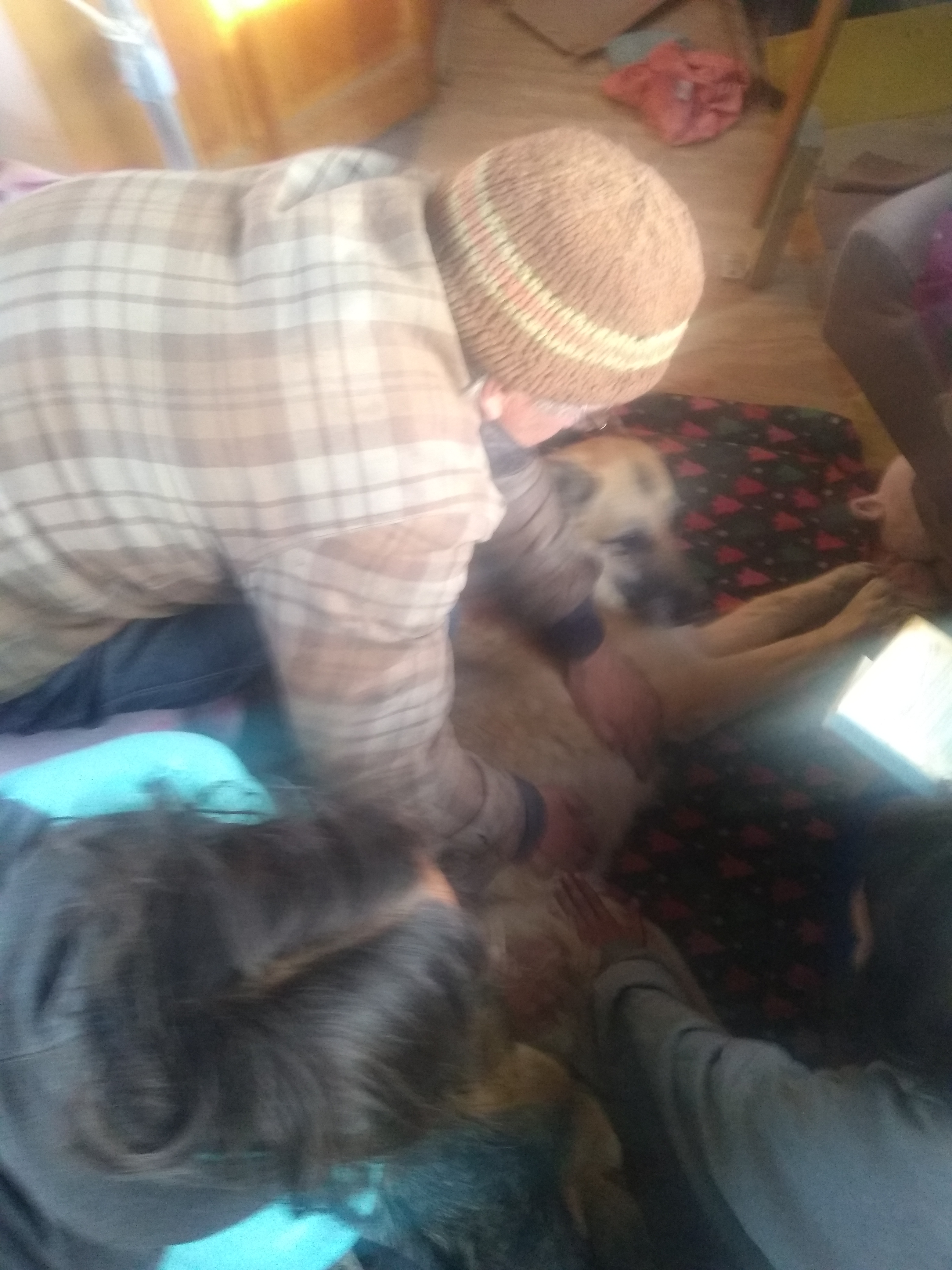 Rosie continued to struggle. Johan was the only one taking her out by propping her back up with a scarf. Her back became very heavy like dead weight because of the near paralysis, and it became out of my abilities to take her out. These were depressing days. I started dosing her with high dosage Vitamin C (ascorbic acid). I am still doing that. Back home, Johan has treated Rosie with laser, which helps in slowing demyelination and improves nerve function. We were frustrated that we didn’t have access to the laser. Johan has a friend, Lloyd, in Norman, Oklahoma. Johan bought a laser and had it shipped to Lloyd.