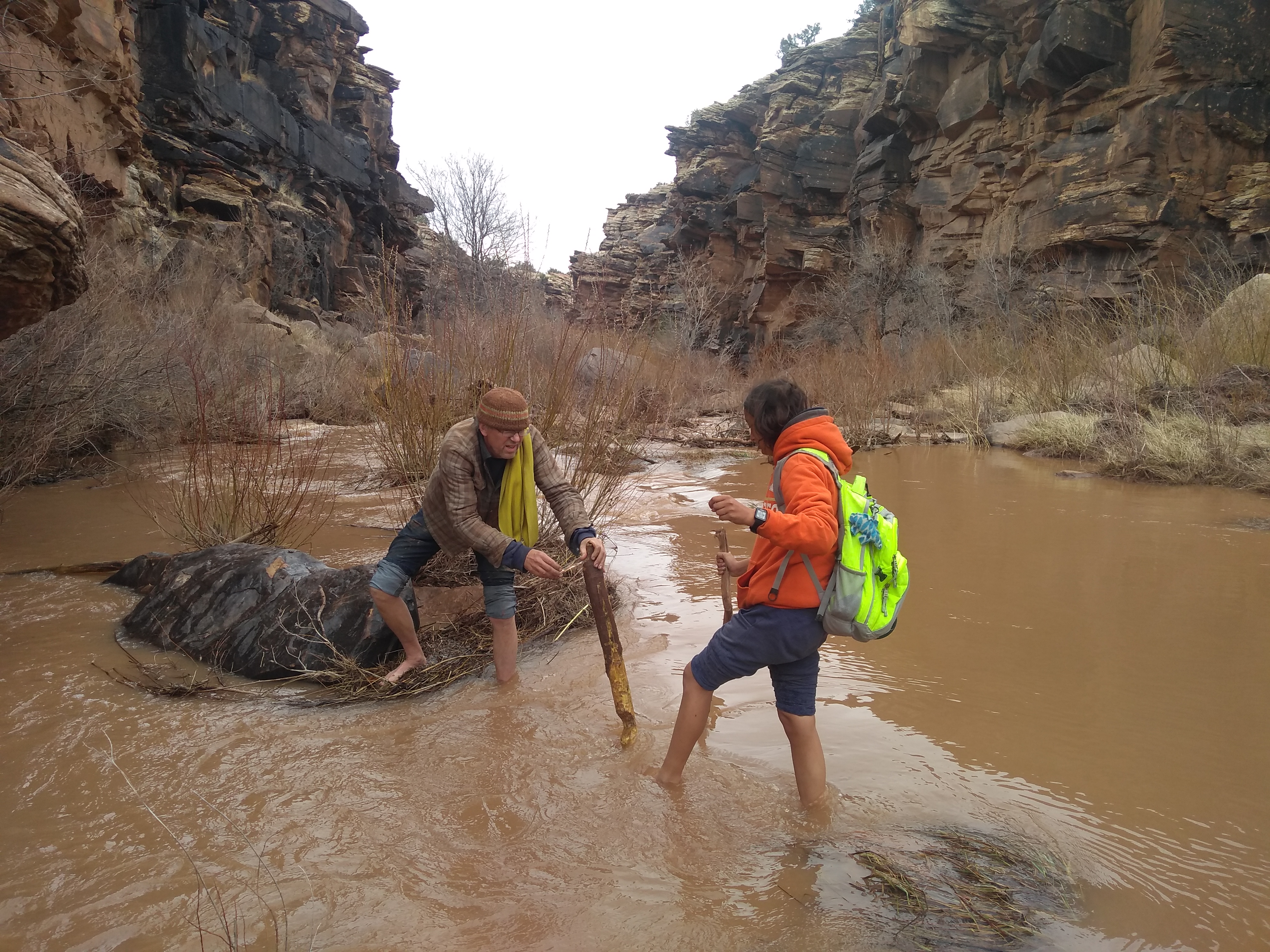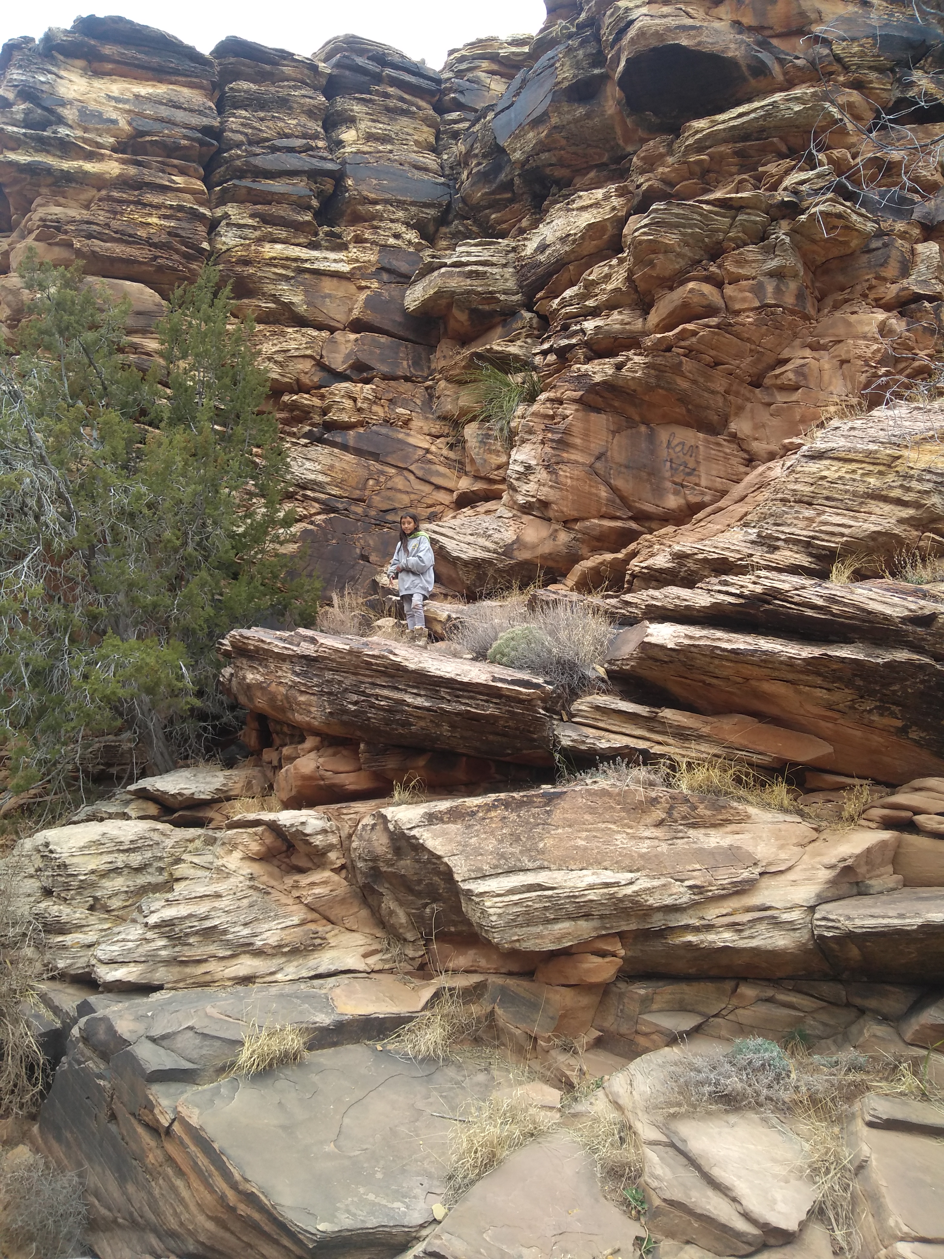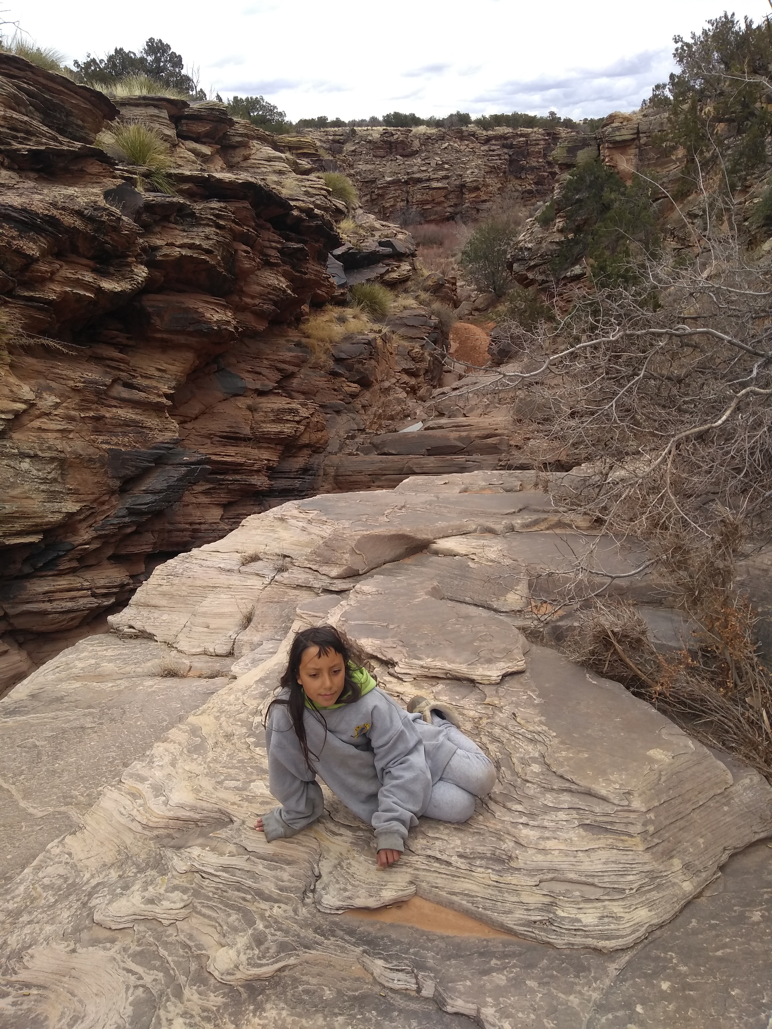 Moving to the positives, we were going to hike down the canyon. As were were about to leave, a couple stopped next to us. They lived in Snowflake, AZ. They asked us to join them on the hike. So we all minus Rosie went down the canyon. Ordinarily you can hike far into the canyon. However, the recent rains had caused the river to swell up. The woman (Azzy) braved the river and found a way over by walking through the high current, freezing waters. Johan, Tanya and Kylo went over as well. However, Leena (or I) weren’t keen. So we decided to explore the dry part of the canyon instead. Azzy was into bouldering and she taught Leena a bit. I suspect Leena has taken to it. Now we’ll have to find opportunities for her to try bouldering or similar climbing activities. I found it interesting that a day so depressive can take such a positive spin because of two ordinary strangers putting a bright spot into our day. So, yes, indeed, it is a beautiful life.
