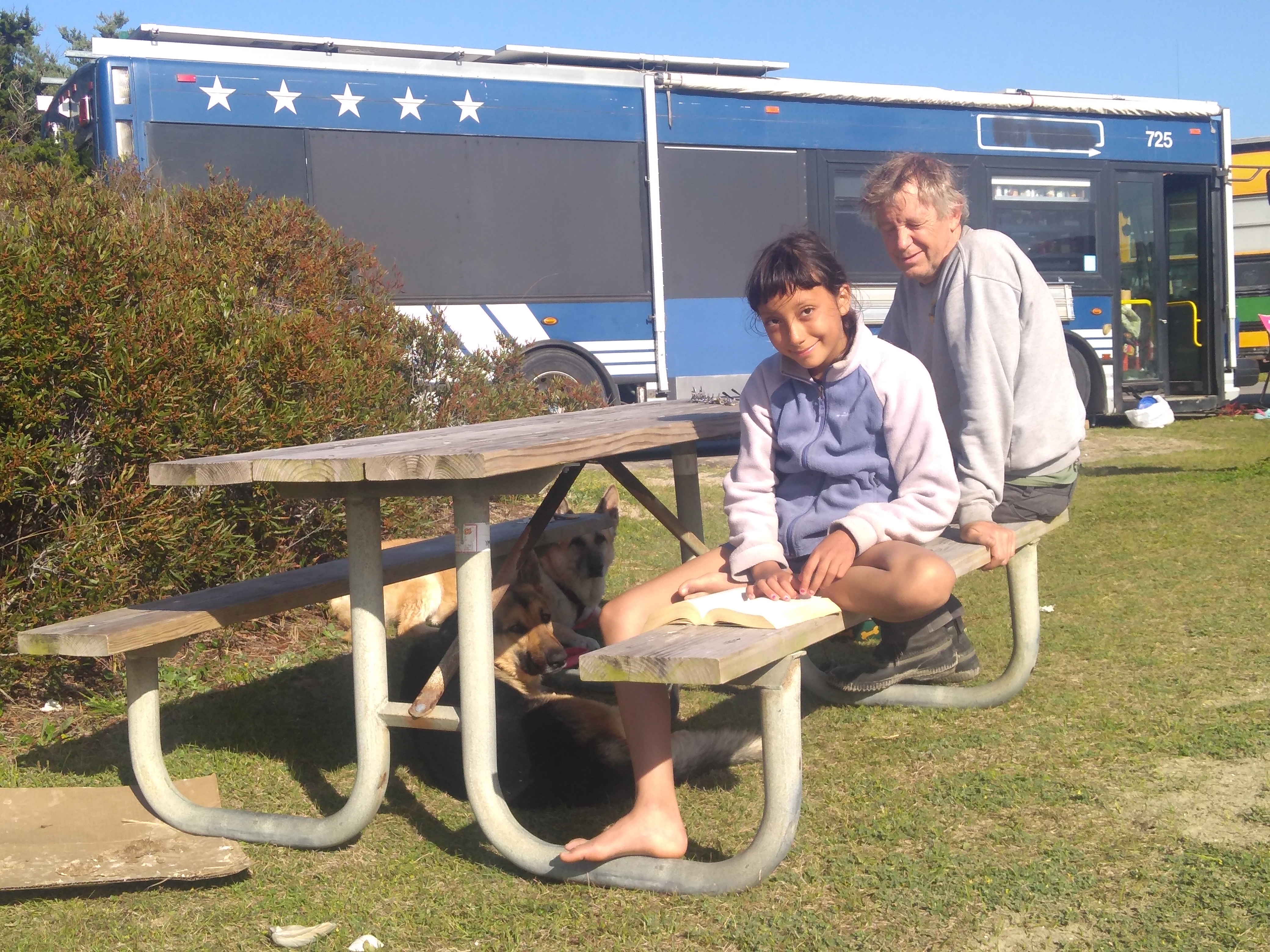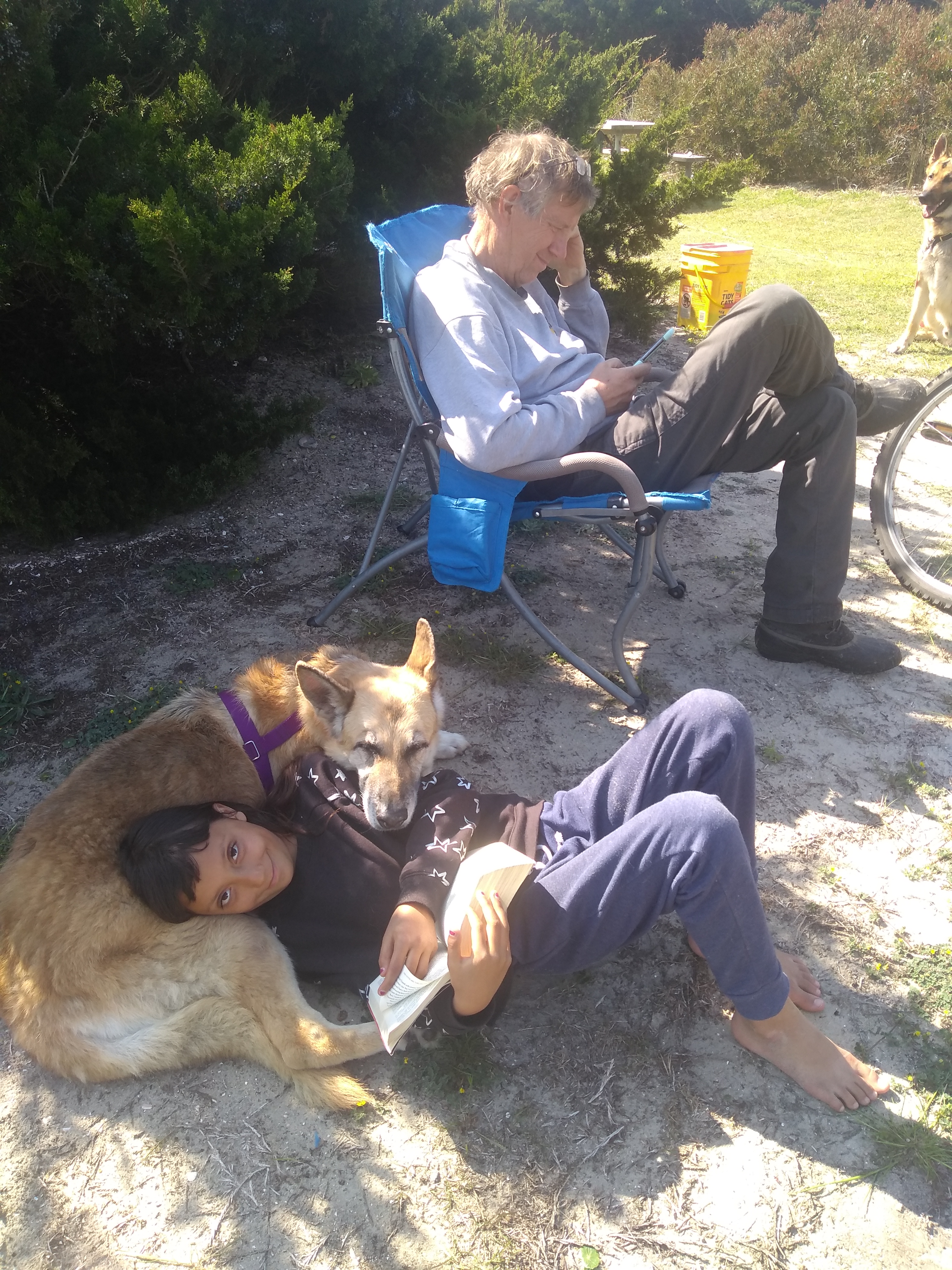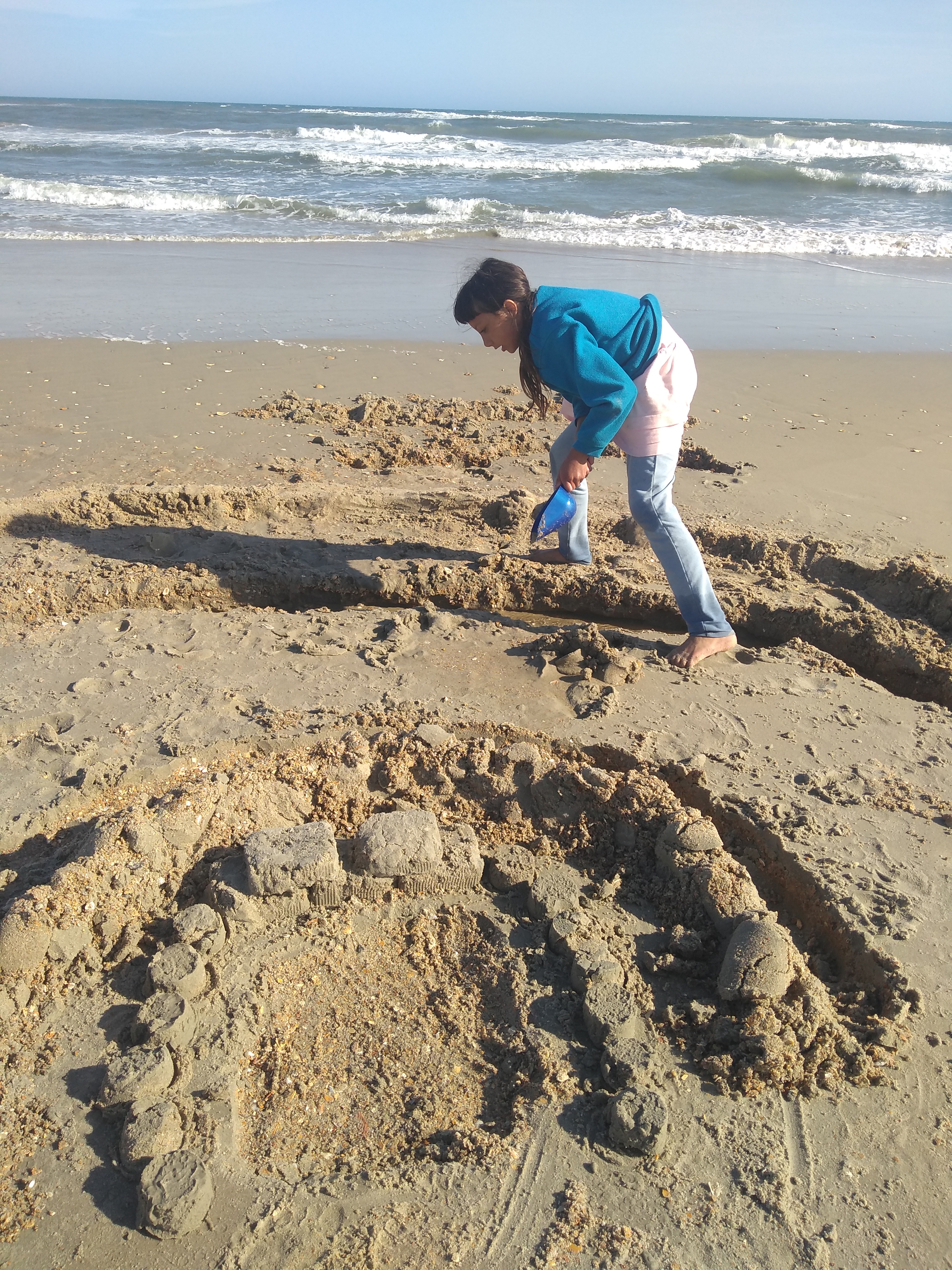 Our second day at Ocracoke island was sunny. We went out for breakfast and then the kids hit the beach. I decided to take Kylo for a long walk along the beach. Ocracoke is one of those rare places where you can find long stretches of secluded beaches, at least during off season. This made the walk with Kylo a real pleasure. We went a good way up and down the beach while the kids made sand castles. In the afternoon we did more schoolwork. We were on a fast track to finish all of Leena’s pending schoolwork.