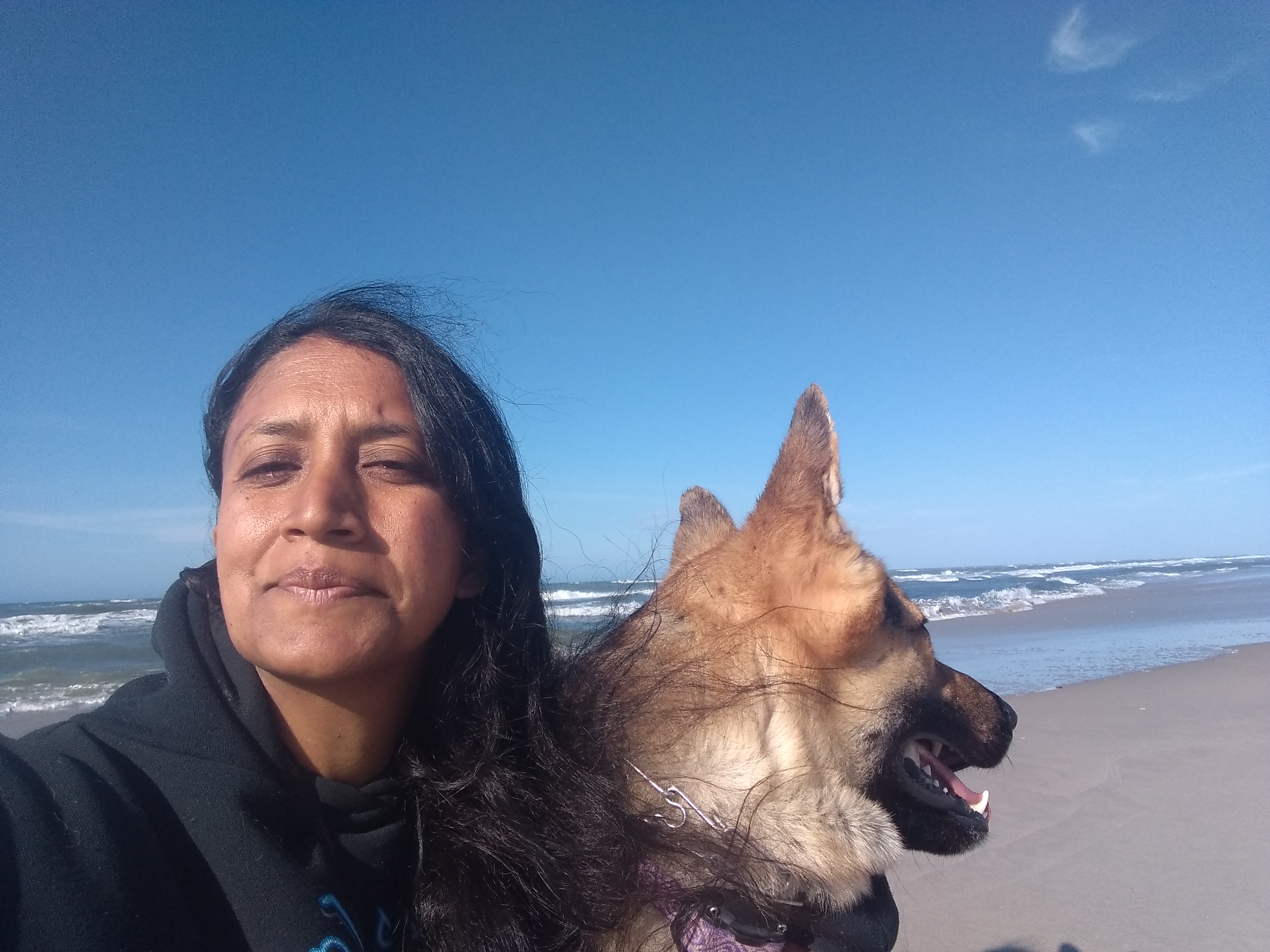 Kylo Ren the dog: (Pokes Rosie). Oh, looks like my wife has fallen asleep on the keyboard. Let me gently move her over so she doesn’t bite my head off. Ok, there, there. Blanket over her. Ok, my turn to blog! So mommy dragged me all over the beach. I wanted to go and destroy Tanya and Leena’s sand castle instead, but mom wouldn’t have it. If I turned around to look at them, mom would call me a lazy butt and make me jump in the waves. I jumped at her whenever she called me a lazy butt and play-bit at her jaw. It was good fun! We went for lots of walks along the beach. At one point I saw Tanya and Leena on a faraway dune, and I recognized them right away. Since there was no one on the beach, mom let me off leash and I shot off like an arrow toward Tanya. Leena hid behind the dune and then I shot off to find her. Wow, that was so much fun!