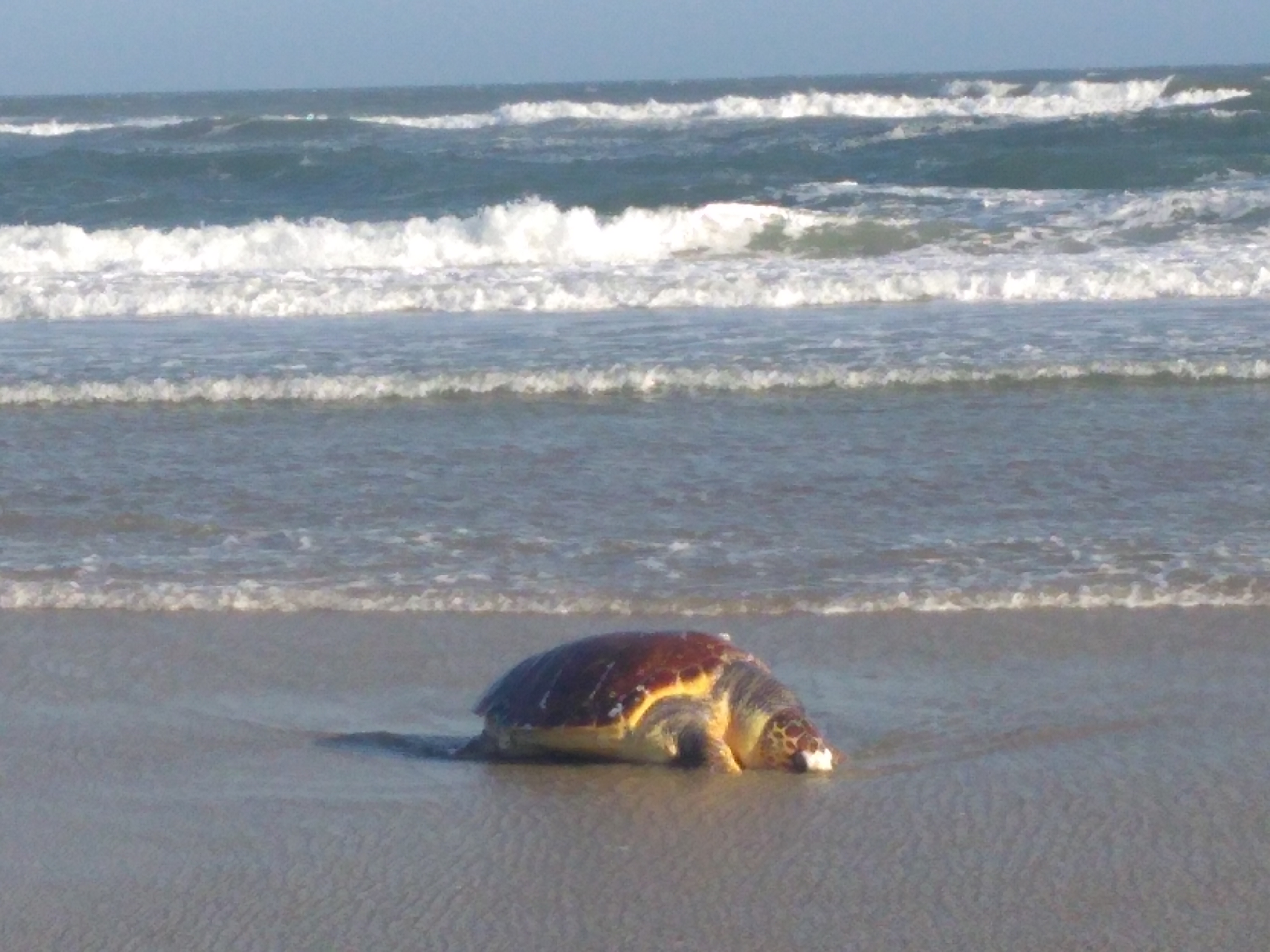 Once I picked them up, we drove back against the wind and then Johan dropped Leena and me off on the beach to ride our bikes, again with help from the wind. The bike ride was great fun. We came across a gigantic, but sadly dead, beached sea turtle. While sad, it still was a breathtaking sight. We went back to our campground and let the park rangers know about the turtle in case it was alive. They checked on it and informed us that it was indeed dead, with old age the probable reason.