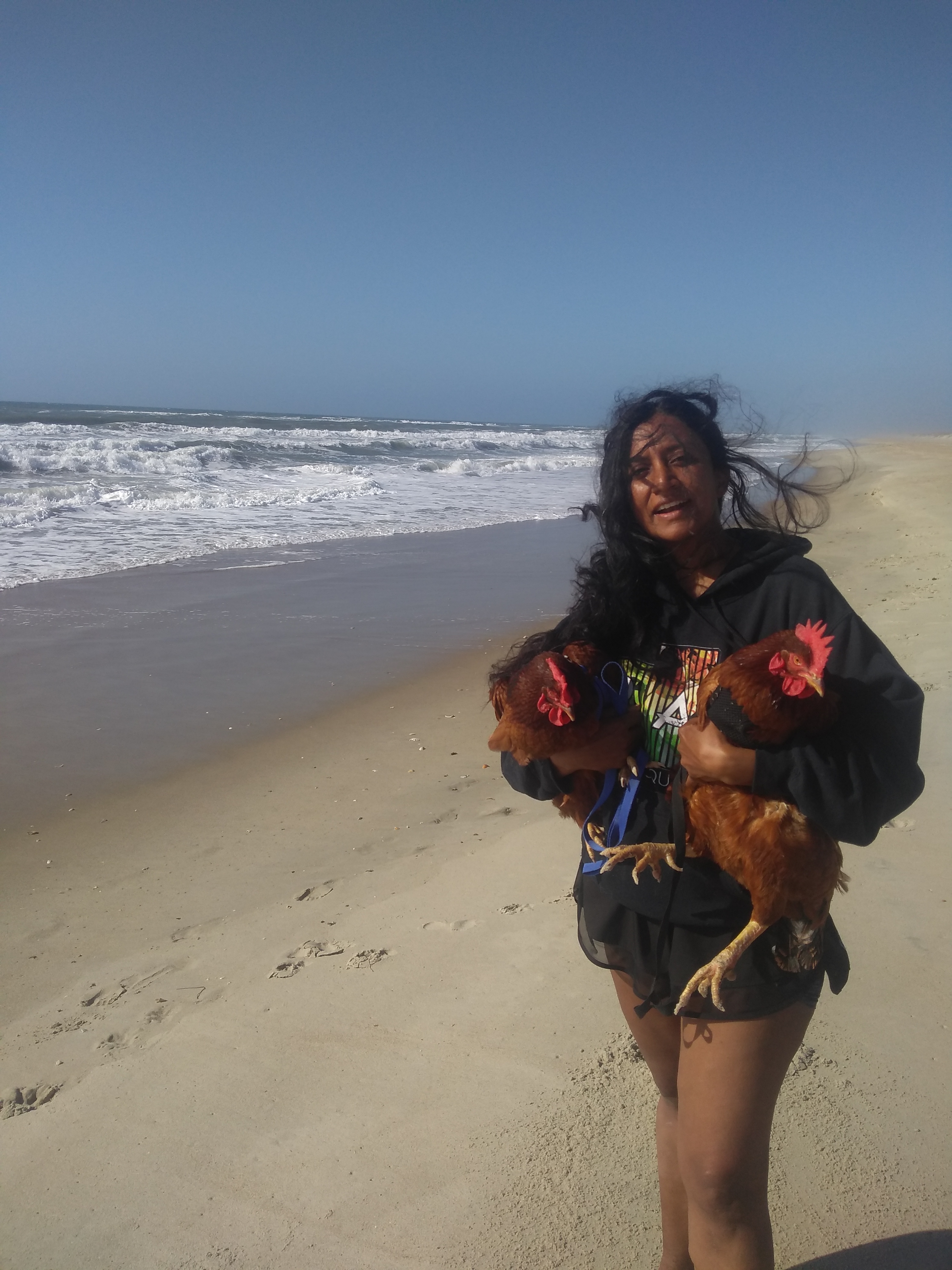 So yes, my friends. My human mother speaks the truth. We have wet our feet in the Atlantic ocean. It was as hateful as I had expected it to be. But, hey, we did it! This was the second time I ended up in water. The first was when Baby and I fell in the backyard pond. Back then we had had to use our wings as oars to swim out of the pond before our slow humans came to our rescue. The ocean was a whole different story. Our humans turned mean and actually took us to the waves and set us down with big beaming smiles on their faces. I mean, what did they expect? That we will start riding the waves on a surfboard or something? Obviously we just walked away from the water in a huff. The only positive thing that came out of the ocean visit is that I can gloat about it and be right at the very top of the pecking order of the world’s entire chicken population. I mean, how many chickens can say that they have been to the beach? Not many, if any at all. So yes, my friends, here’s my poem to conclude this memorable road trip.