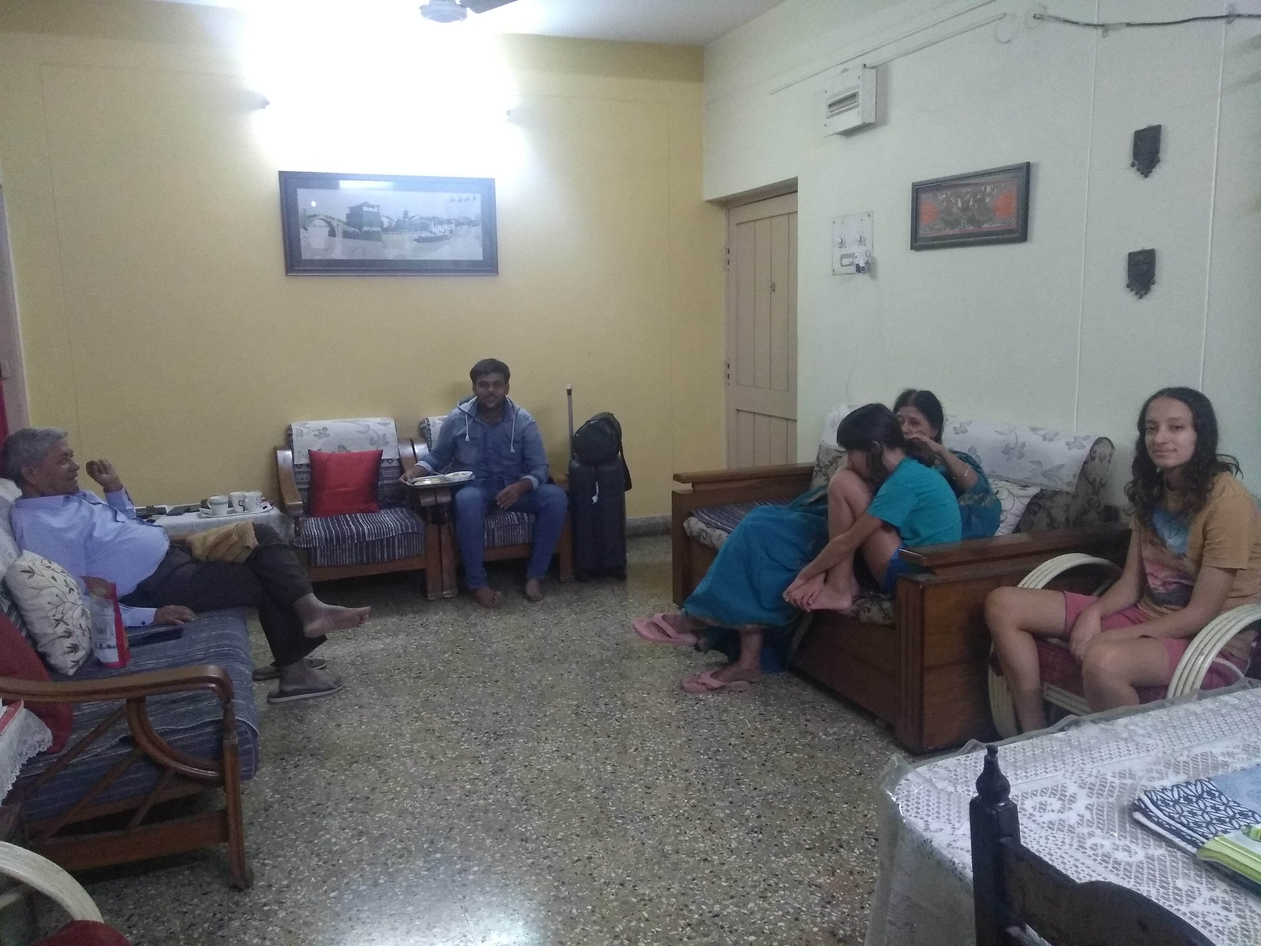 It was a joyful reunion with my parents and sister who had come to the airport. We took a cab back and enjoyed the warmth and fun atmosphere of Hyderabad. Once home, Ramkumar, Priyanka and Bunnu came over to say hello and we hung out for a bit. After a while, sis and family left and we turned in for the night to sleep a disturbed, jetlagged sleep.