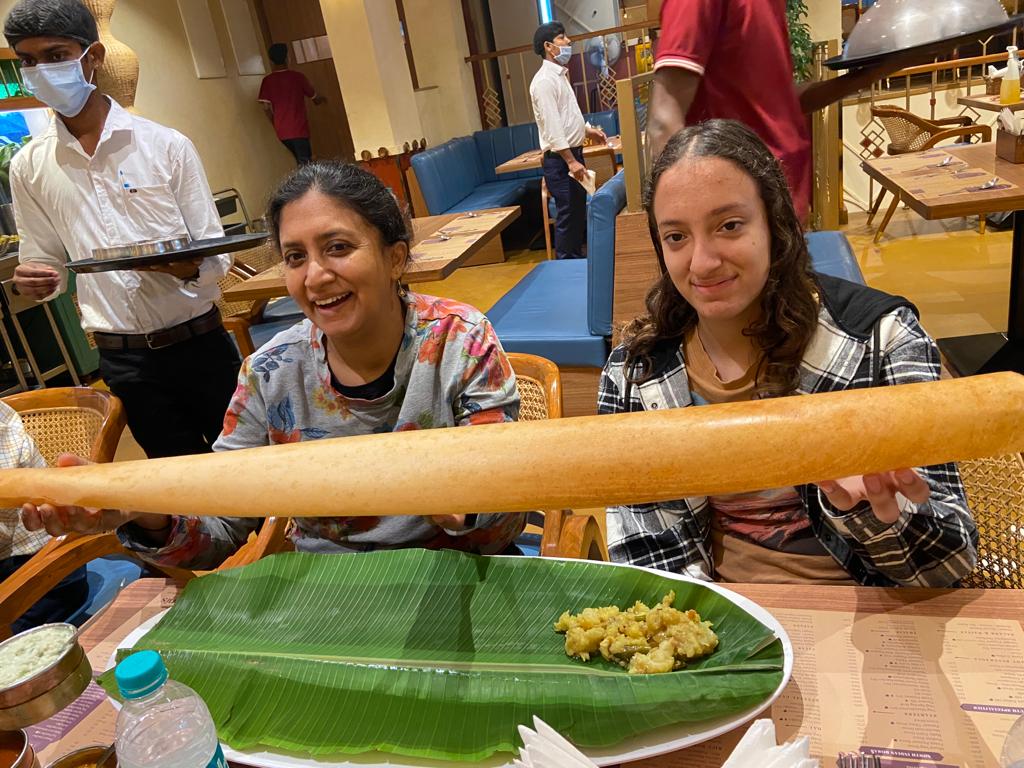The next day we visited Kamat, an old favorite restaurant of mine. It was as it had always been. We enjoyed a big, typical meal (thaali) there! The following day we hung out with sis and family at her apartment. We all met up for lunch, and then we checked out a bookstore called crossword. Then we relaxed at home and watched some standup comedy.