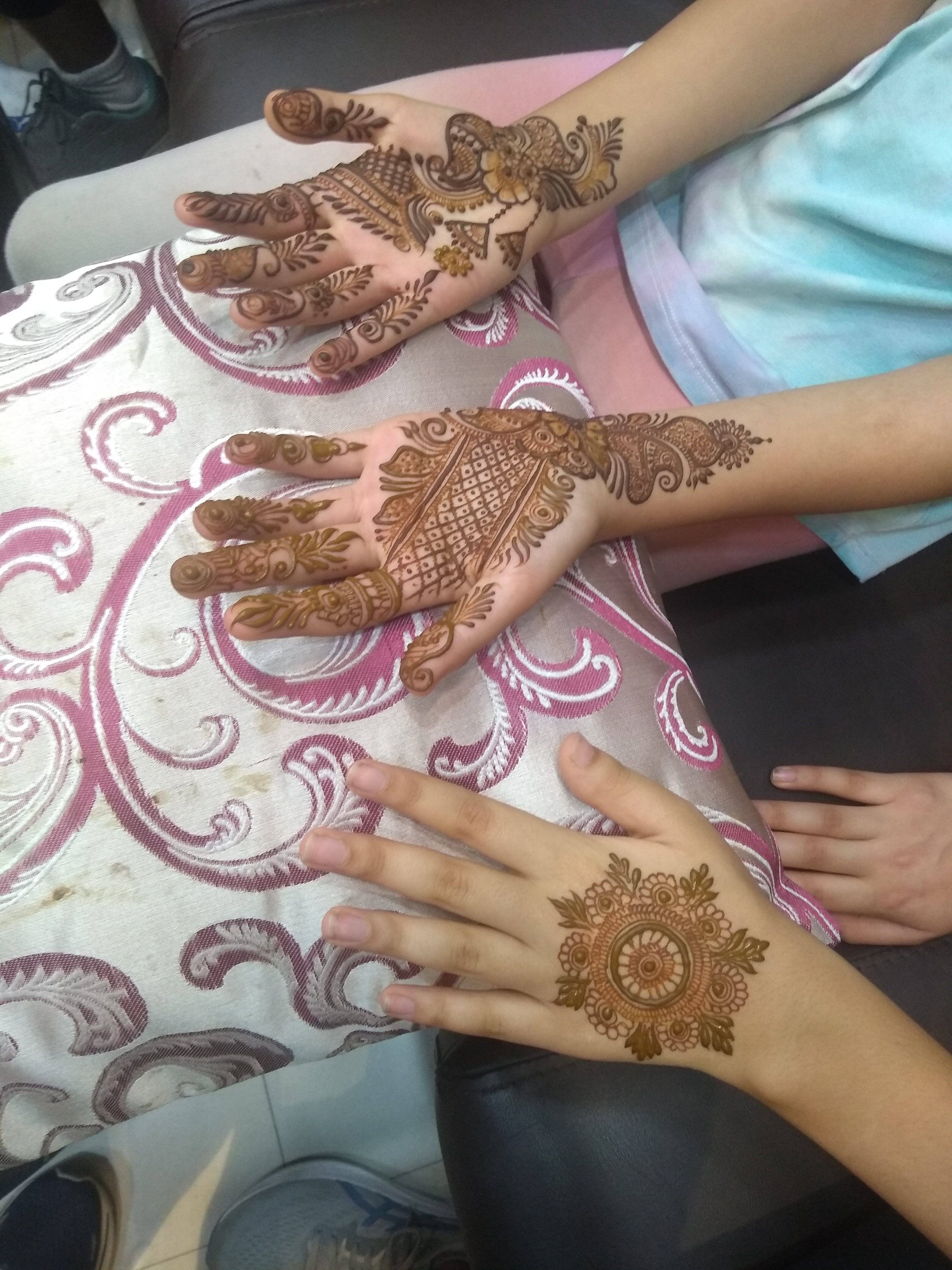 After our great encounter with White Paws, later that day Bunnu drove us to a nearby mall where the kids tried out an indoor gym. This was probably a big highlight for them. We also had lunch and got henna designs done on our hands.