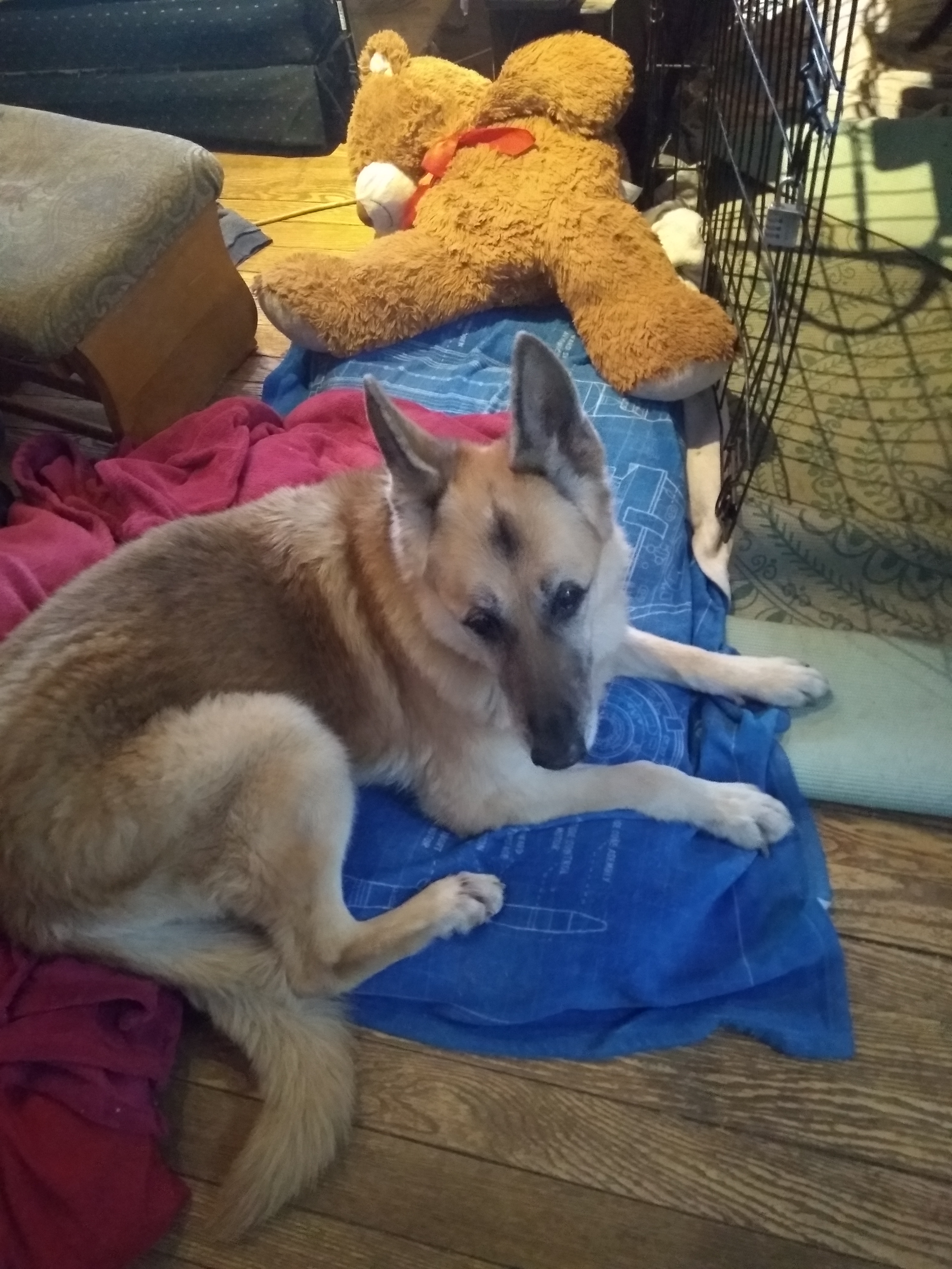 Christmas with us, behind the crate.”