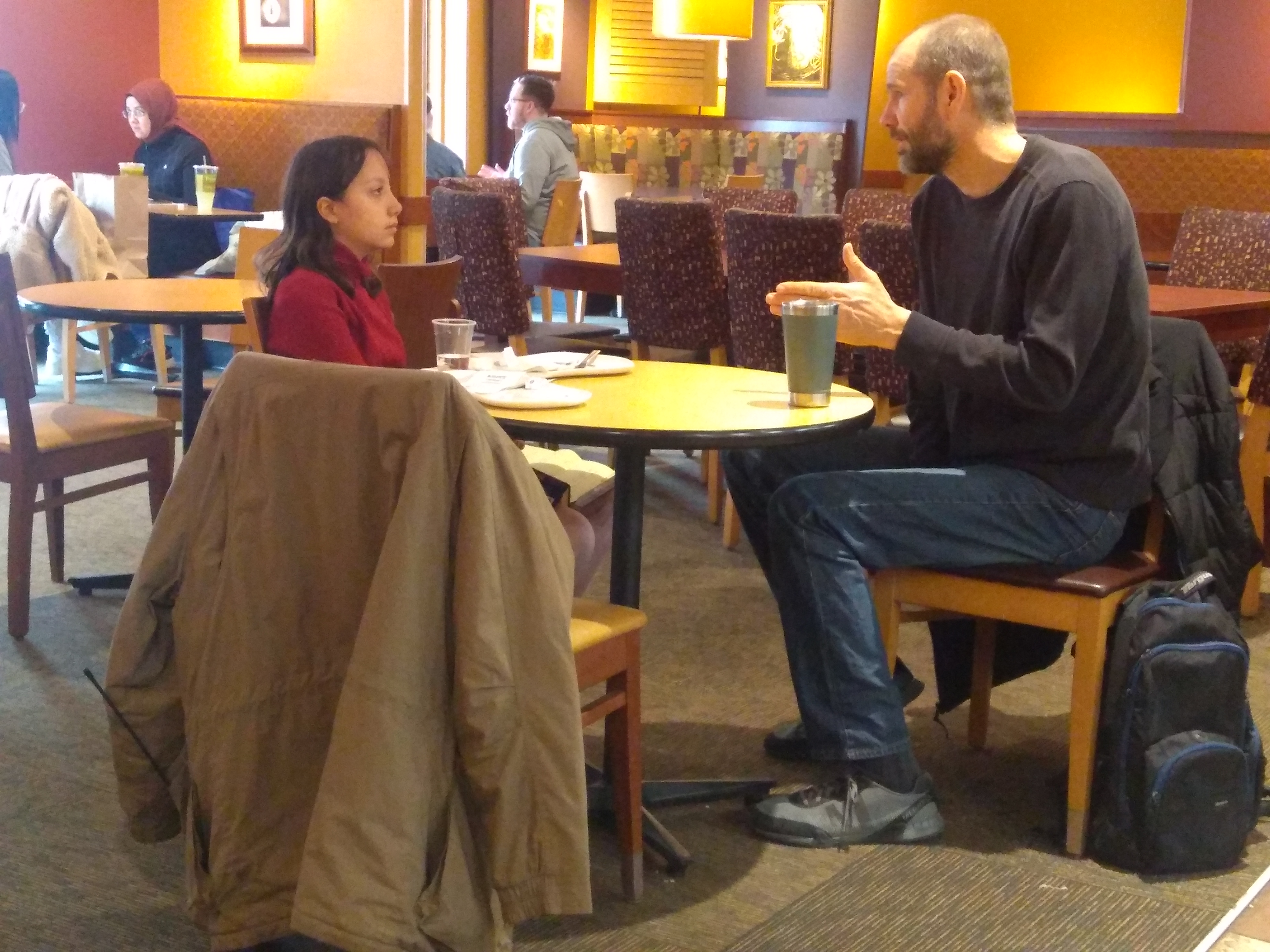 Despite all her efforts, I am still the top chicken at the ripe old age of 9. I established this fact recently when my human dad was eating his lunch in the yard. Without hesitation I jumped on his lap to try to get to one of his croissants. He pushed me down, but mom told him off for disrespecting the senior chicken (ahem). After that, I had a field day sitting on his lap and getting crumbs from him.