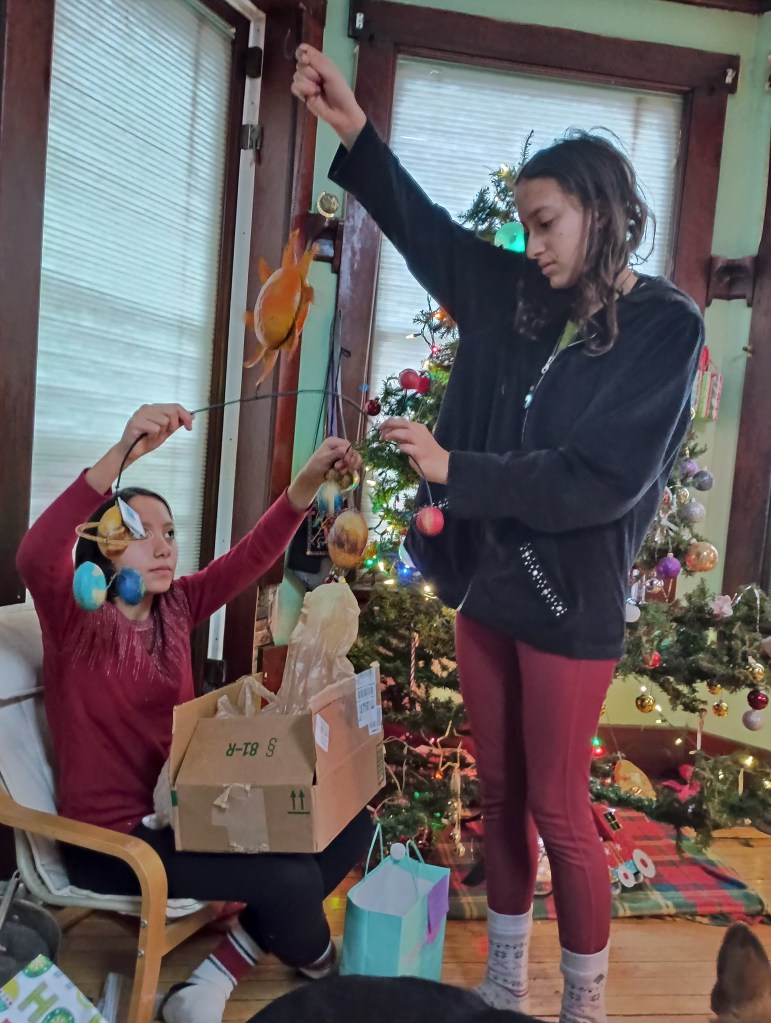Christmas with us, behind the crate.”