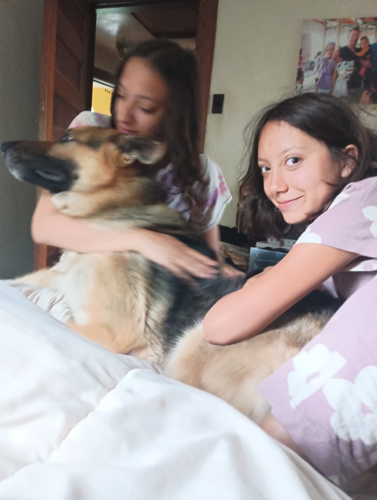 The girls say good night, we give a hug