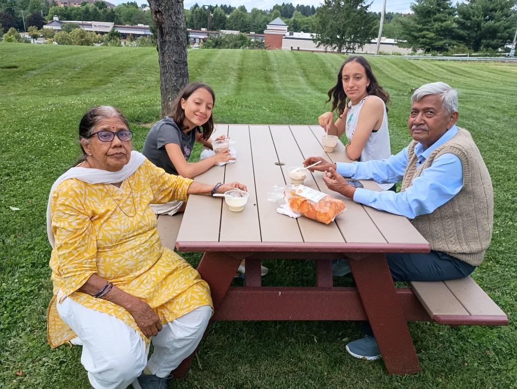 Together we party, yummy food we savor.”