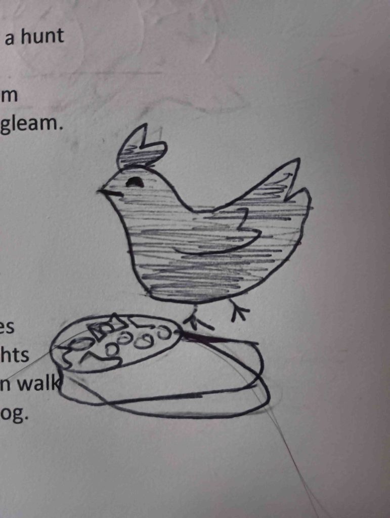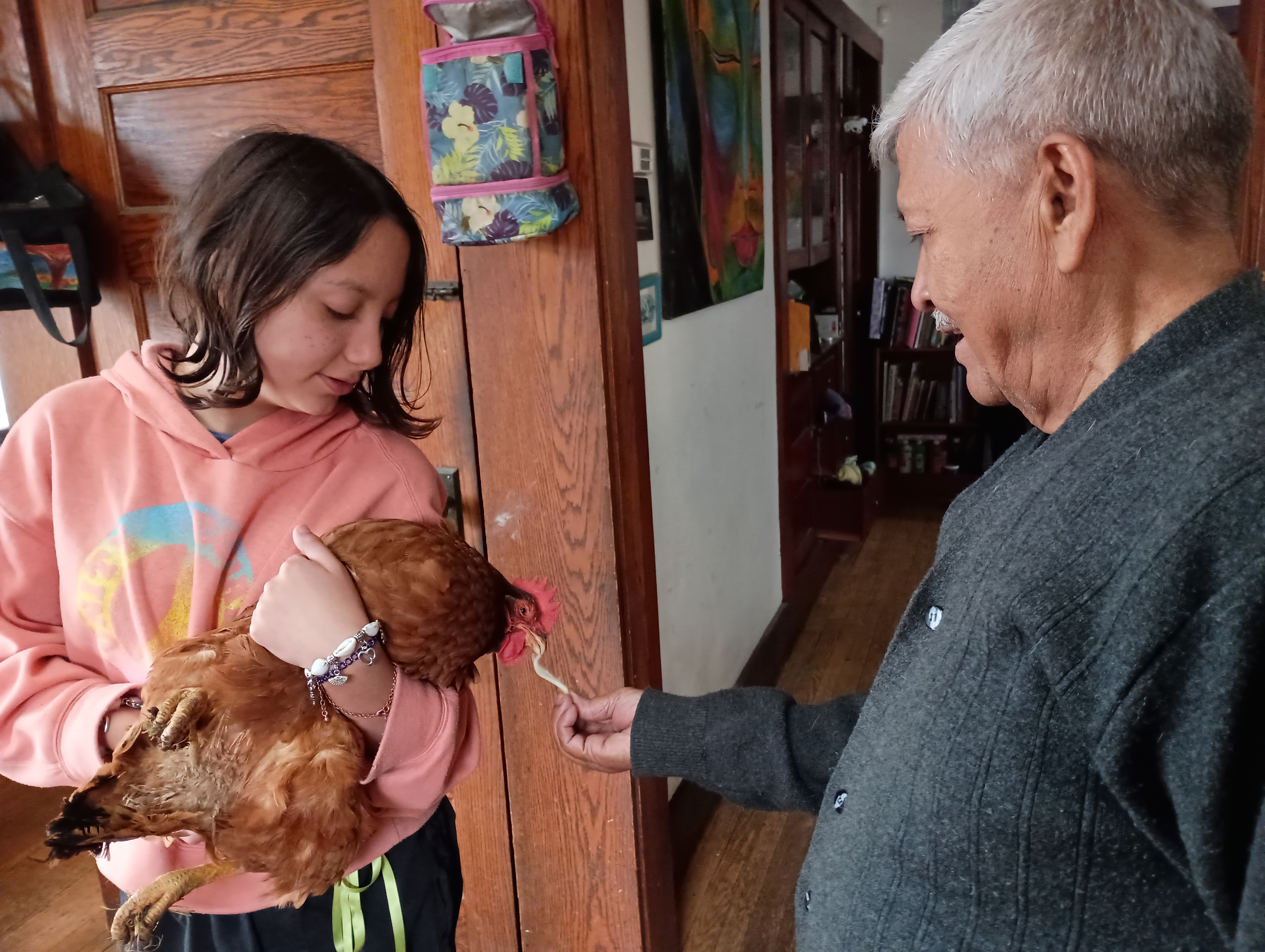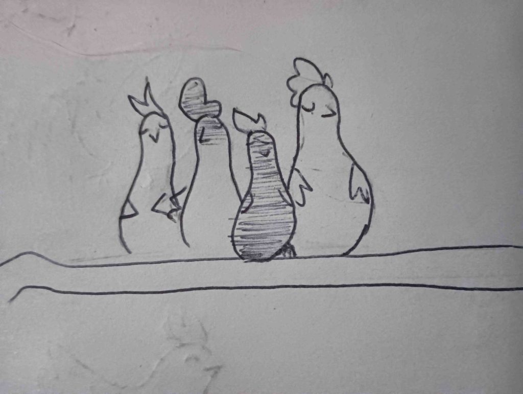 We chickens stare, together we thank