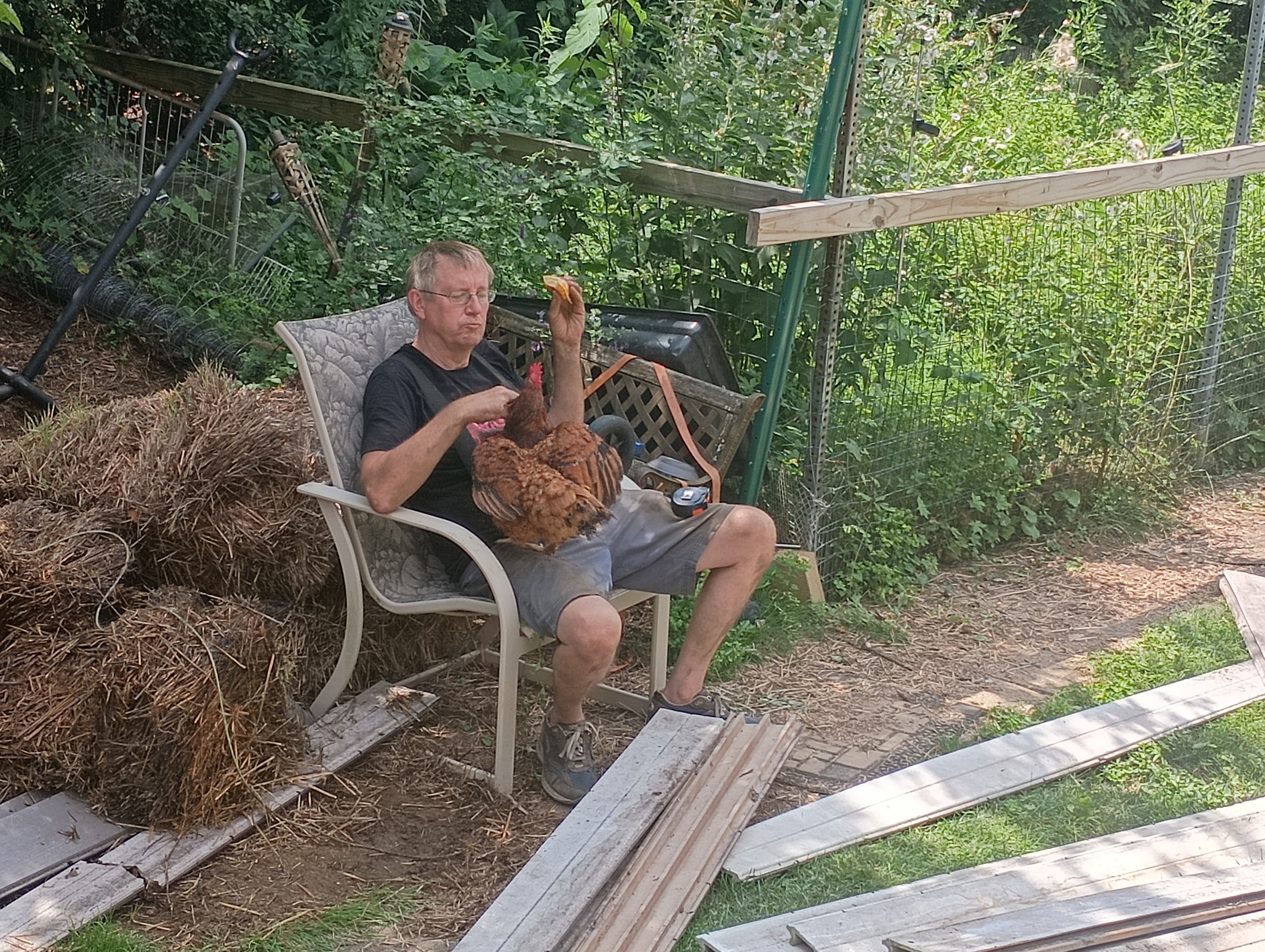 Moving the chickens, the cookie she picks