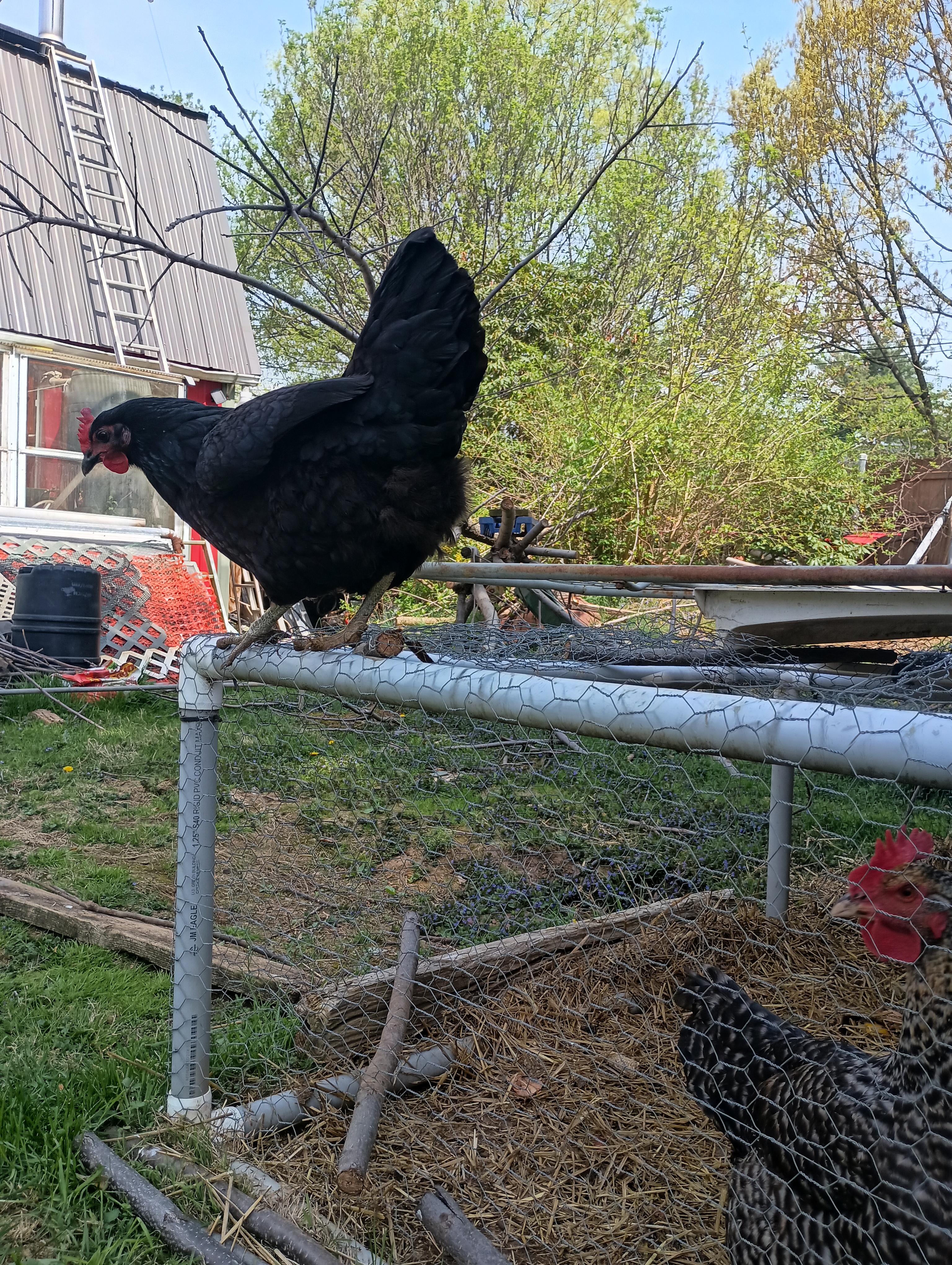 They decorate their coop with stuff from the yard
